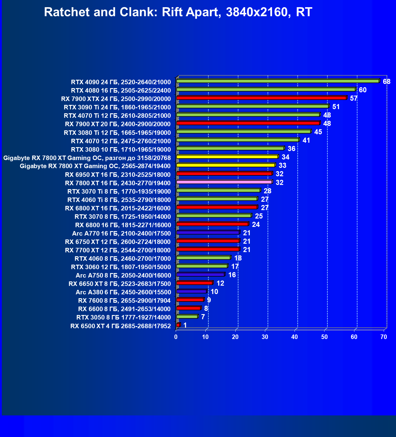 | 09 | Gigabyte RX 7800 XT, разгон до 3158/20768 | 787 | 123 | 64 000 |