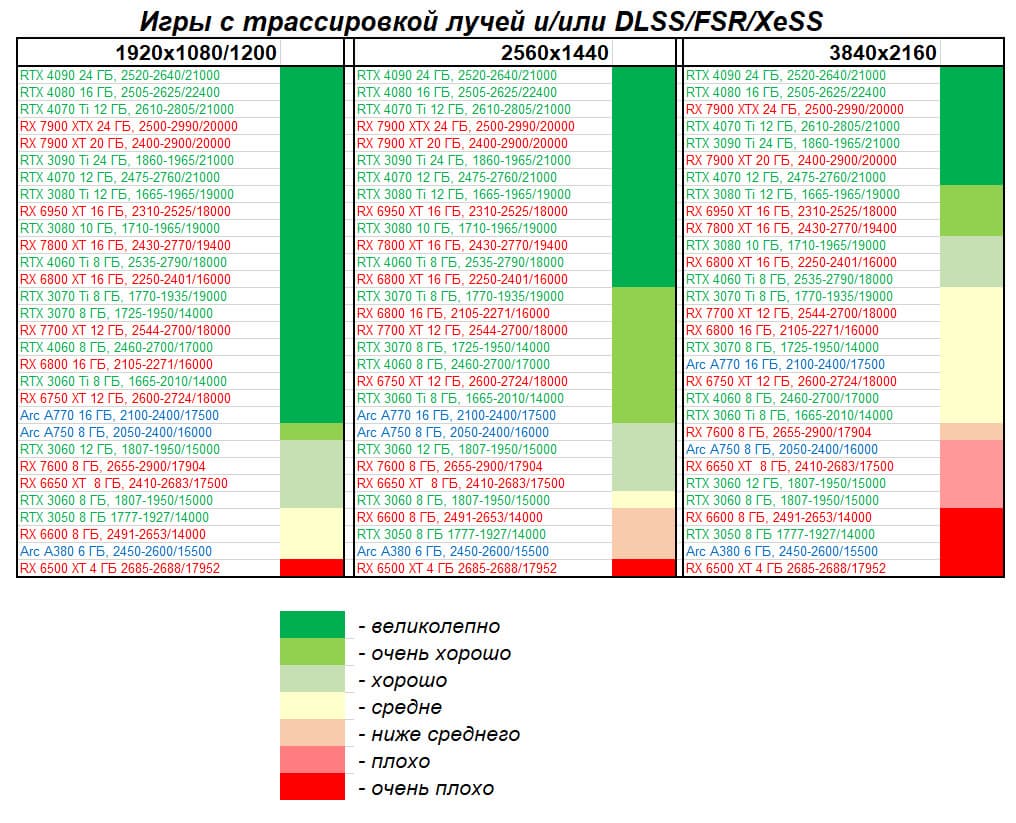 - Вариант рейтинга iXBT.com с включением RT/DLSS/FSR/XeSS