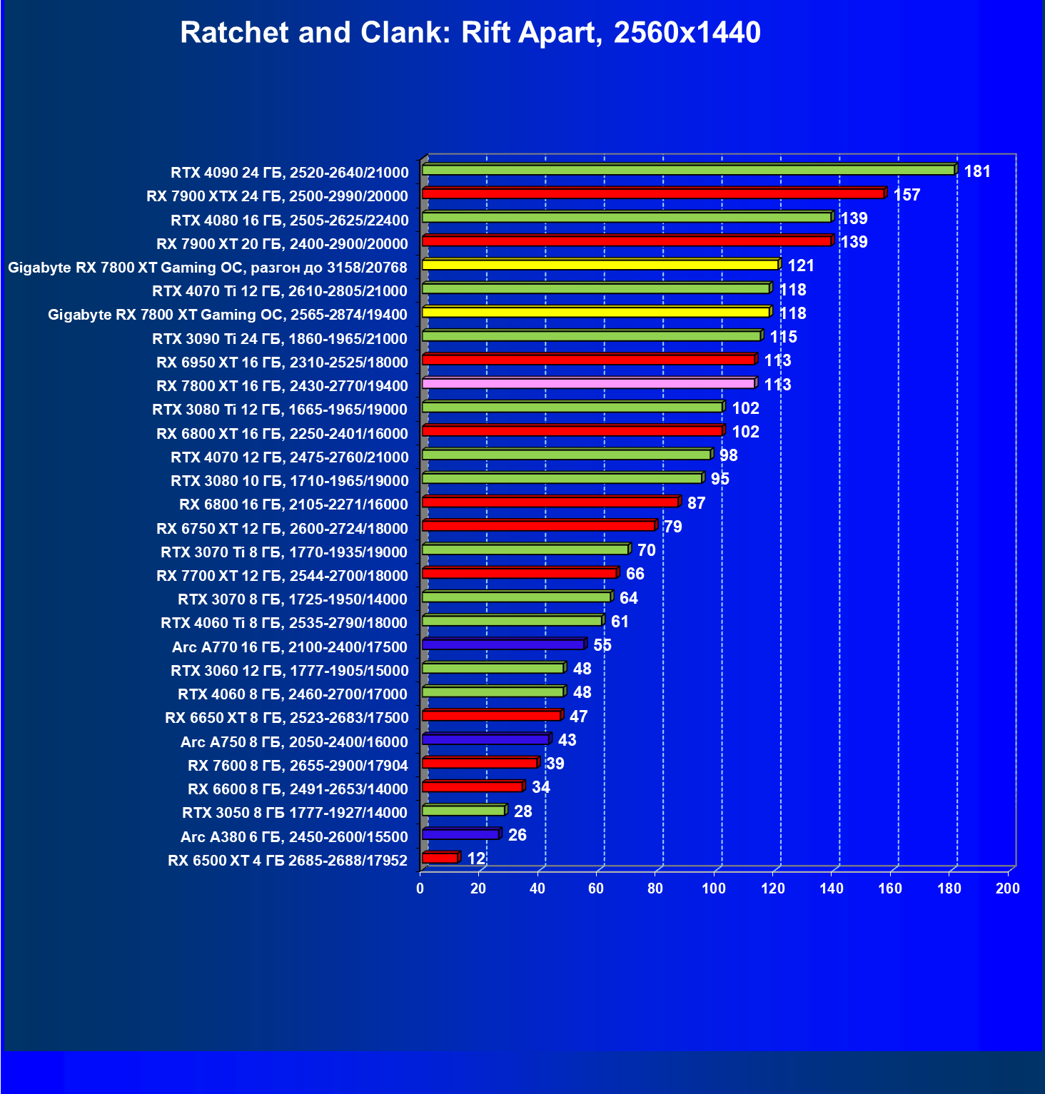 | 13 | Gigabyte RX 7800 XT, разгон до 3158/20768 | 123 | 787 | 64 000 |