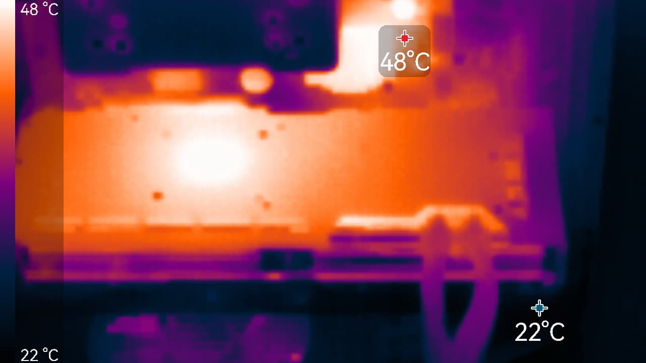 В режиме максимальной нагрузки в 3D температура достигала 66/88/78 °C (ядро/hot spot/память). Вентиляторы при этом раскручивались до 1200 оборотов в минуту, шум вырастал только до 30,8 дБА: это на грани отчетливо слышимого уровня.