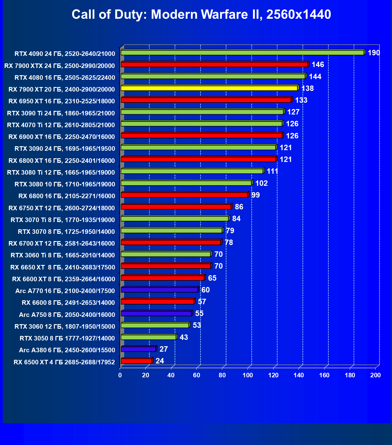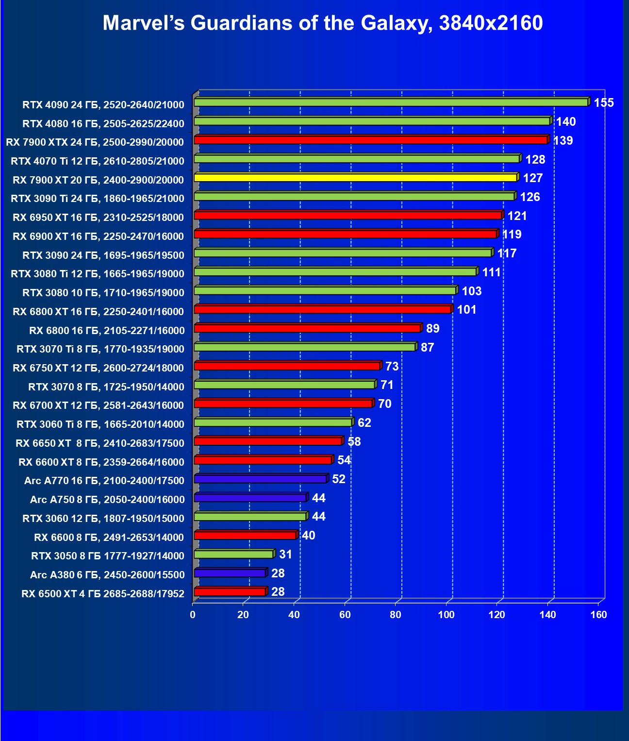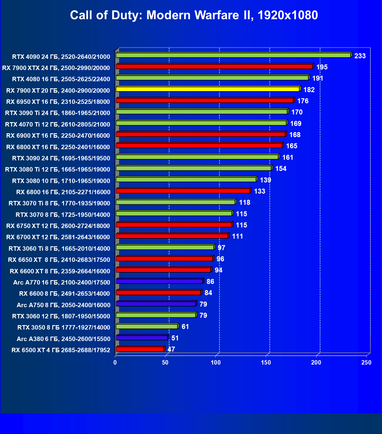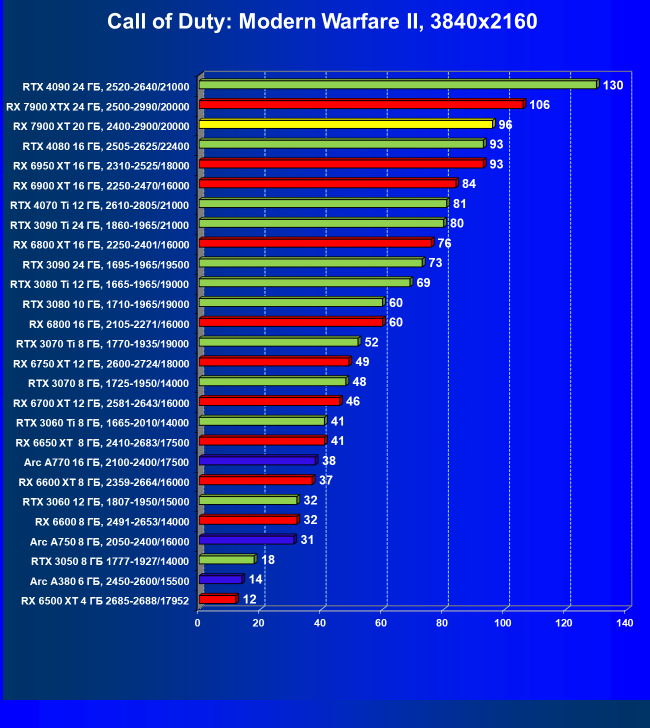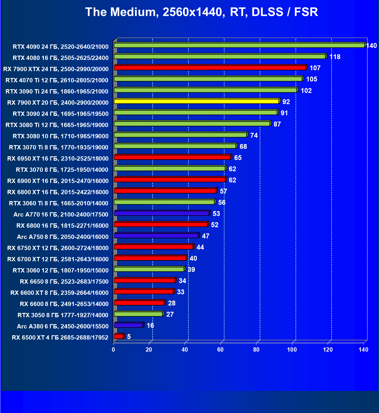 | 17 | RX 7900 XT 20 ГБ, 2400—2900/20000 | 124 | 1112 | 90 000 |