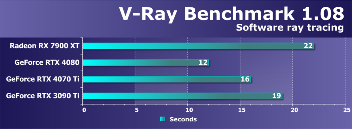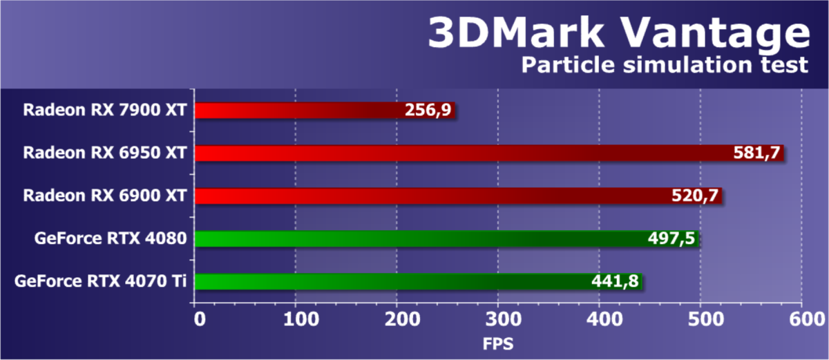 Впрочем, сравнивать цены правильнее с решениями конкурента, и с этим всё более-менее нормально: главным конкурентом RX 7900 XT является младшая из трех вышедших старших видеокарт нового семейства GeForce — RTX 4070 Ti. Интереснее всего, что в этом поколении не видеокарта AMD сто́ит дешевле конкурирующей, а решение Nvidia. Хотя всегда можно сказать, что у них есть еще более дорогая RTX 4080, но по скорости RX 7900 XT ближе все-таки к RTX 4070 Ti.