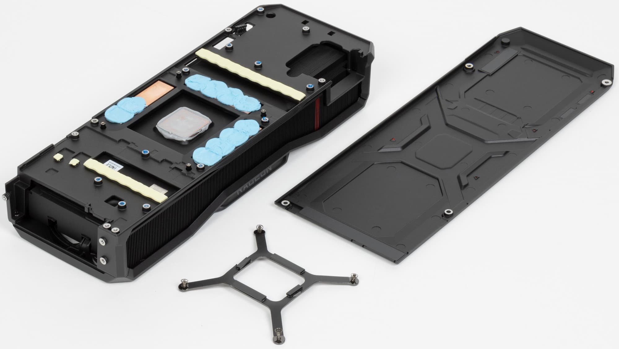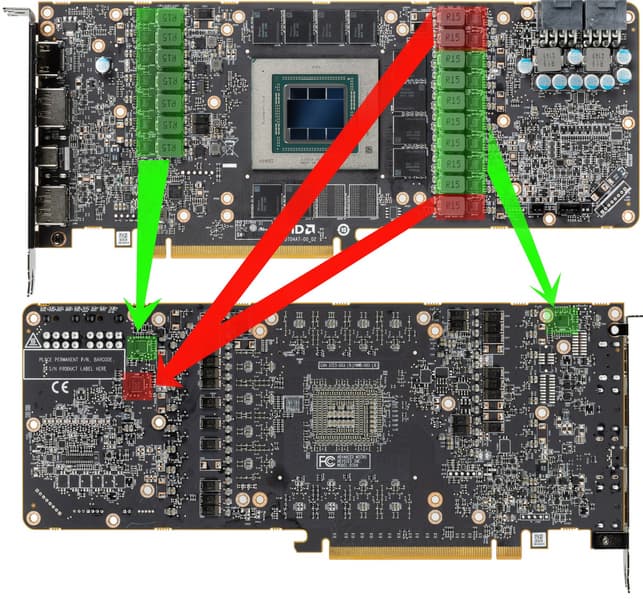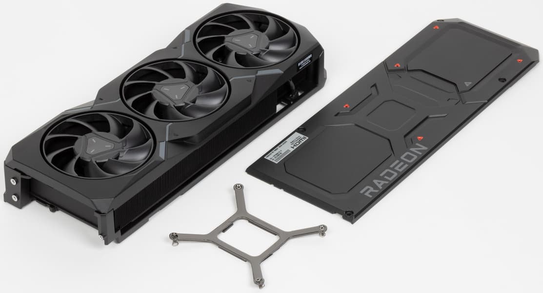 Что касается физического воплощения, то все шесть чиплетов MCD на подложке RX 7900 XT присутствуют, конечно же — в том числе чтобы не нарушать прижим радиатора охлаждения, но один из них электрически отключен от основного чиплета — и в теории, этот отключенный кристалл чиплета MCD может быть бракованным и нерабочим, а уж как дело обстоит на деле — доподлинно неизвестно.