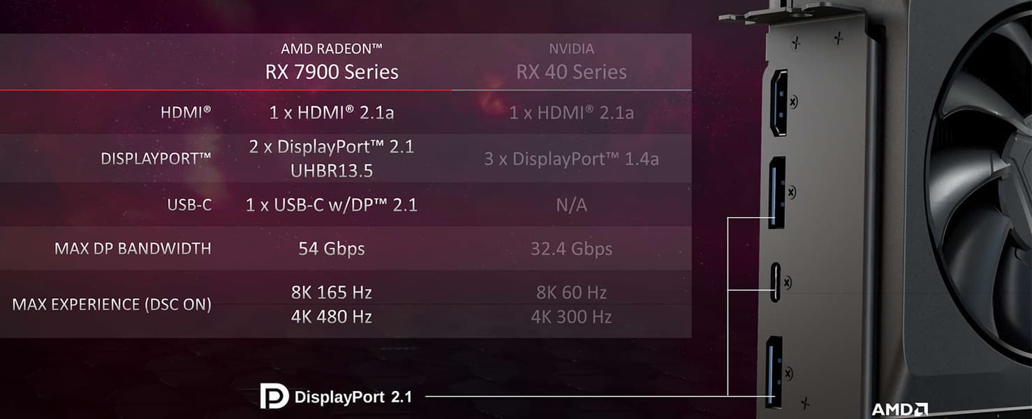 Отметим еще раз, что Radeon RX 7900 XT отлично подходит для классических игр (без трассировки лучей) в разрешении 4К с максимальным качеством графики, а также для игр с трассировкой лучей в том же разрешении, но обязательно совместно с FSR. Также отметим поддержку стандарта DisplayPort 2.1.