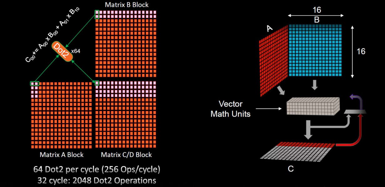| Вычислительные блоки | 96 вычислительных блоков CU, состоящих в целом из 6144 (или 12288, смотря как считать) ALU для целочисленных расчетов и расчетов с плавающей запятой (поддерживаются форматы INT4, INT8, INT16, FP16, FP32 и FP64) |