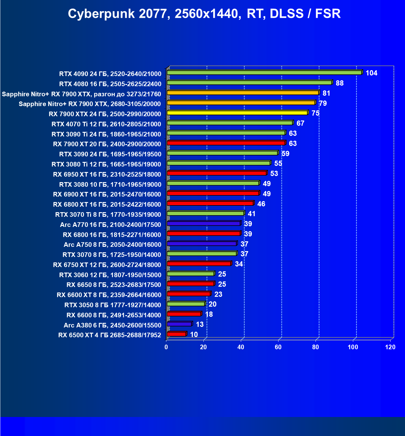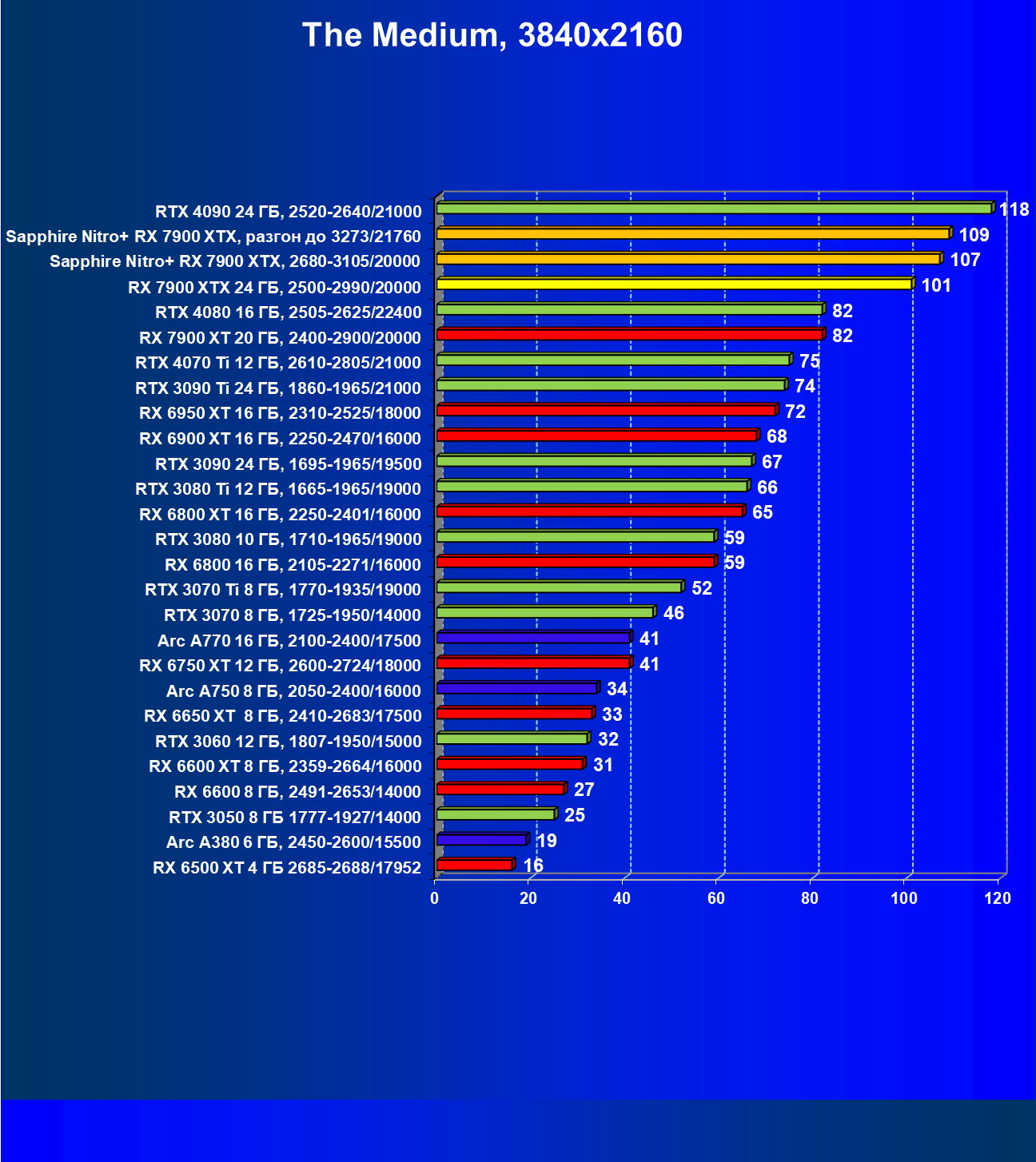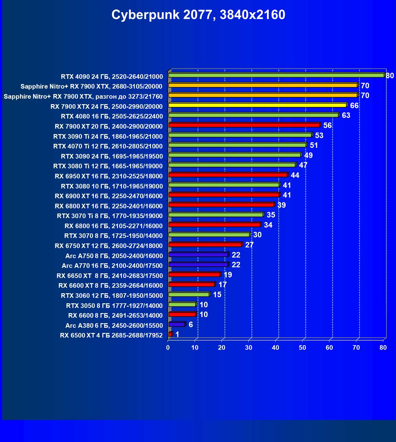 | 04 | Sapphire Nitro+ RX 7900 XTX, 2680—3105/20000 | 864 | 79 | 110 000 |