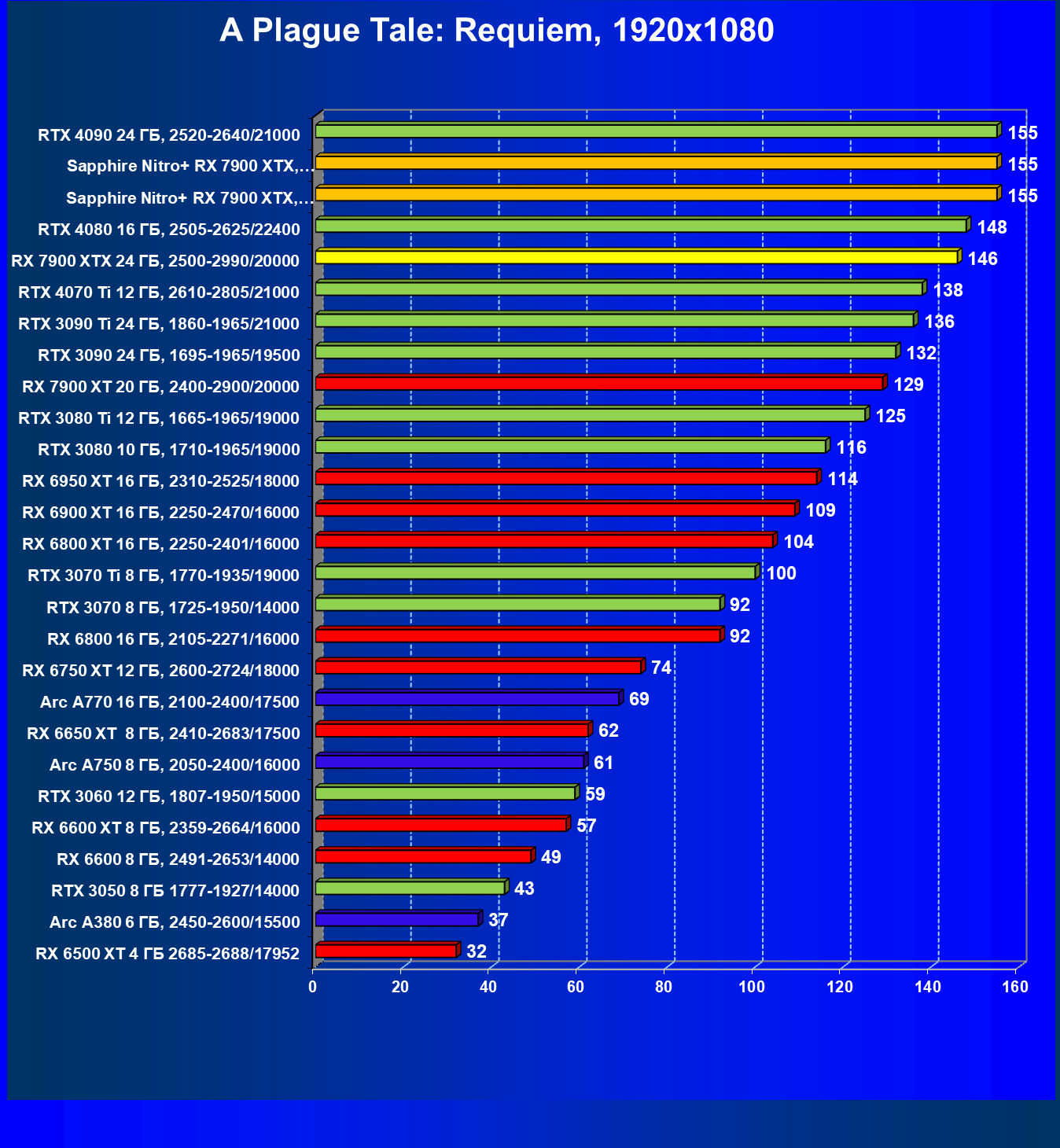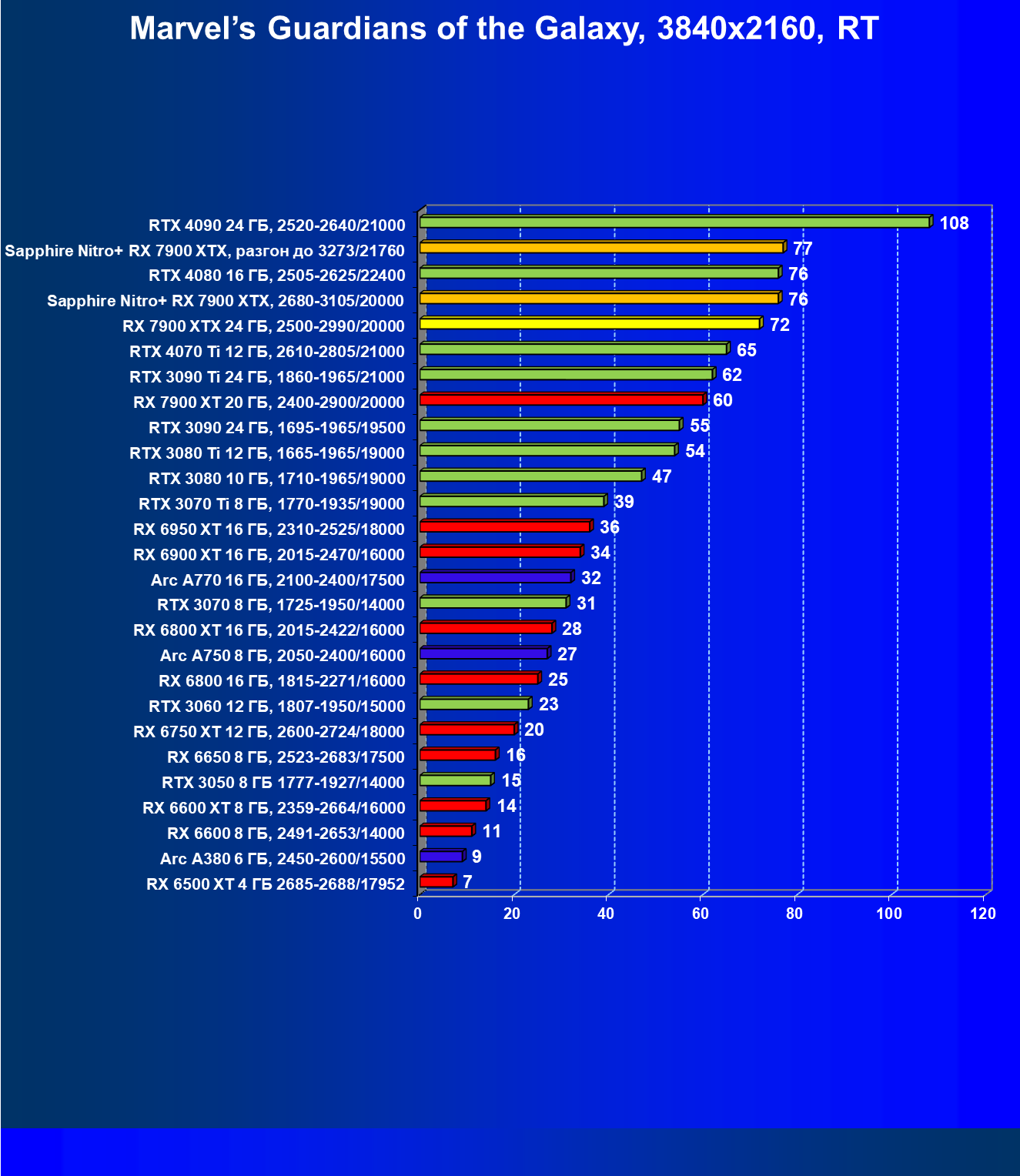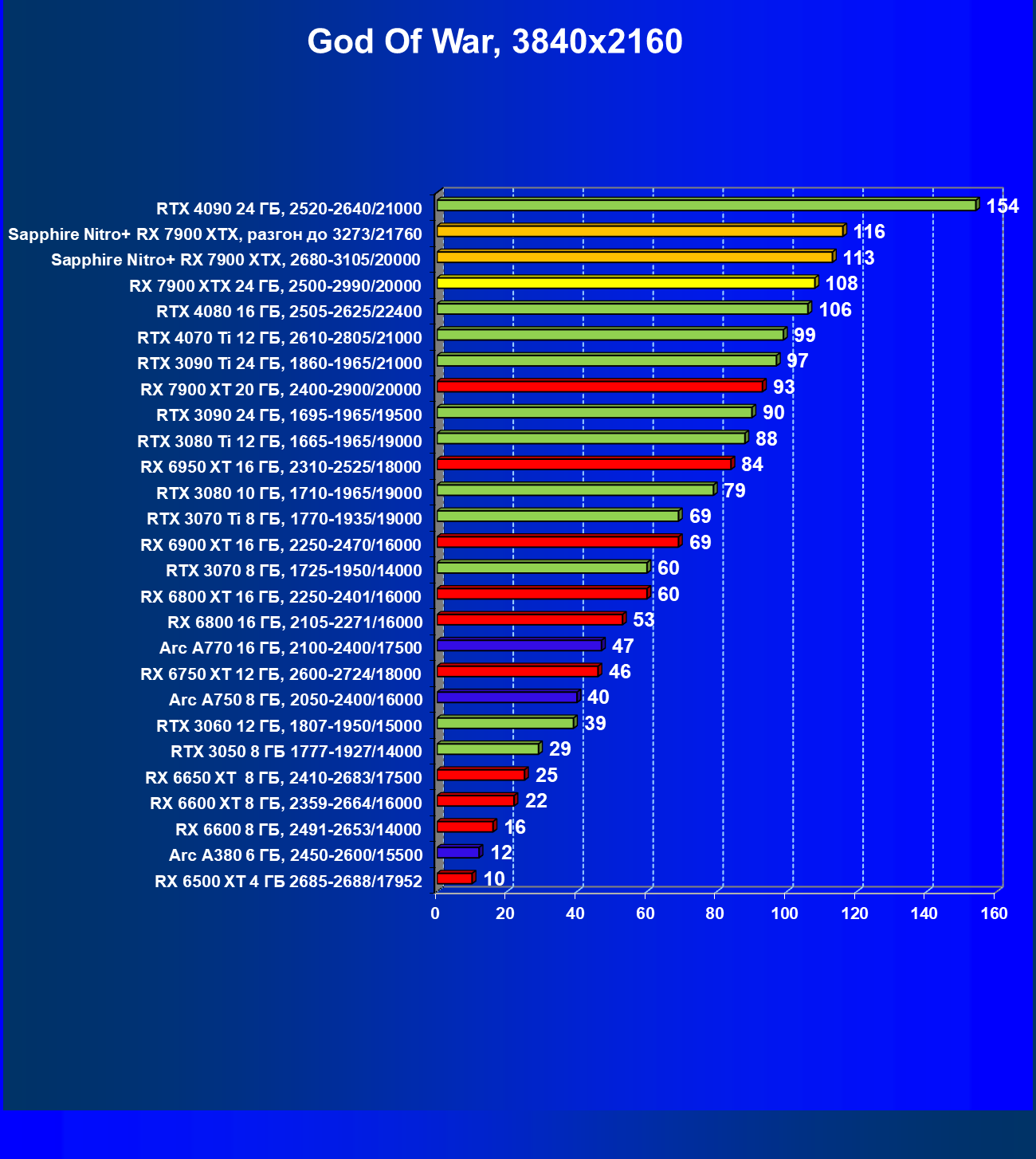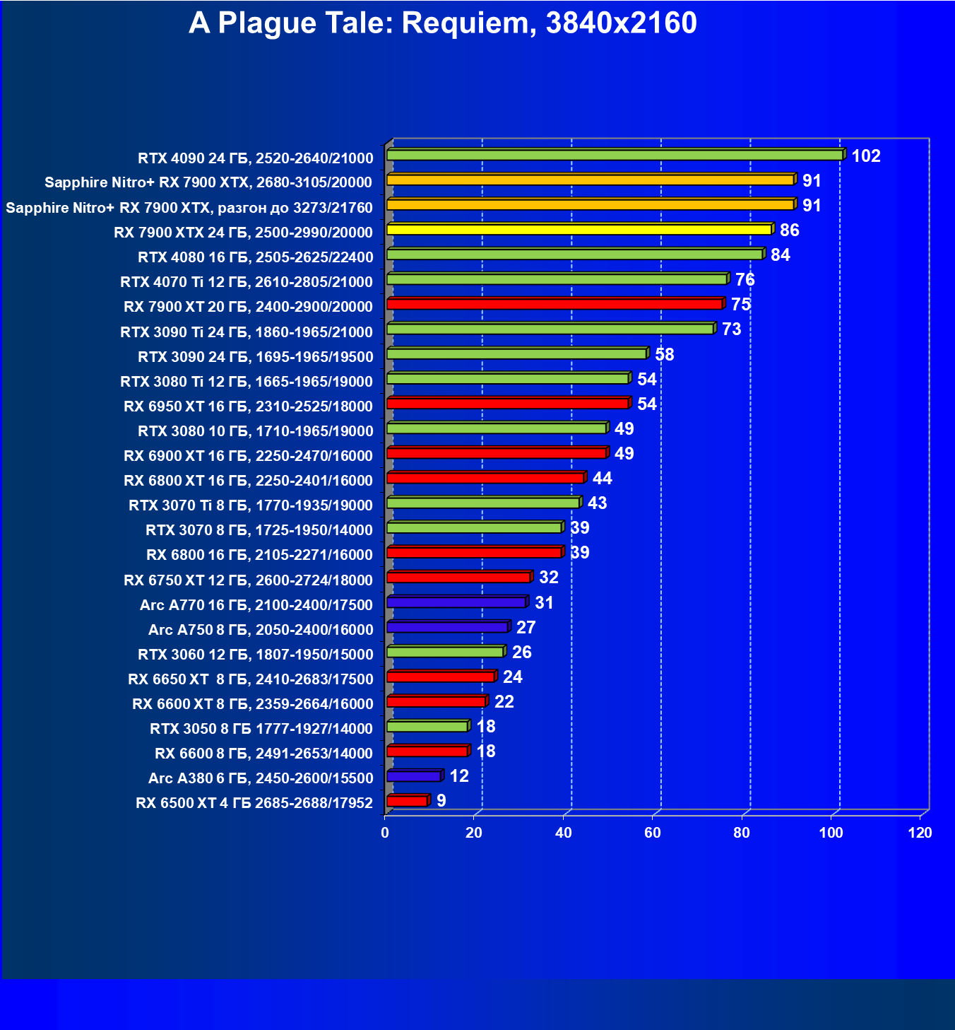 | 04 | Sapphire Nitro+ RX 7900 XTX, 2680—3105/20000 | 864 | 79 | 110 000 |