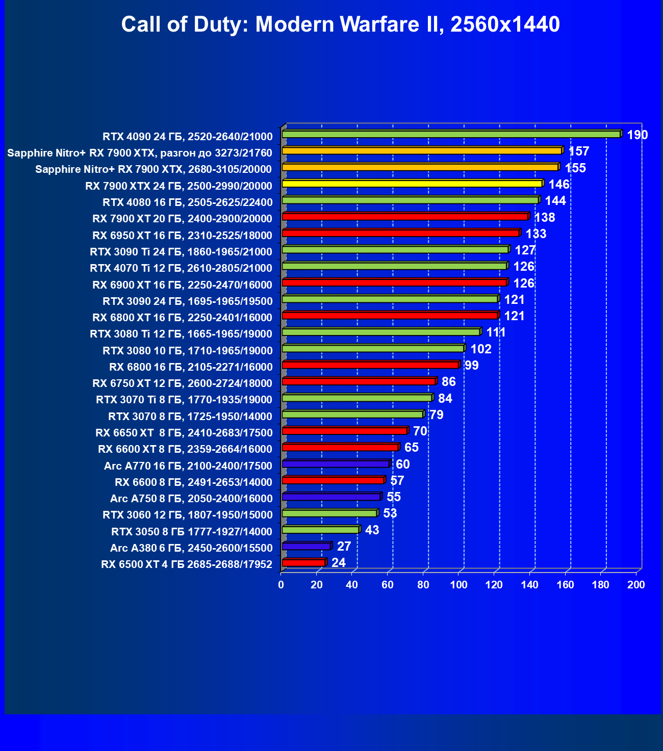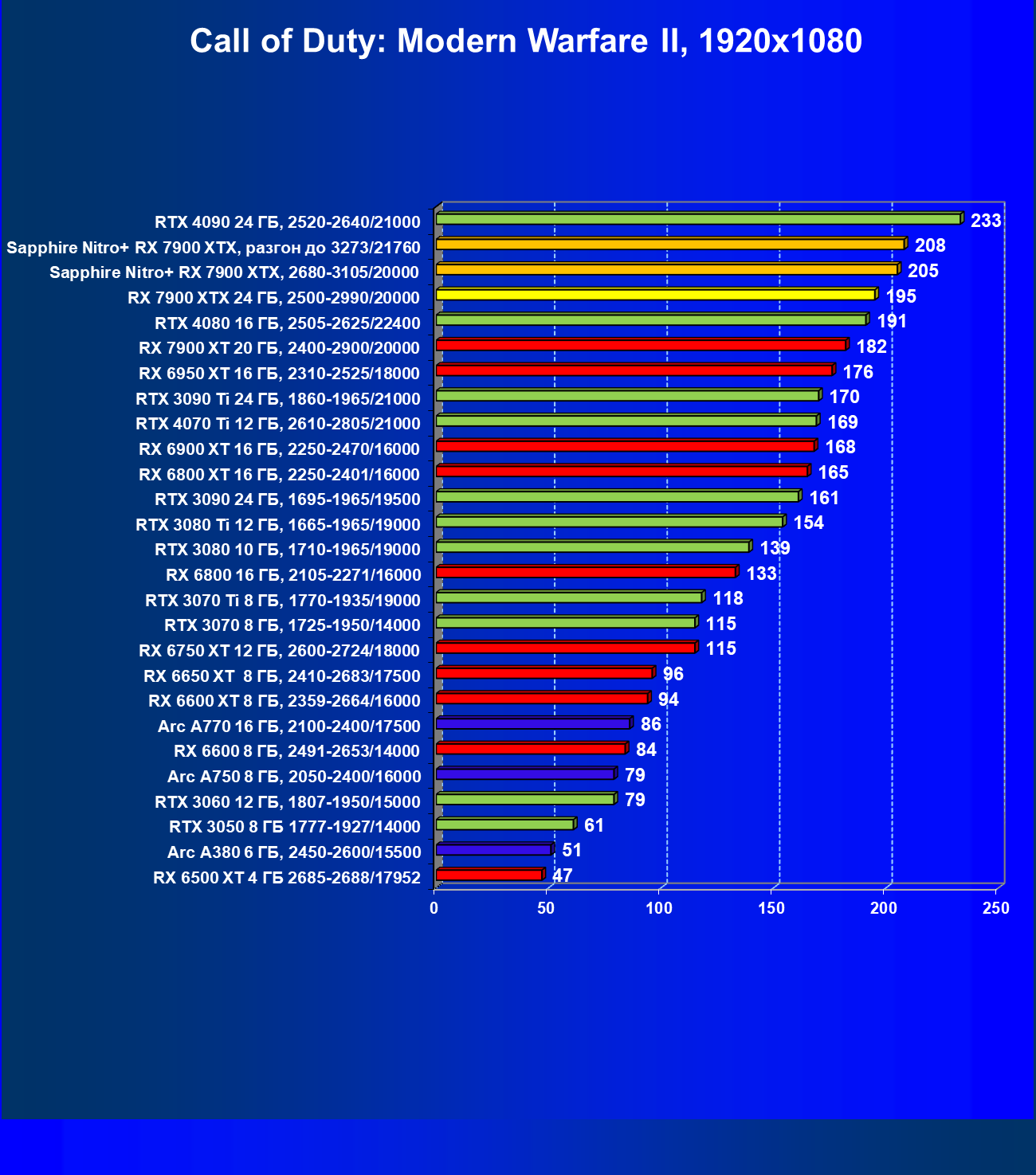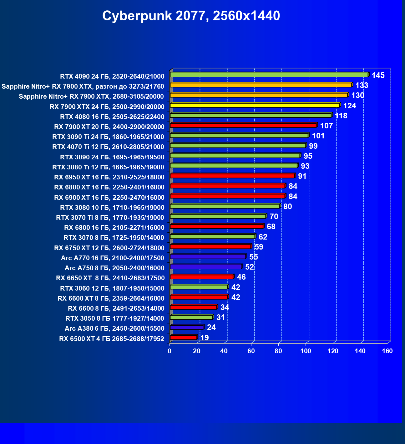| 18 | Sapphire Nitro+ RX 7900 XTX, 2680—3105/20000 | 123 | 1351 | 110 000 |