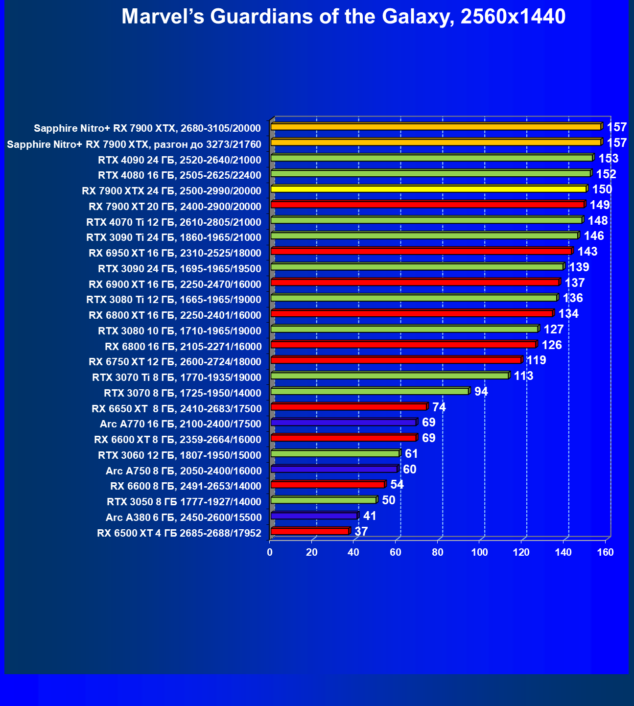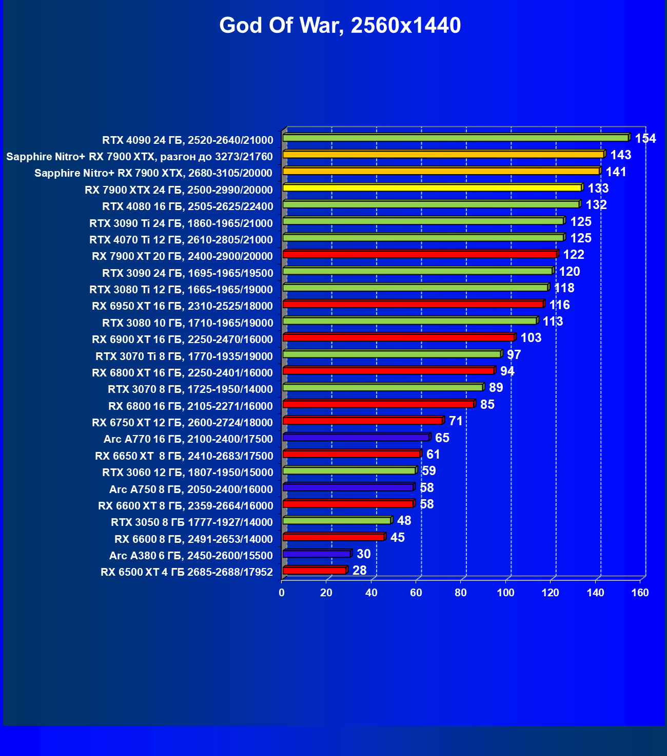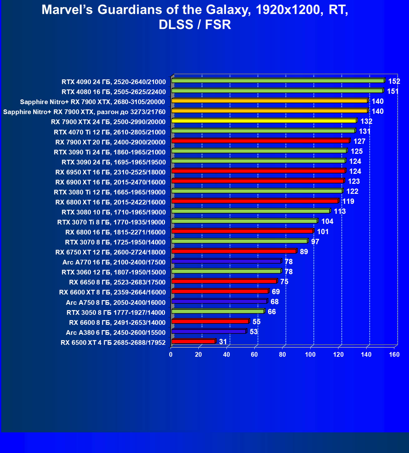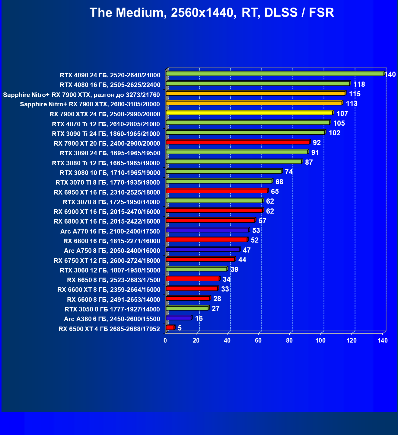 | 03 | Sapphire Nitro+ RX 7900 XTX, 2680—3105/20000 | 566 | 51 | 110 000 |