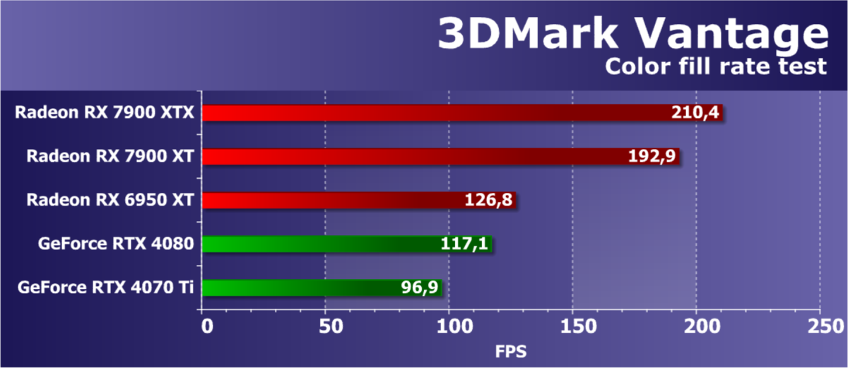 | Radeon RX 7900 XTX | Radeon RX 7900 XT | Radeon RX 6950 XT | GeForce RTX 4090 | GeForce RTX 4080 | GeForce RTX 4070 Ti | |