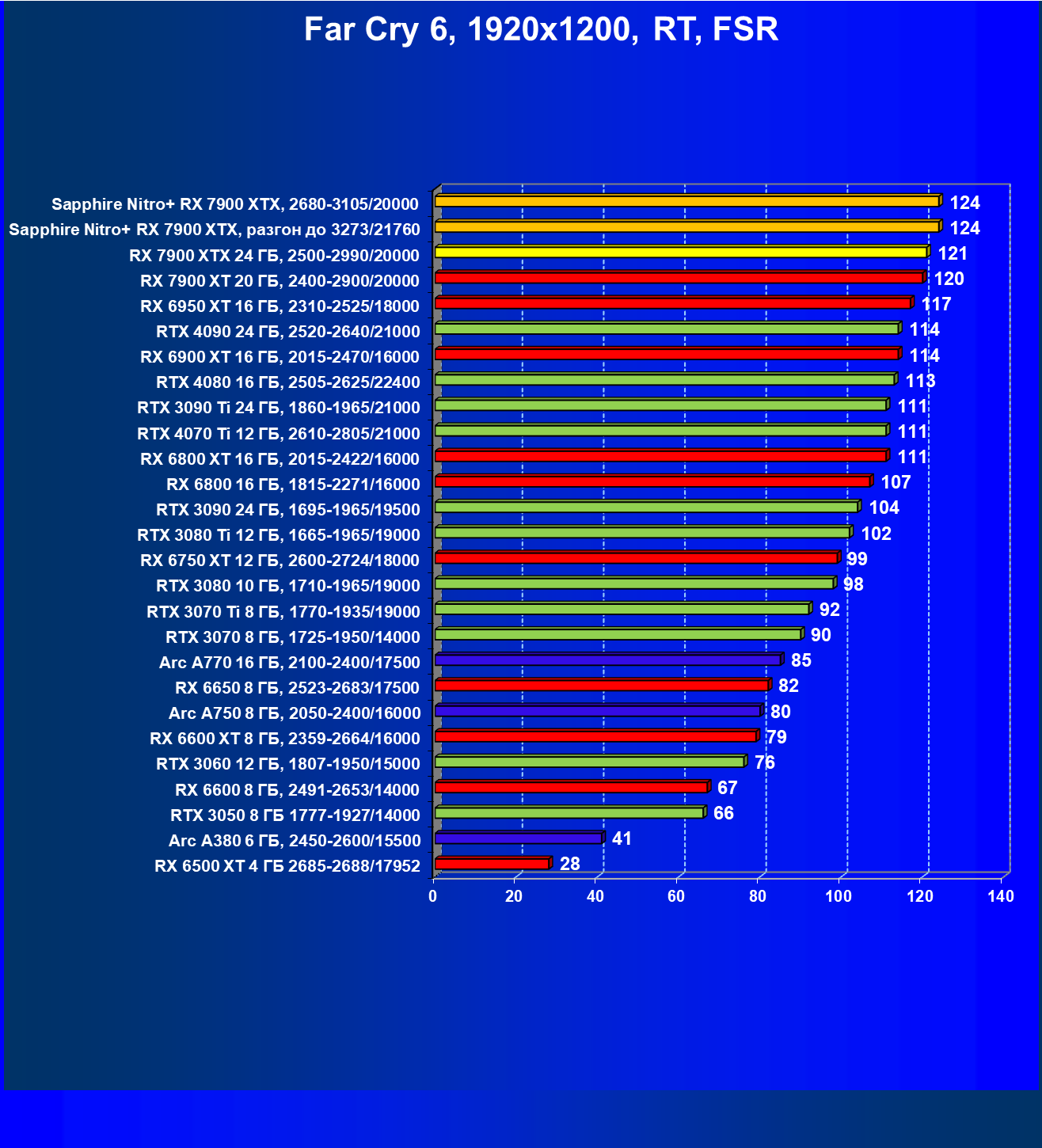 | 19 | RX 7900 XTX 24 ГБ, 2500—2990/20000 | 121 | 1280 | 106 000 |