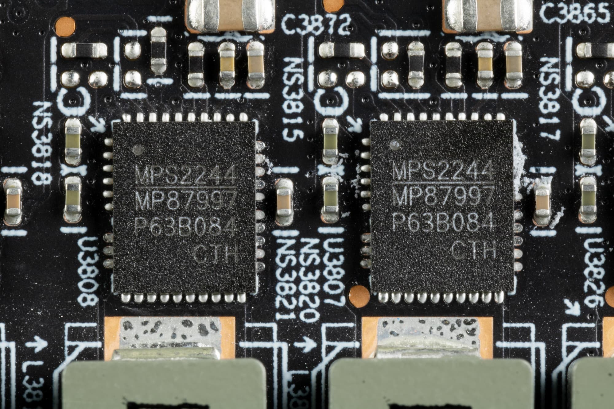 Конкретная протестированная нами видеокарта Sapphire Nitro+ Radeon RX 7900 XTX Vapor-X (24 ГБ) имеет огромные габариты, особенно по толщине, занимая 4 слота в системном блоке. СО у этой карты очень мощная, однако и шум в максимальном режиме очень существенный. Решение заключается в переключении карты на BIOS 2, где сильнее ограничено потребление, но потери производительности не так уж велики (3%-4%), а СО становится сравнительно тихой. Карта может потреблять примерно до 400 Вт (в режиме BIOS 2 — до 350 Вт), она требует использовать три 8-контактных разъема питания.