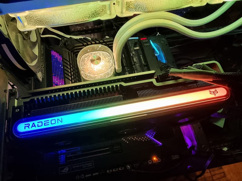 AMD Radeon RX 7900 XTX (24 ГБ) — флагманский ускоритель нового поколения AMD Radeon RX 7000, примерно соответствующий по скорости ускорителю Nvidia GeForce RTX 4080: в классических играх Radeon RX 7900 XTX чуть быстрее соперника, а в играх с RT немного отстает от него.
