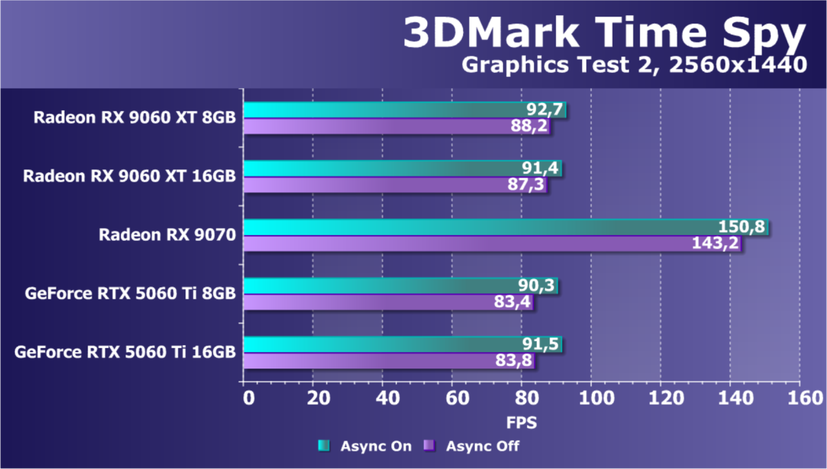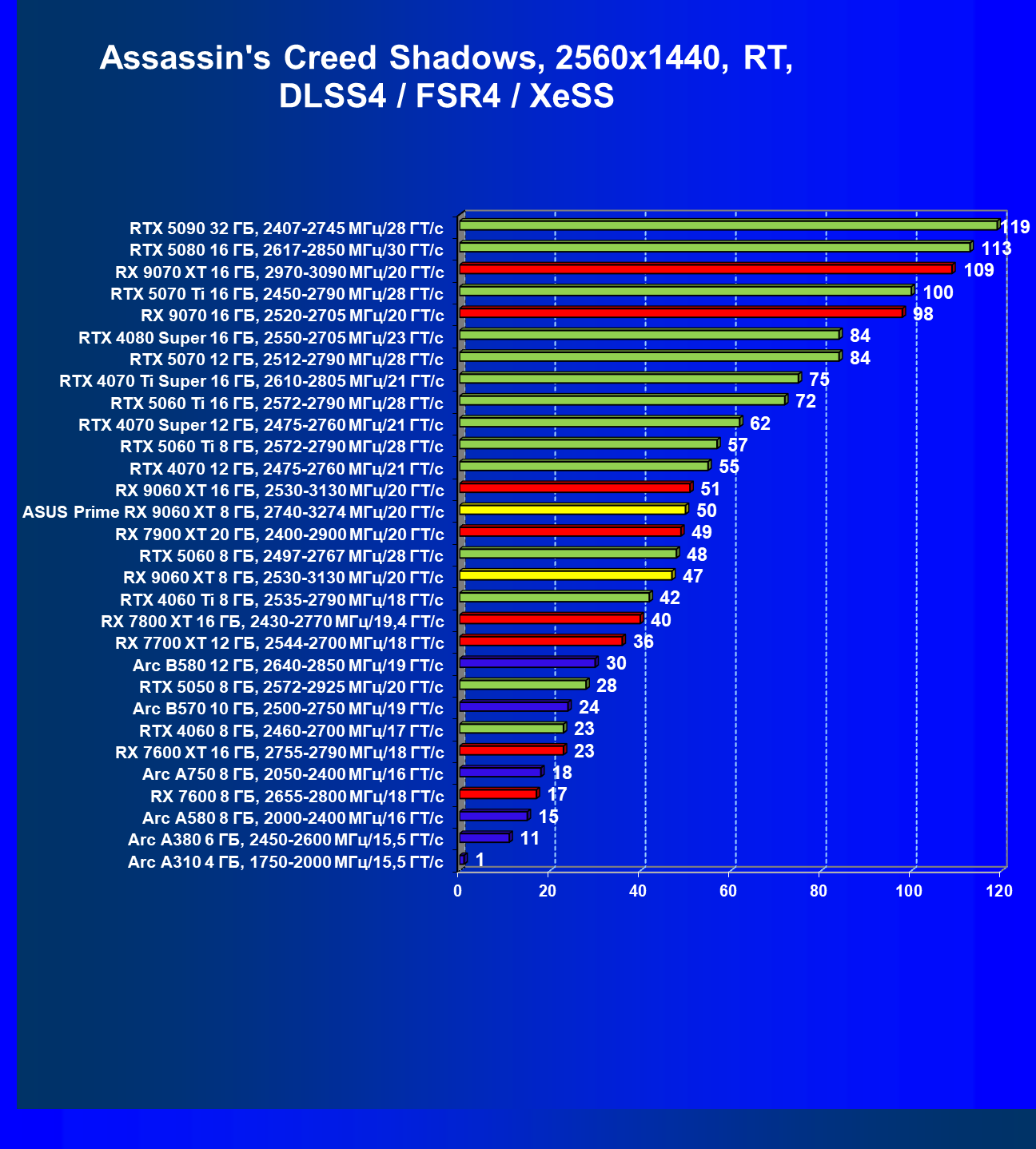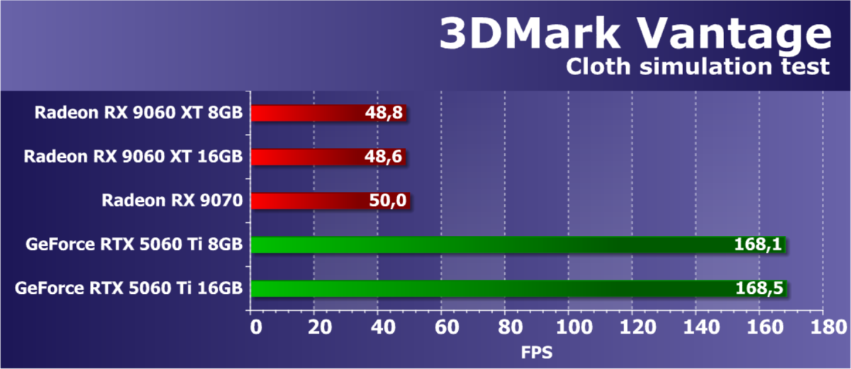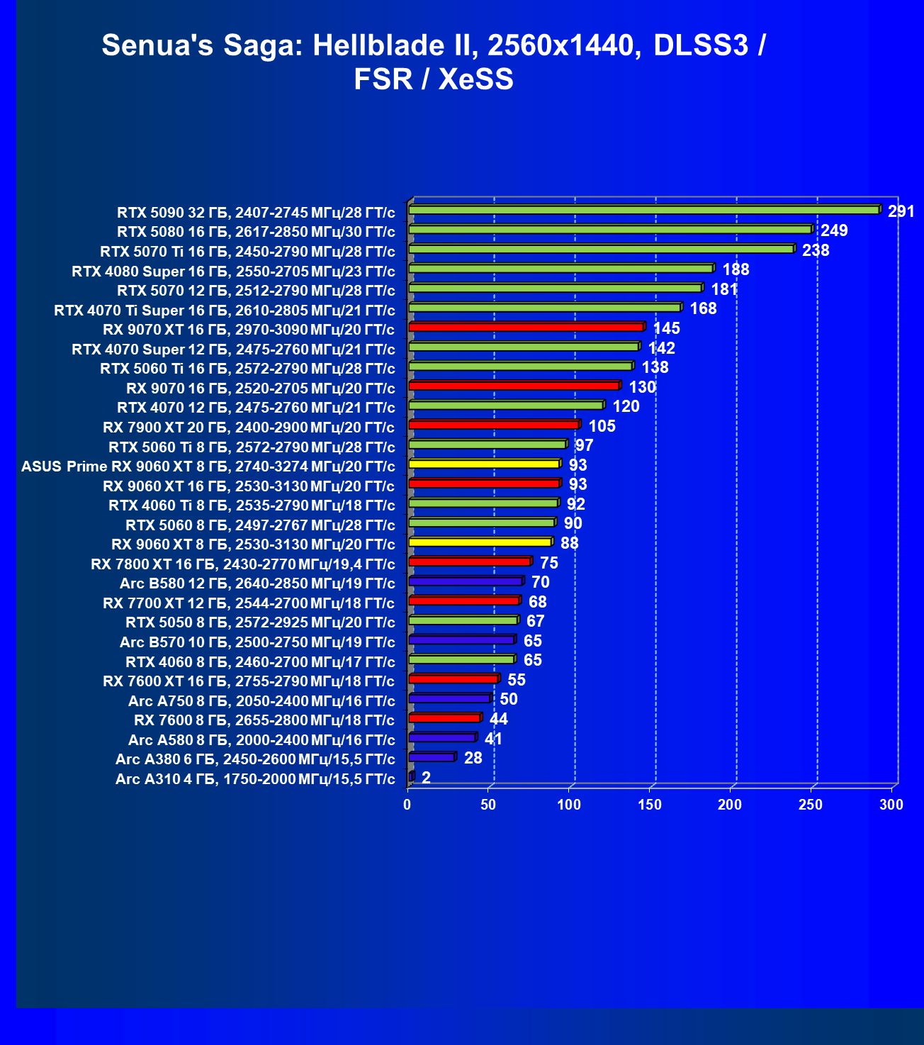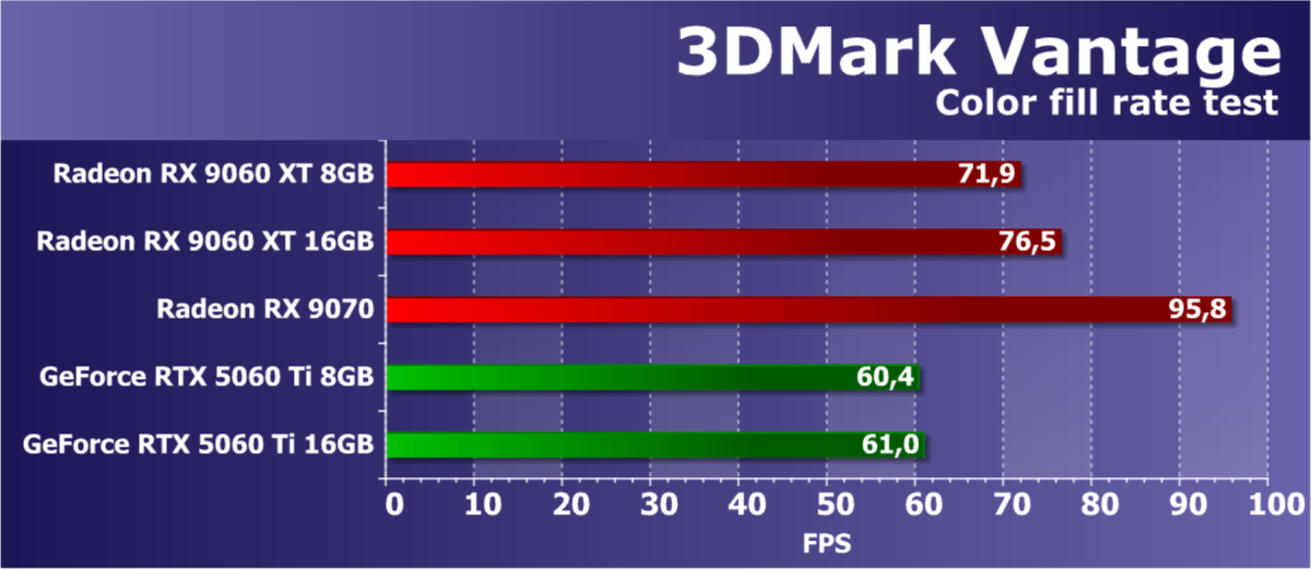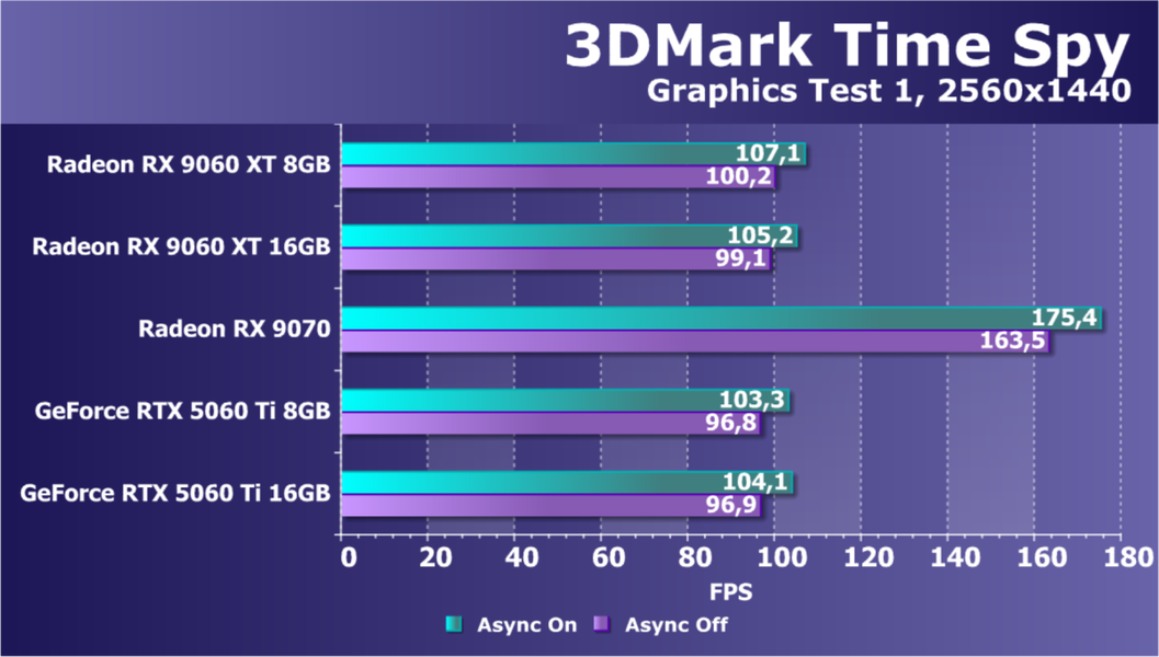 Еще раз отметим, что в классических играх производительность Radeon RX 9060 XT (с 8 и 16 ГБ памяти) позволяет получить высокий уровень комфорта в играх на максимальных настройках качества в разрешении 1080p (Full HD), во многих играх с Radeon RX 9060 XT (16 ГБ) можно хорошо поиграть и в разрешении 1440p (2.5K), но вариант с 8 ГБ в этом плане несколько хуже, с ним лучше ограничиться разрешением 1080p. Использование трассировки лучей надо обязательно сочетать с технологиями динамического масштабирования, и в таком случае можно получить высокую играбельность в 1080p, а в ряде случаев и в 1440p.