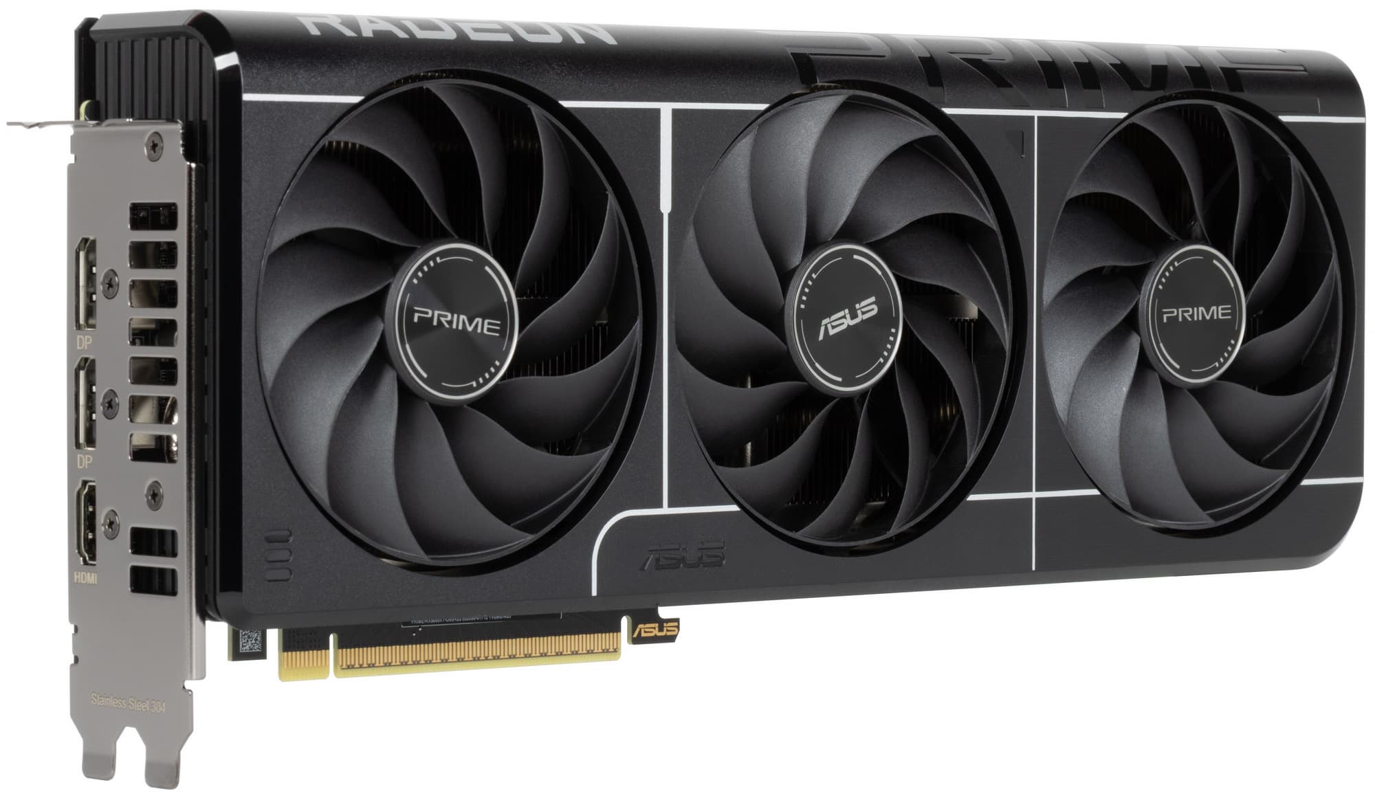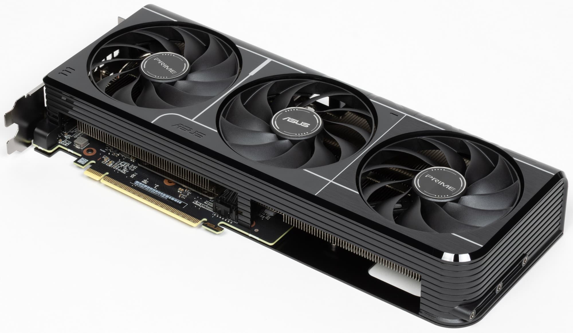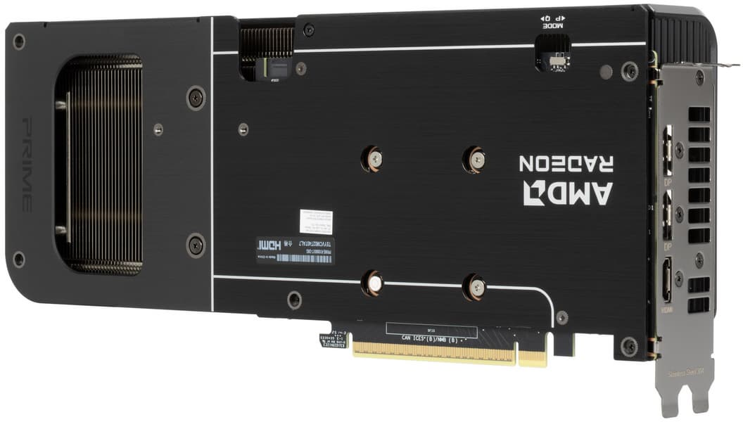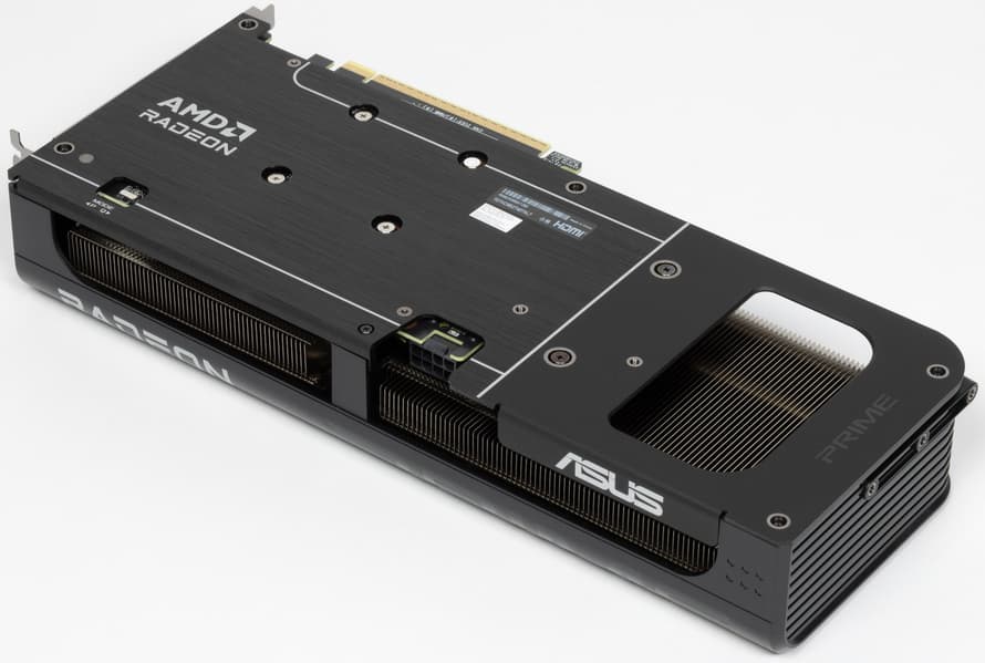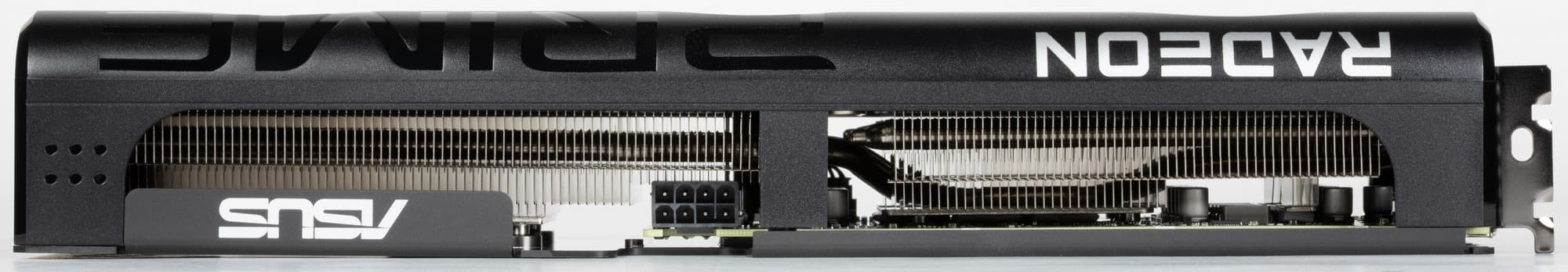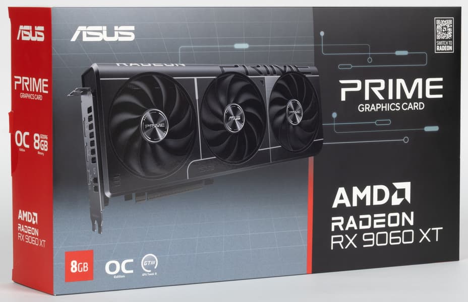 Конкретная протестированная карта Asus Prime Radeon RX 9060 XT OC (8 ГБ) имеет адекватные для решений такого уровня размеры 30×13 см, но занимает 3 слота в системном блоке, потому что использует габаритную и избыточную по производительности систему охлаждения: она удерживает нагрев на невысоком уровне, даже работая практически бесшумно в режиме BIOS Q Mode. Карта может потреблять до 175 Вт и имеет один 8-контактный разъем питания. У нее 3 видеовыхода: 1 HDMI 2.1b и 2 DisplayPort 2.1b — последний обеспечивает пропускную способность до 80 Гбит/с в режиме передачи UHBR 20 и позволяет подключить 8K-дисплей с частотой обновления 60 Гц по одному кабелю.