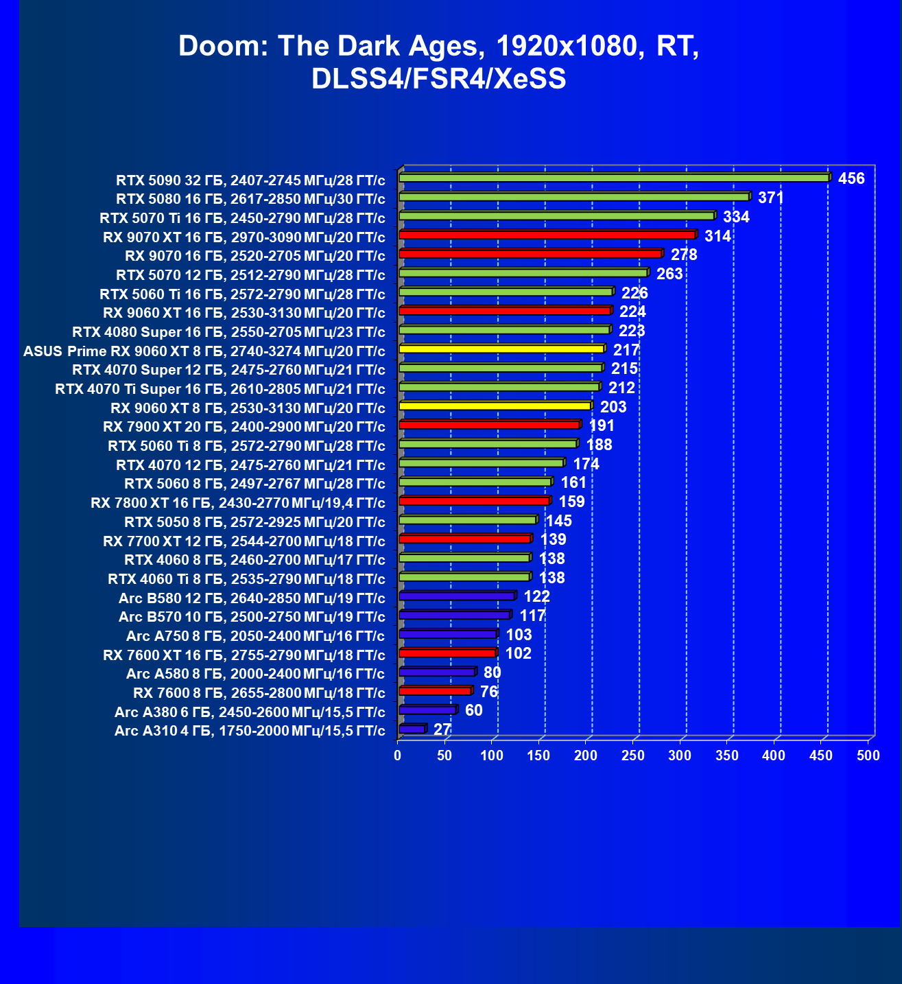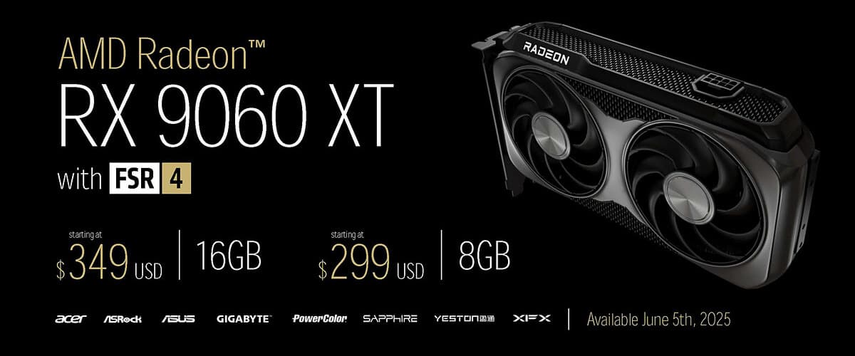 Рекомендованная цена двух конфигураций Radeon RX 9060 XT с разным объемом памяти составляет $299 и $349, что выгодно отличается от рекомендованной цены Radeon RX 7600 XT на старте — $329. И хотя основным ценовым конкурентом Radeon RX 9060 XT является GeForce RTX 5060 Ti, но в основном это для младшей конфигурации с 8 ГБ памяти и ценой $379, ведь 16-гигабайтная модель оценена в $429. И хотя реальные розничные цены выше рекомендованных, но Radeon RX 9060 XT всё равно дешевле GeForce RTX 5060 Ti, и почти не уступает последней по производительности даже с учетом трассировки лучей, кроме редких игр с трассировкой пути. Есть у младшего варианта RX 9060 XT и еще один конкурент — Intel Arc B580, который продается еще дешевле, но по скорости он всё же ближе к GeForce RTX 5060, а не к RX 9060 XT и RTX 5060 Ti.