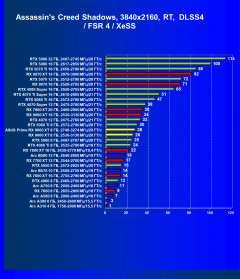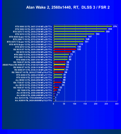 Рейтинг составлен по 10 тестам, в которых используется технология трассировки лучей и одновременно технология Nvidia DLSS, AMD FSR или Intel XeSS. Этот рейтинг нормирован по самому слабому ускорителю в данной группе — Arc A310 (то есть сочетание скорости и функций Arc A310 приняты за 100%).