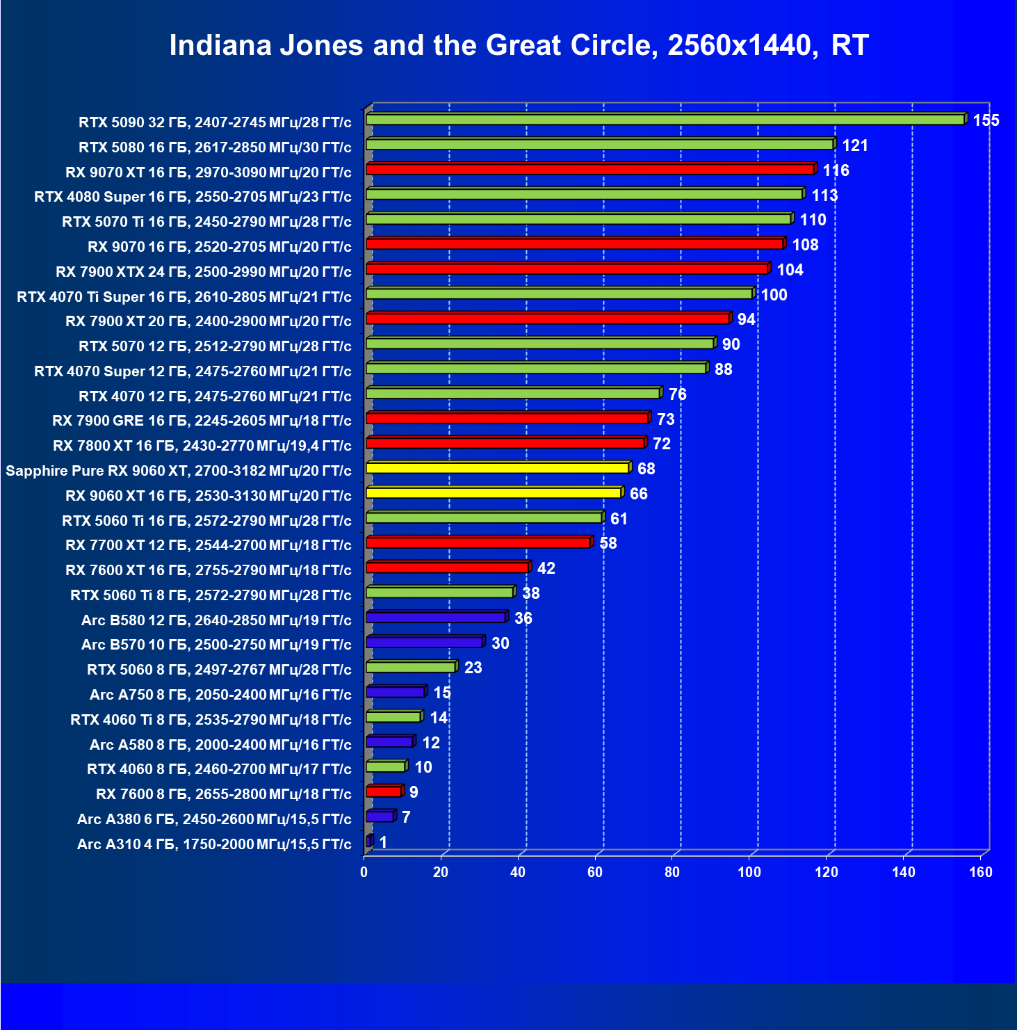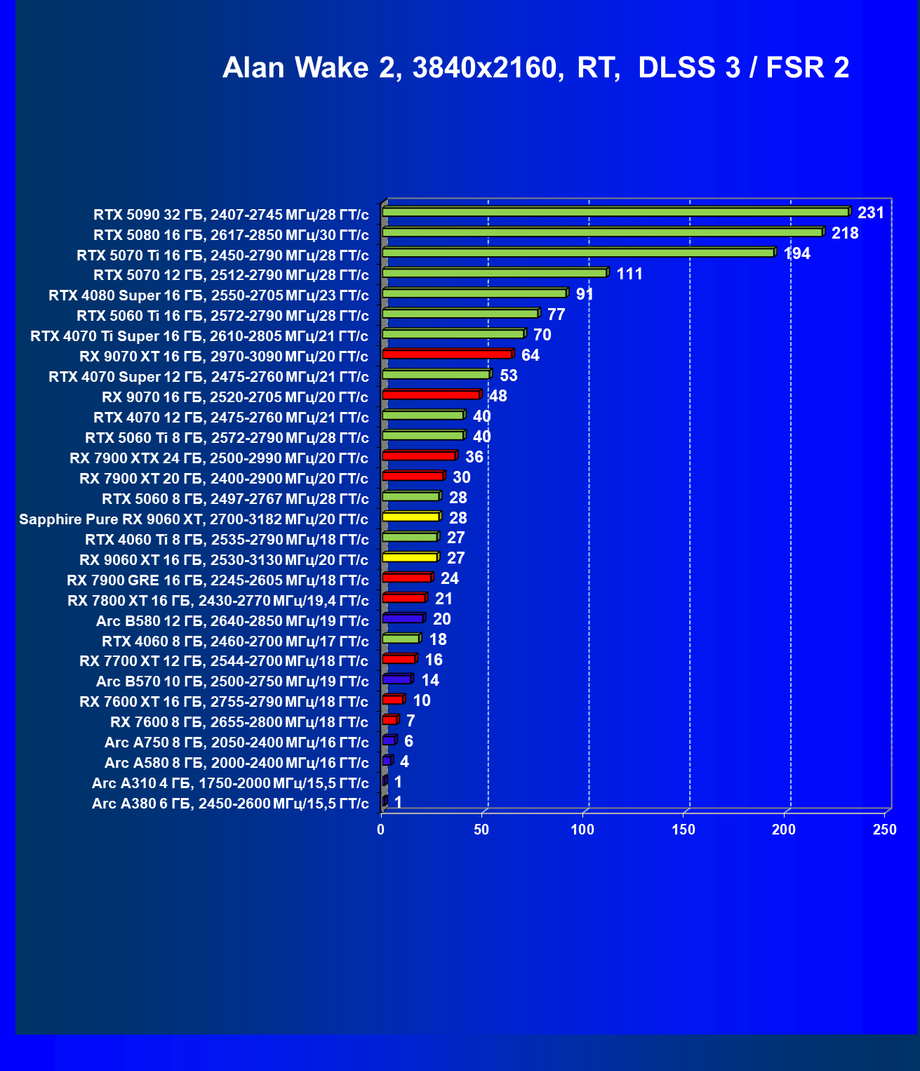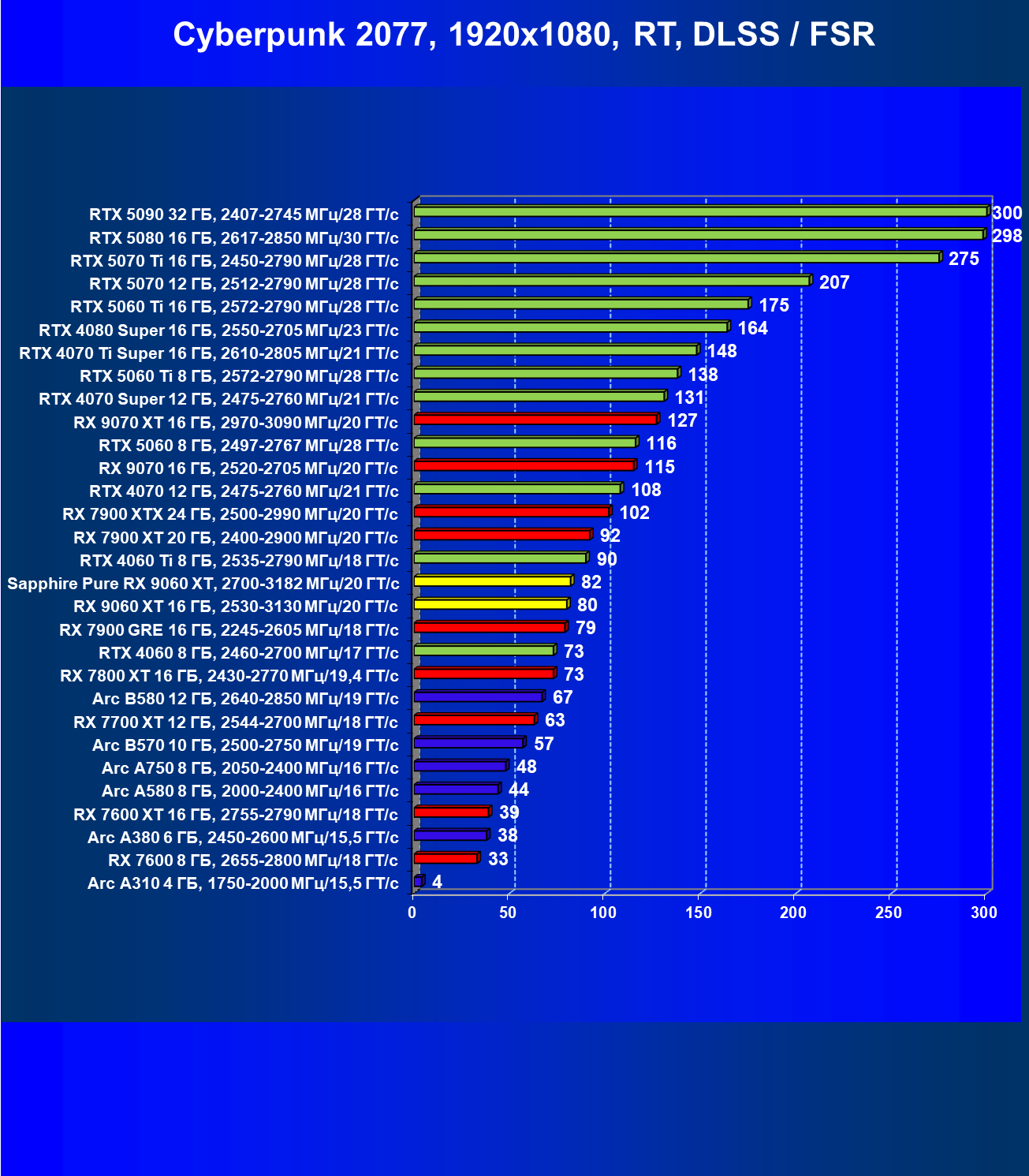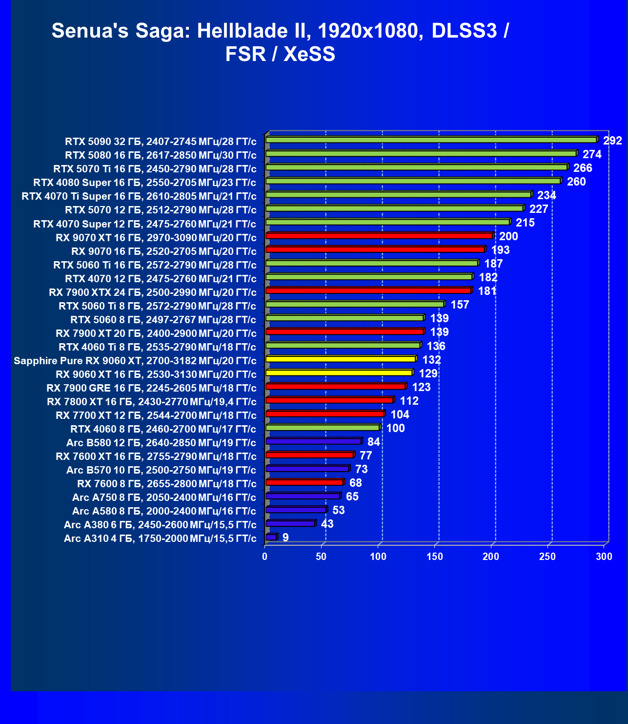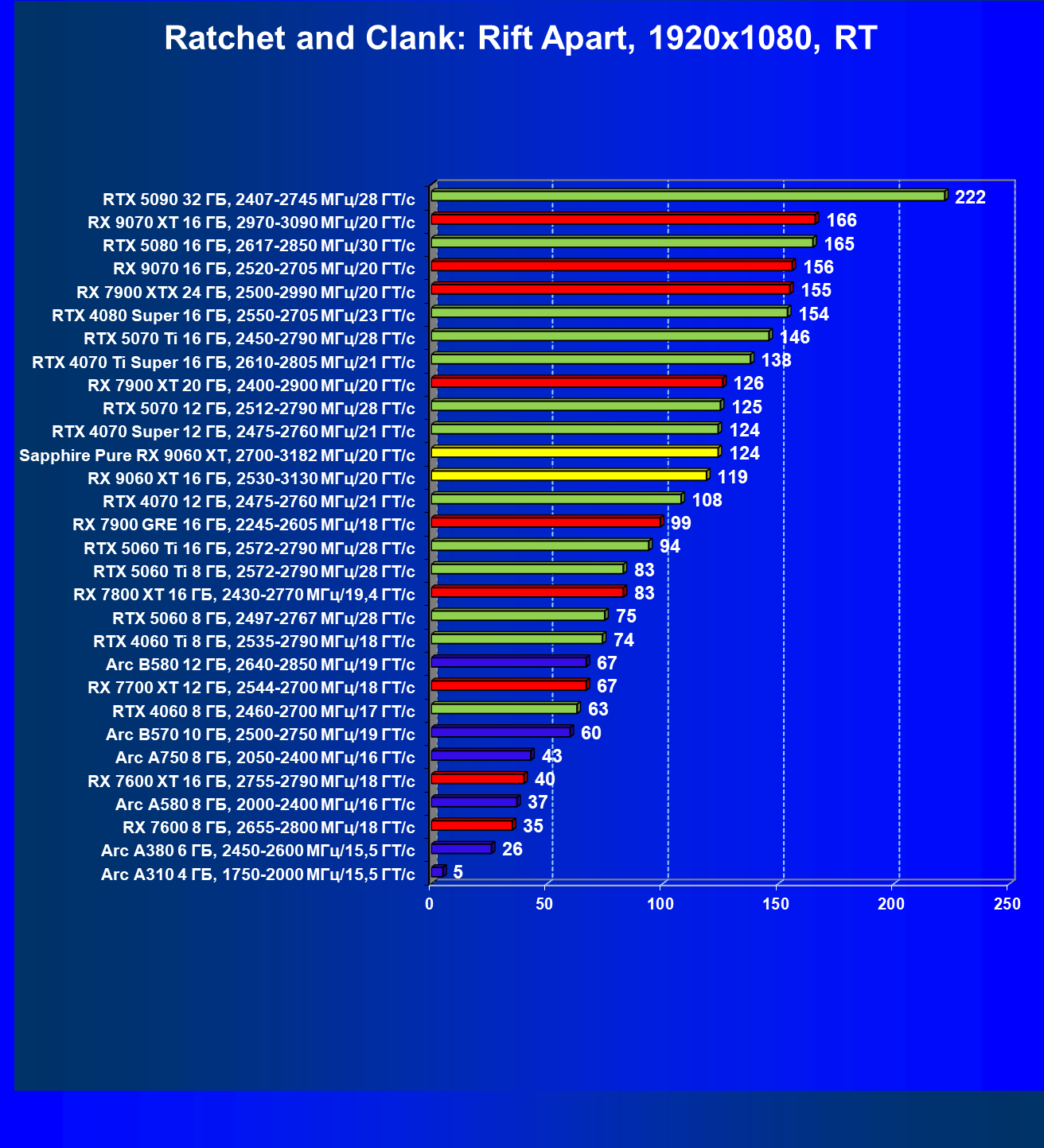 | 08 | Sapphire Pure RX 9060 XT, 2700—3182 МГц/20 ГТ/с | 312 | 1341 | 43 000 |