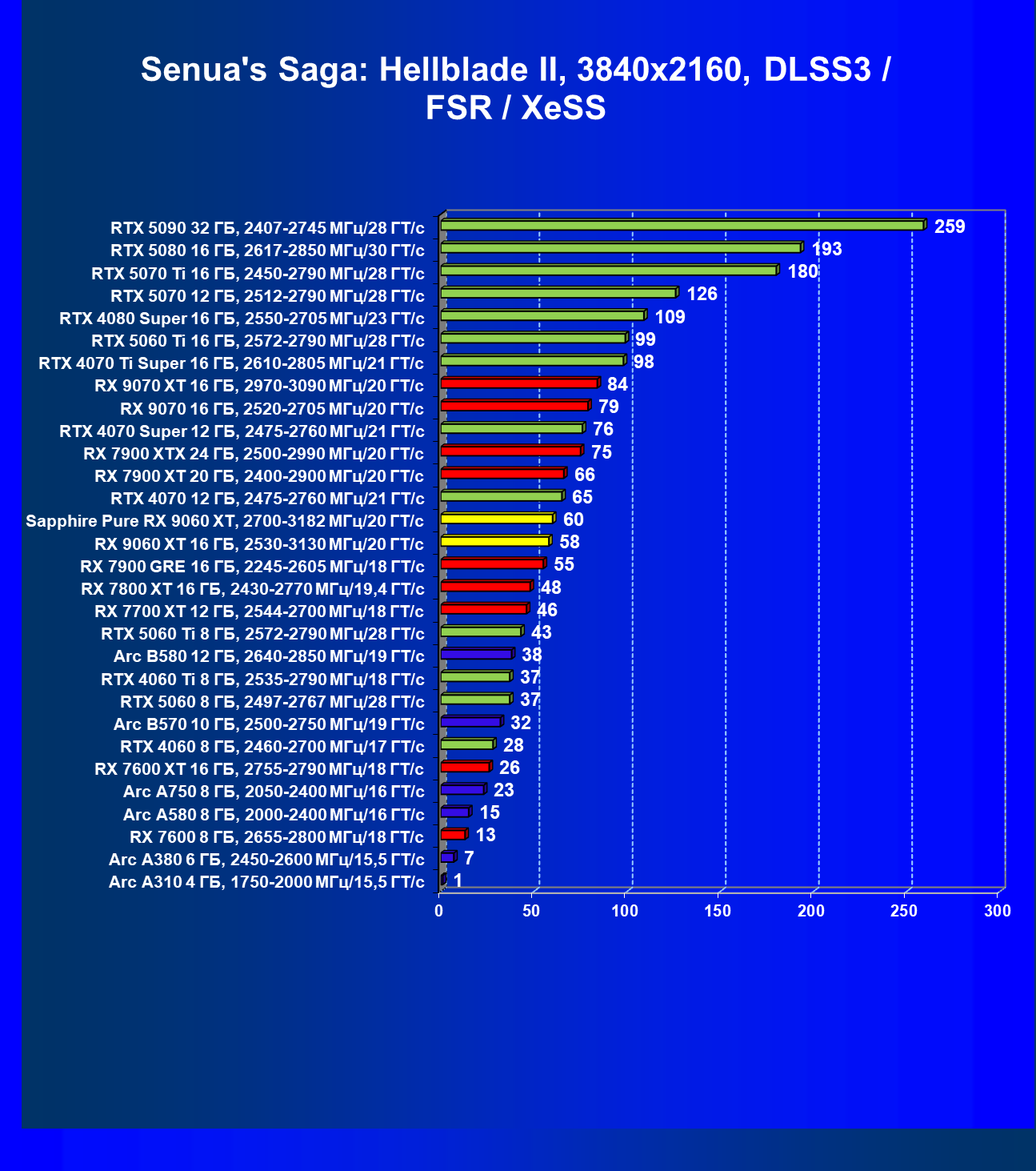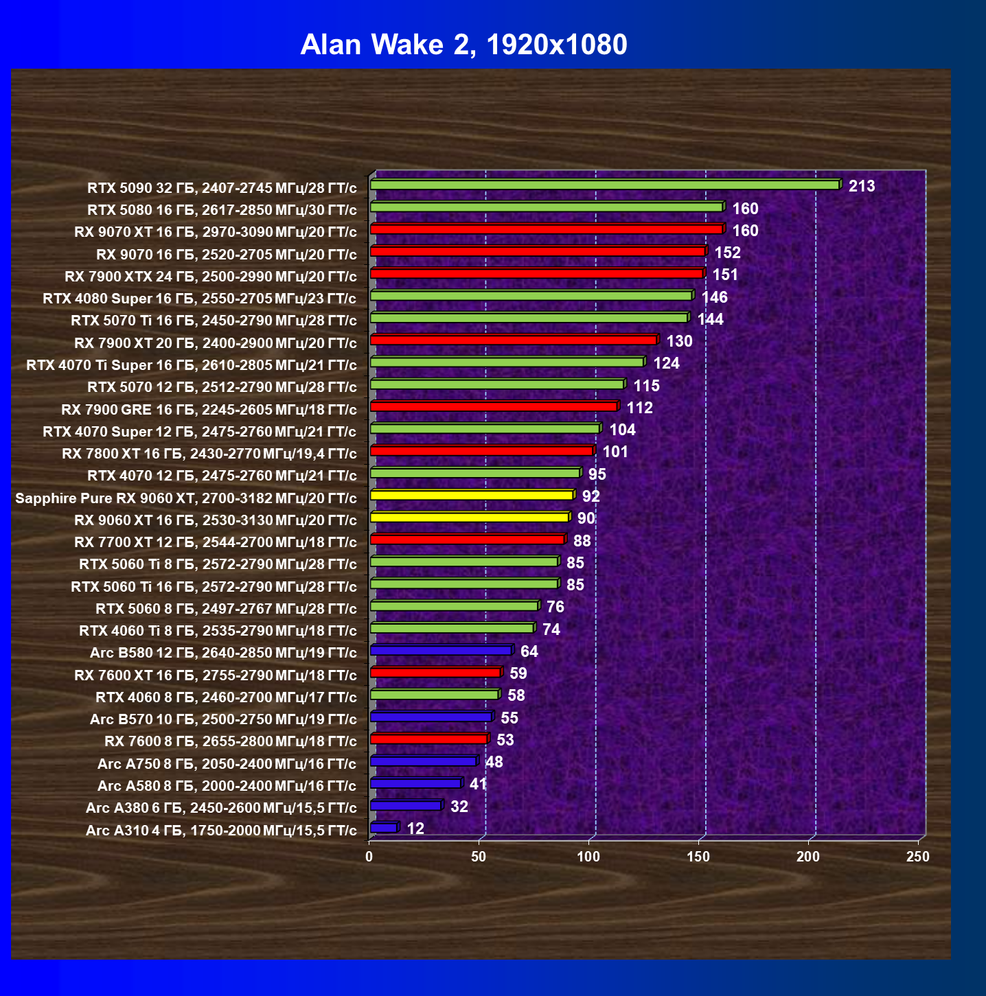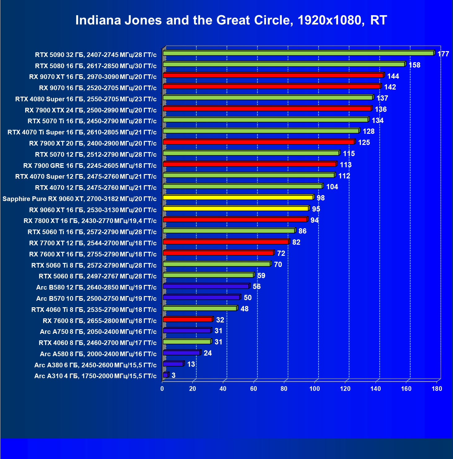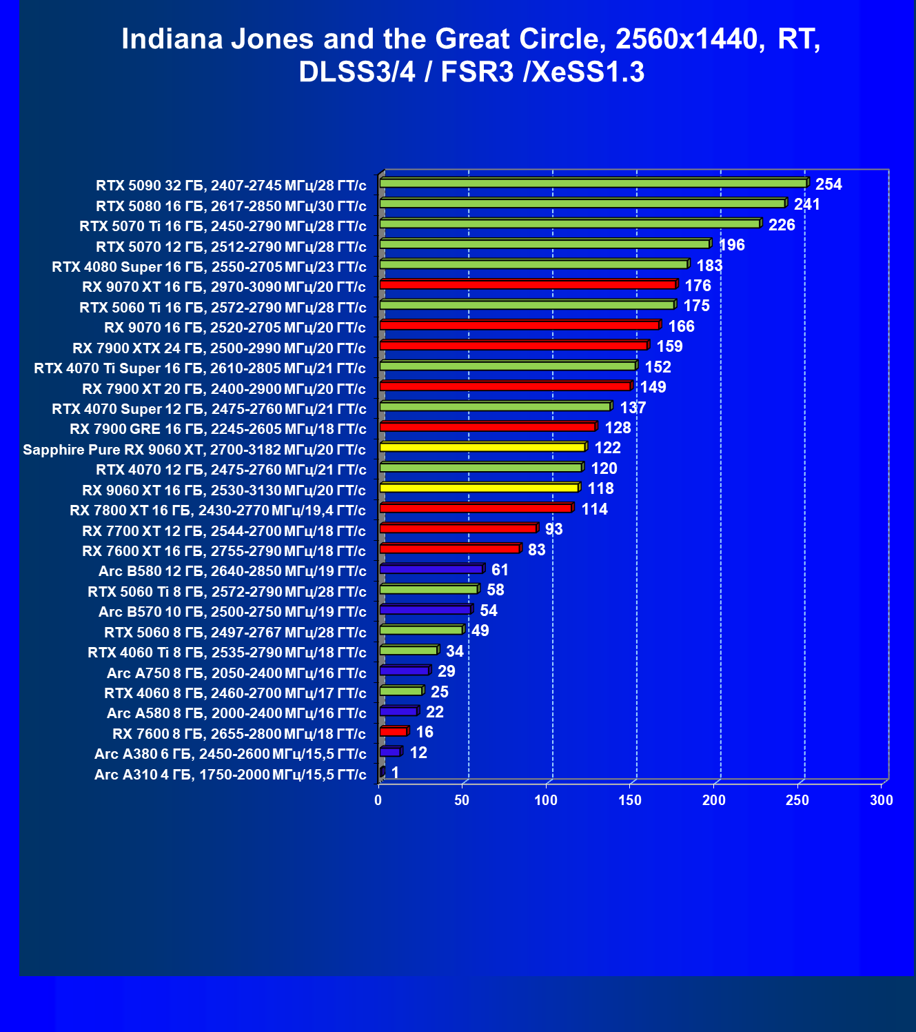 | 08 | Sapphire Pure RX 9060 XT, 2700—3182 МГц/20 ГТ/с | 312 | 1341 | 43 000 |