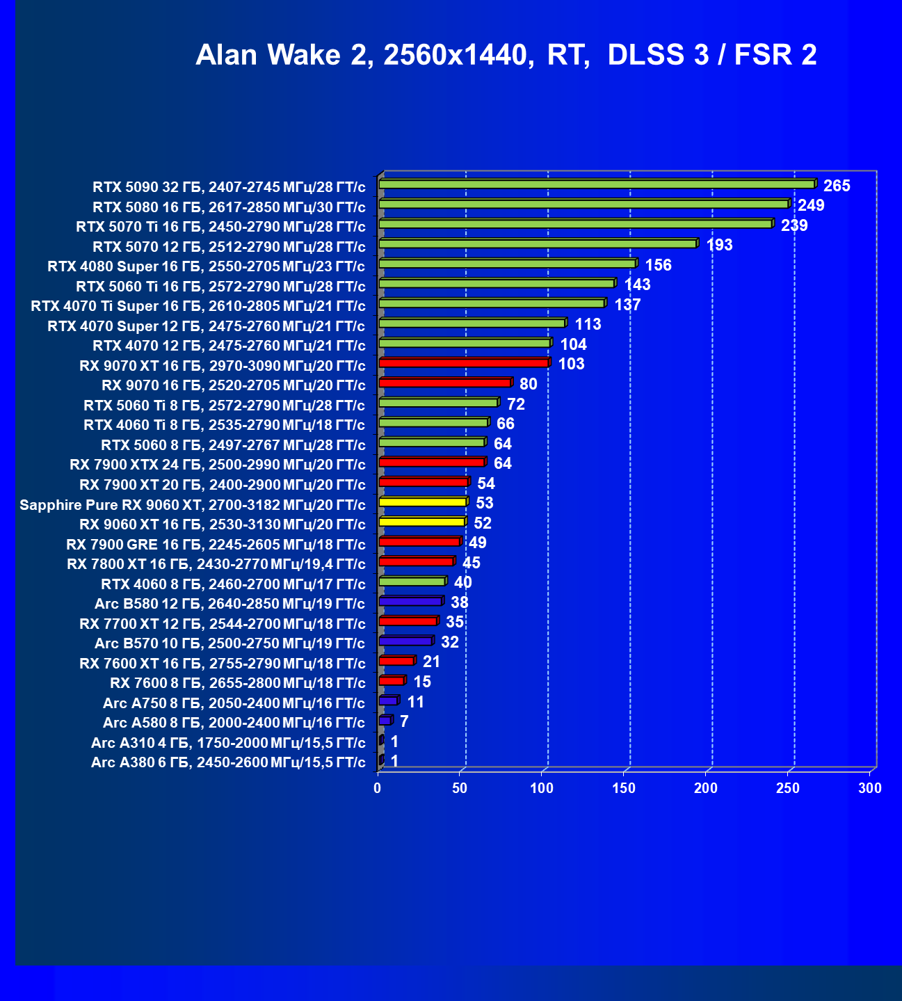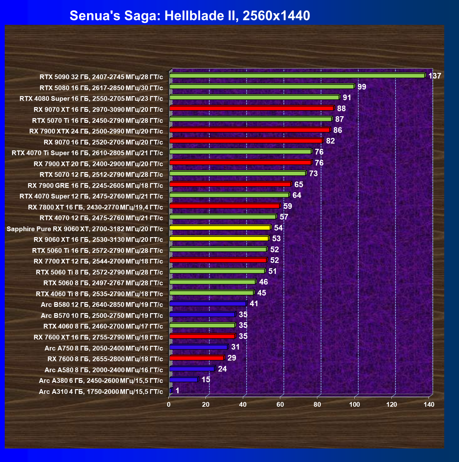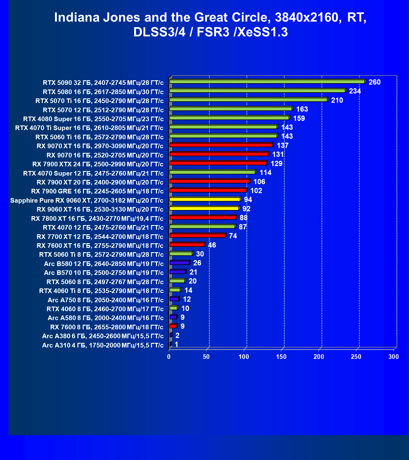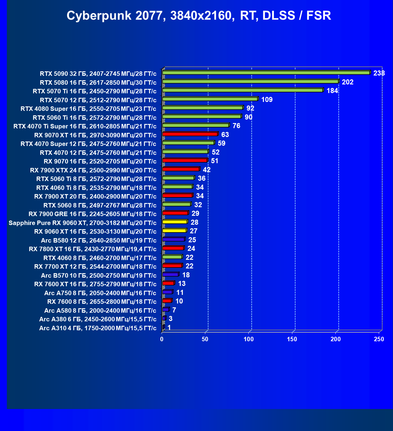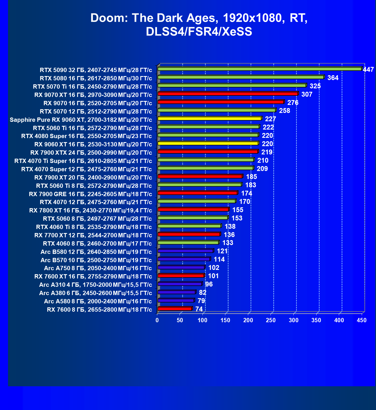 | 08 | Sapphire Pure RX 9060 XT, 2700—3182 МГц/20 ГТ/с | 312 | 1341 | 43 000 |