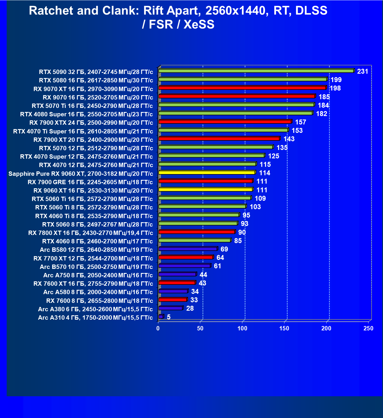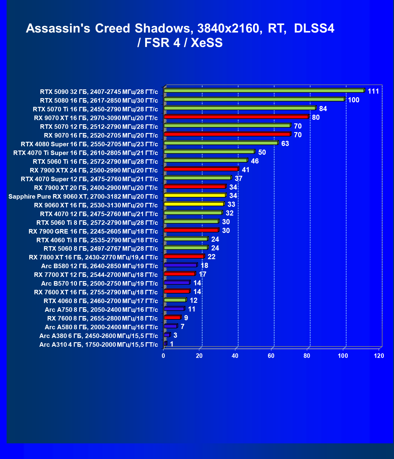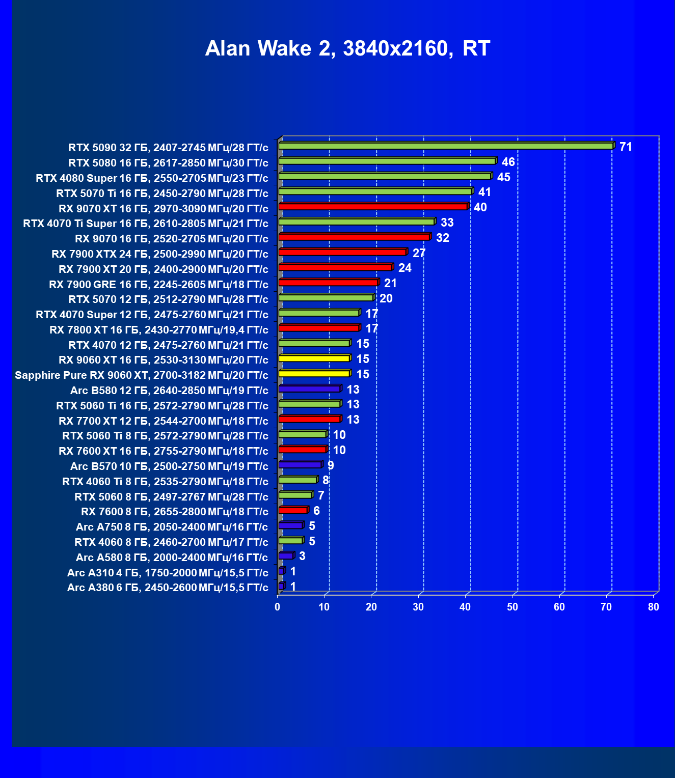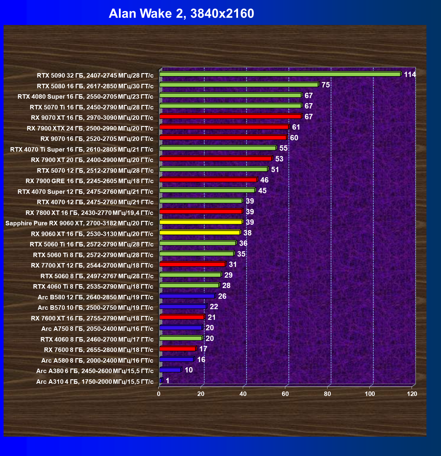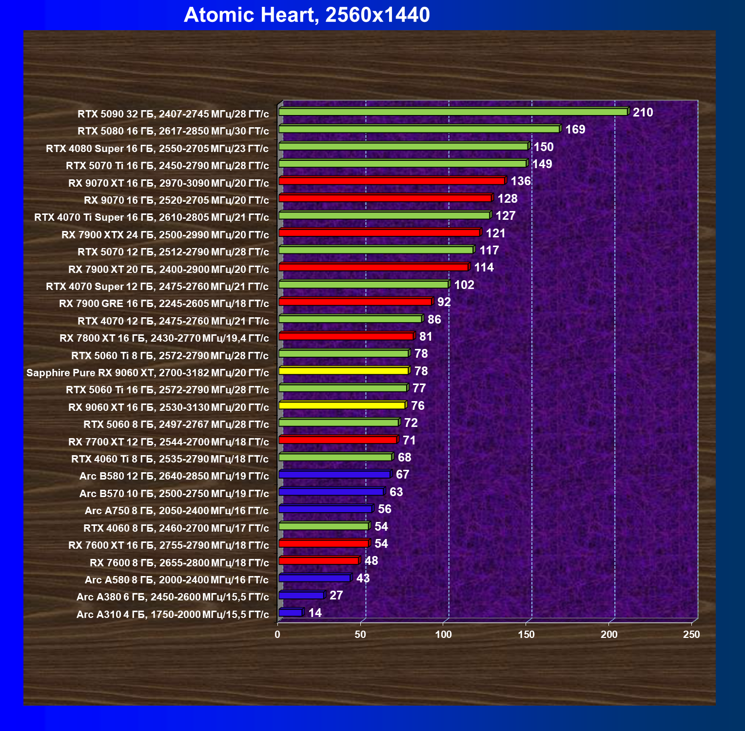 | 08 | Sapphire Pure RX 9060 XT, 2700—3182 МГц/20 ГТ/с | 312 | 1341 | 43 000 |
