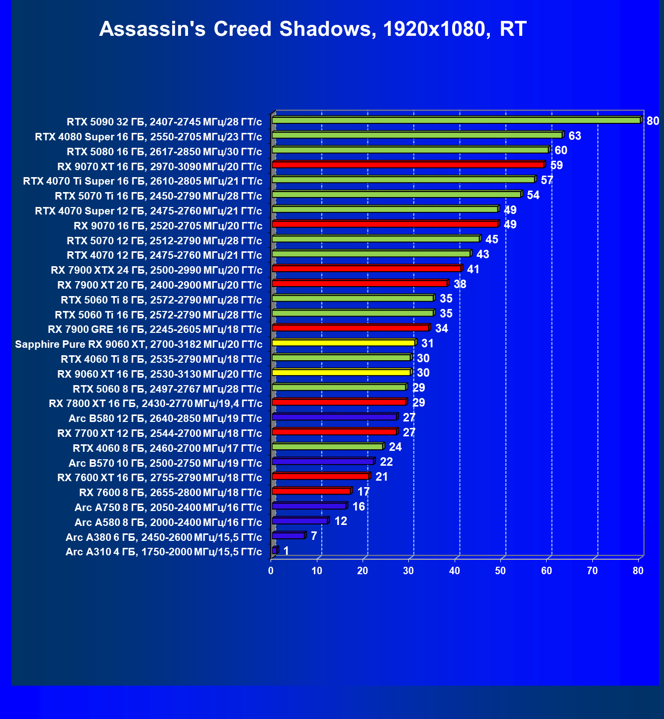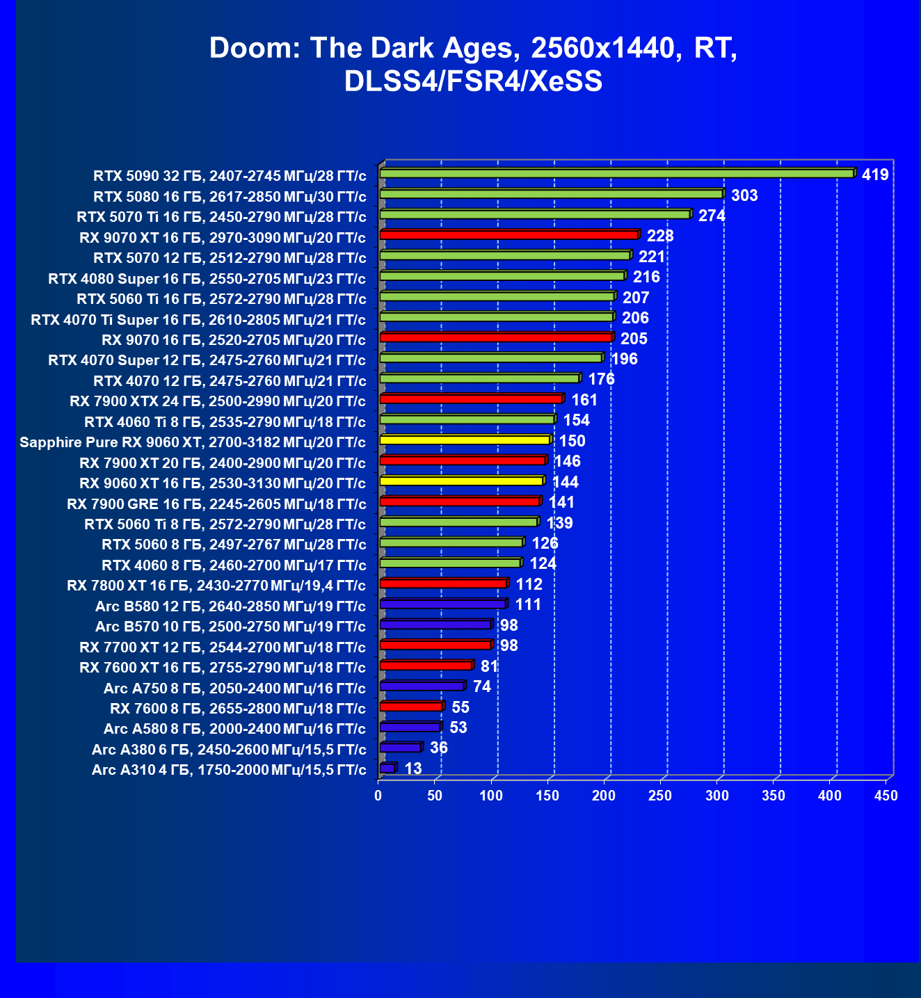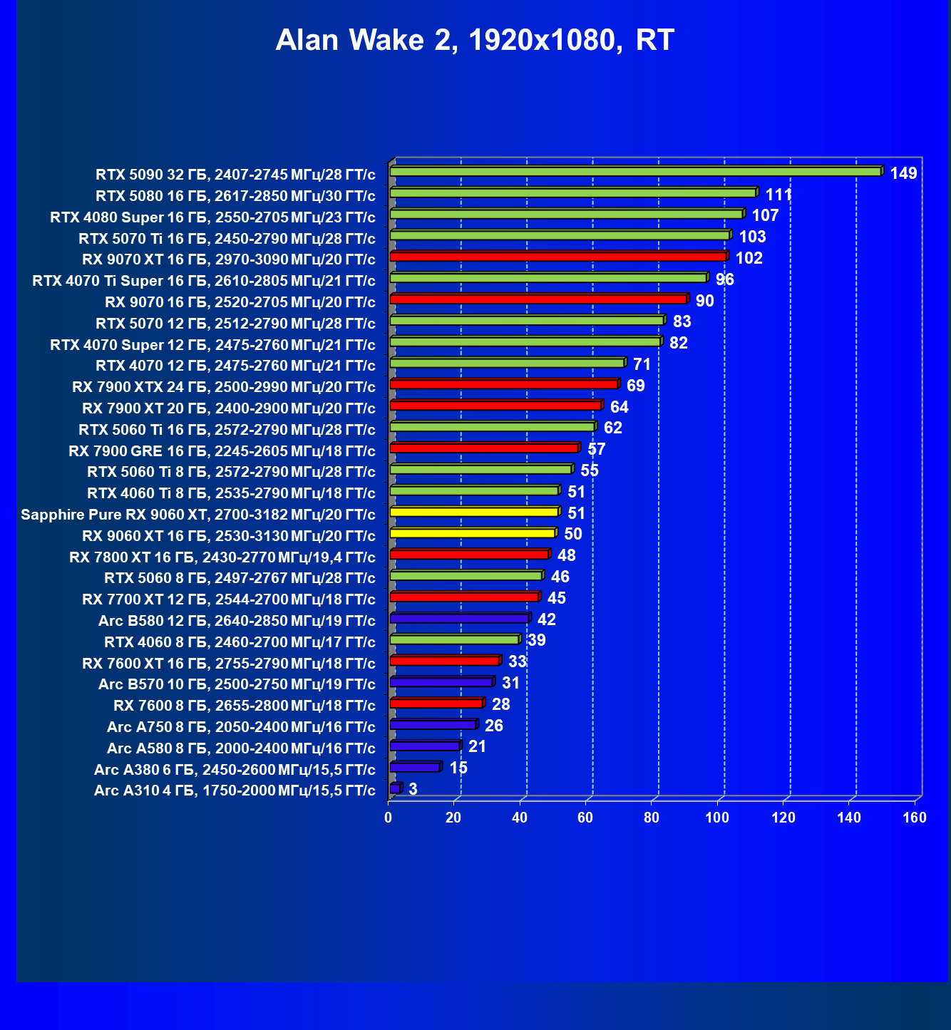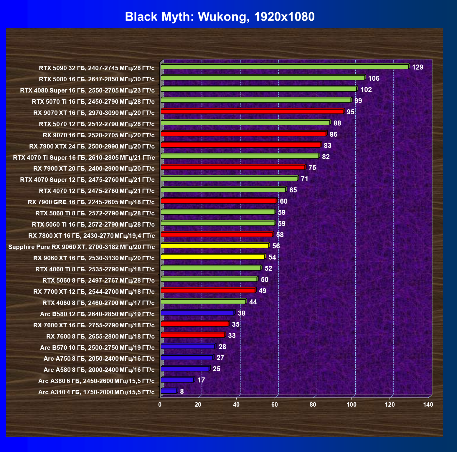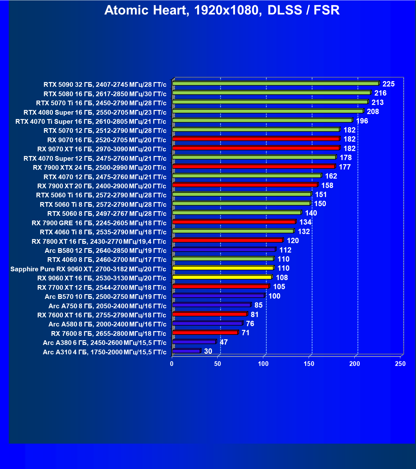 | 08 | Sapphire Pure RX 9060 XT, 2700—3182 МГц/20 ГТ/с | 312 | 1341 | 43 000 |