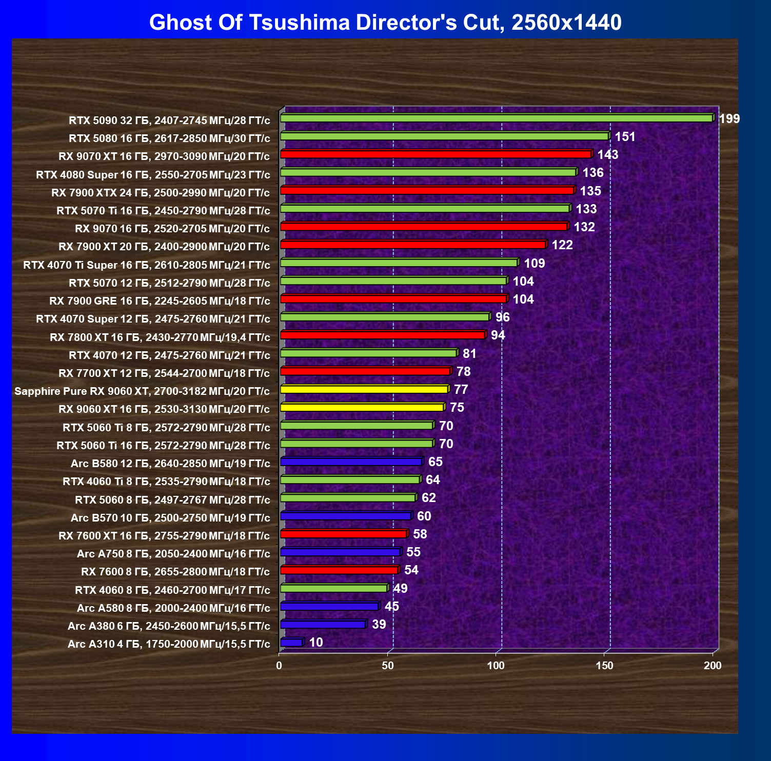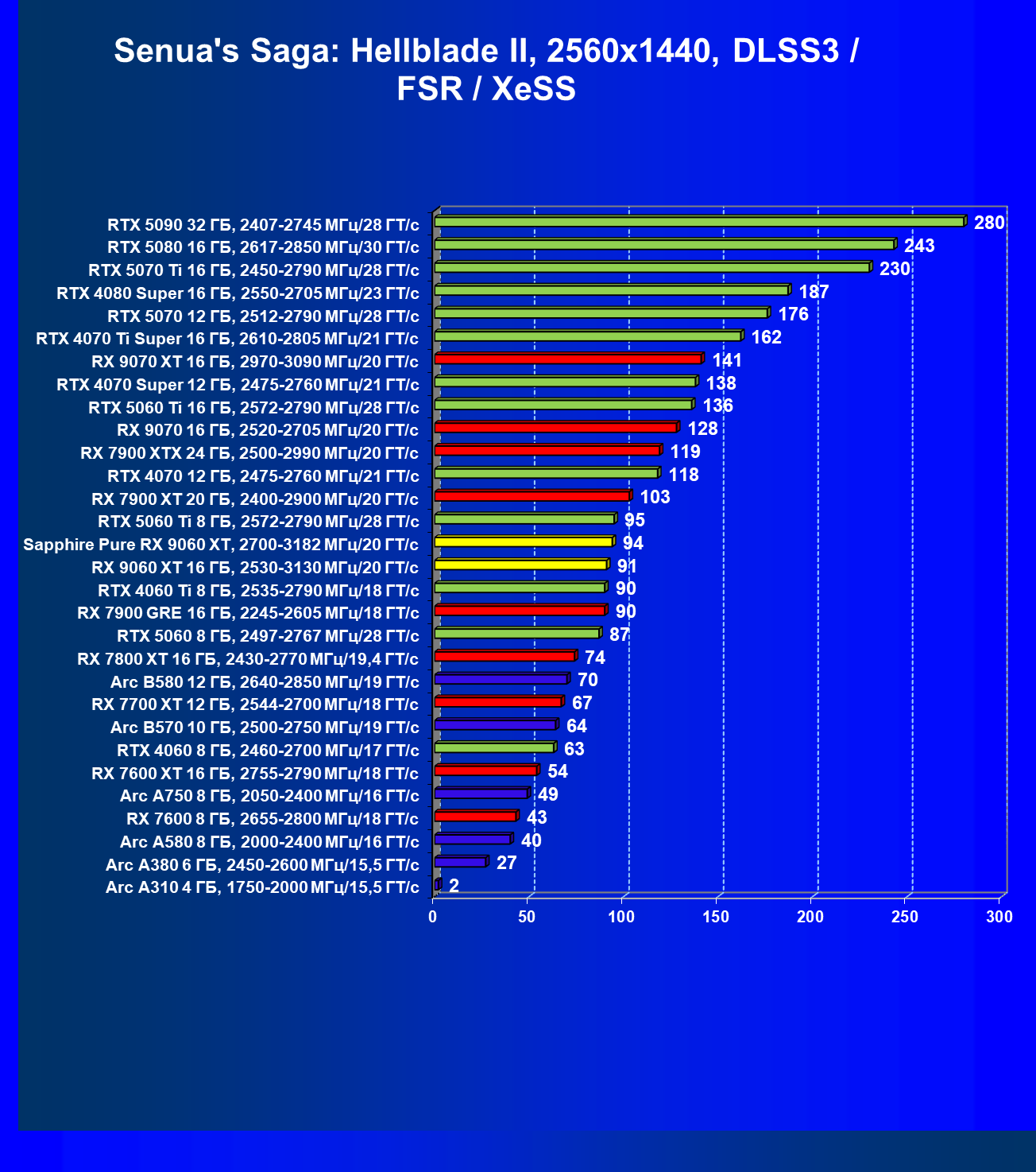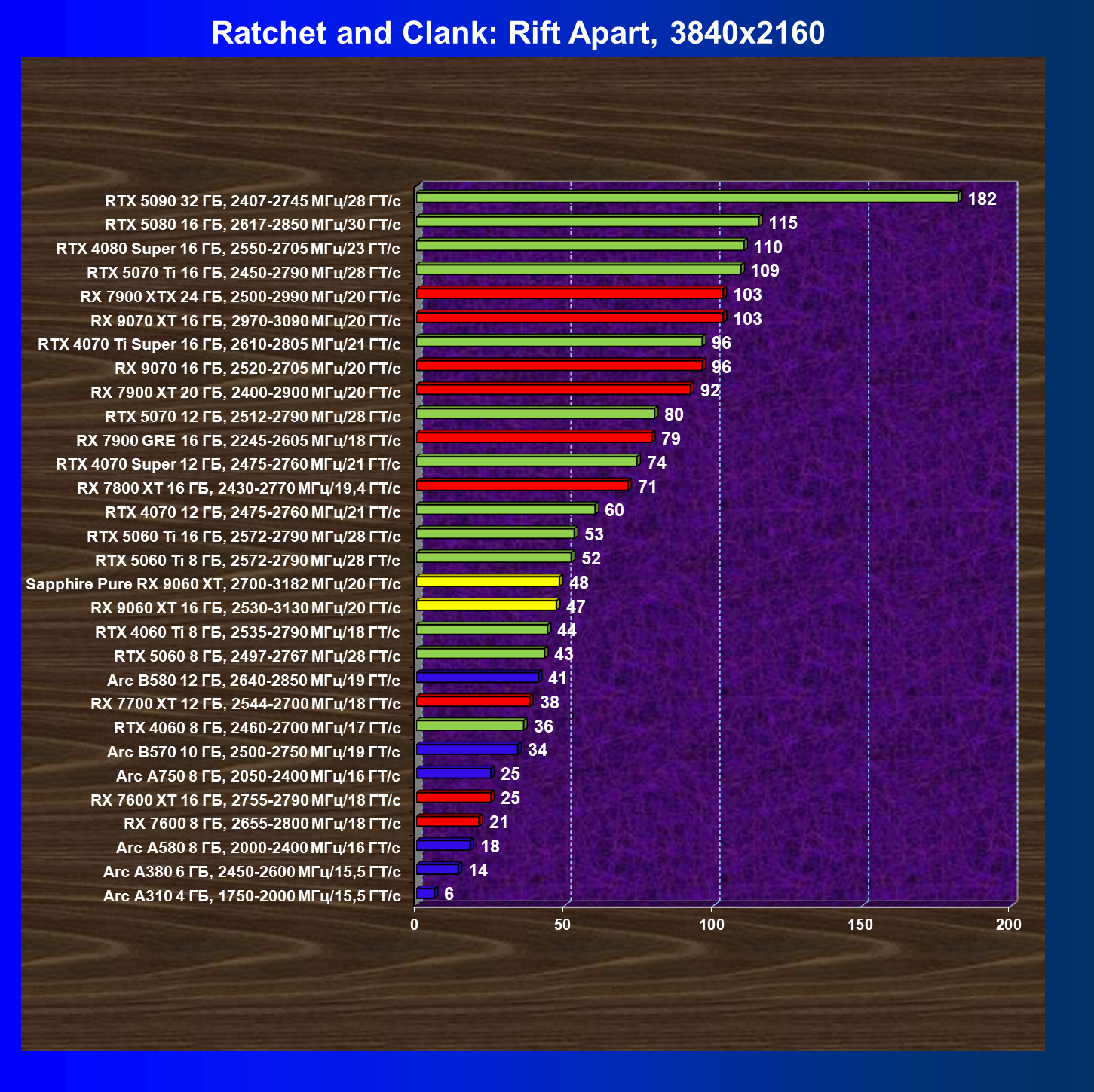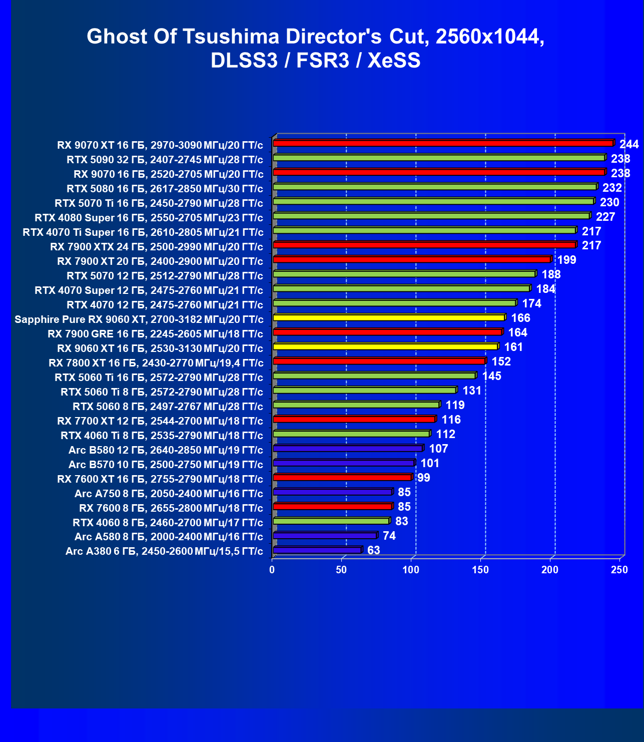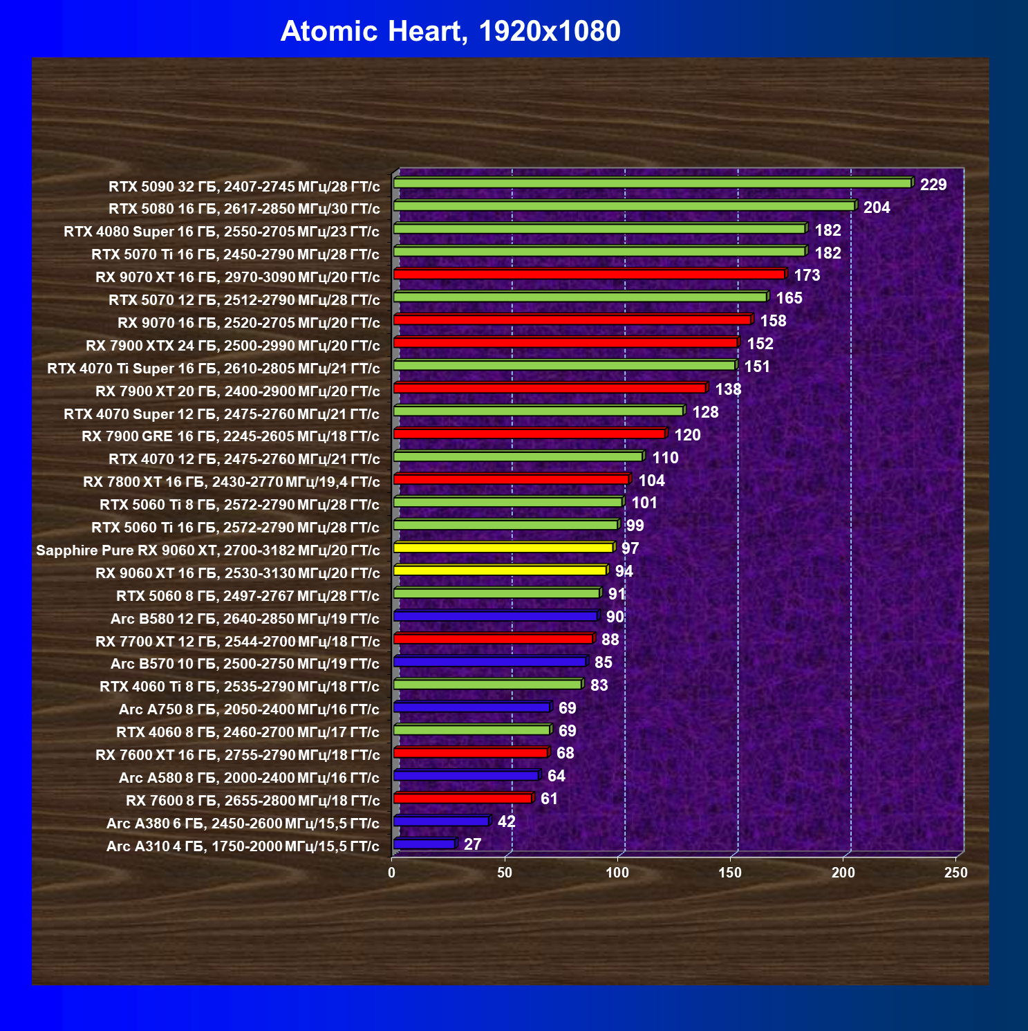 | 08 | Sapphire Pure RX 9060 XT, 2700—3182 МГц/20 ГТ/с | 312 | 1341 | 43 000 |