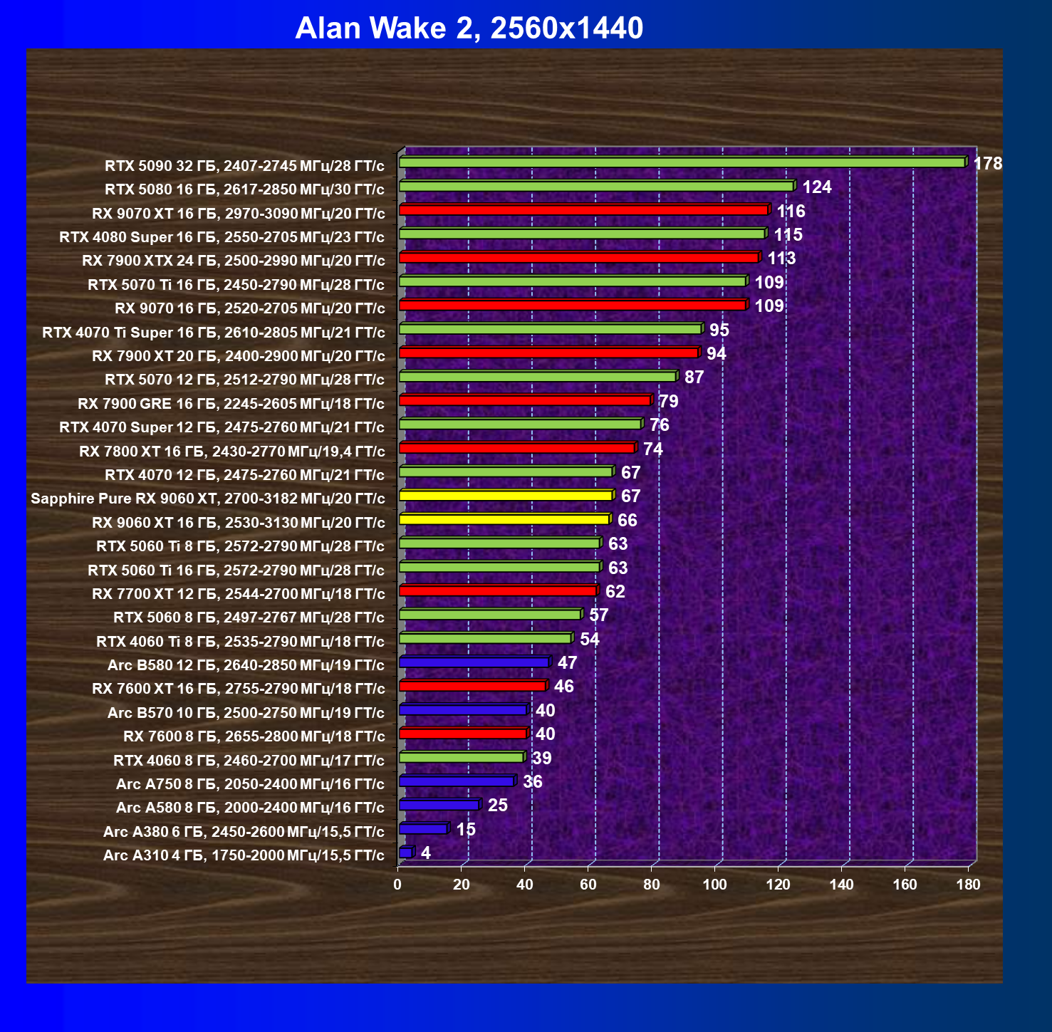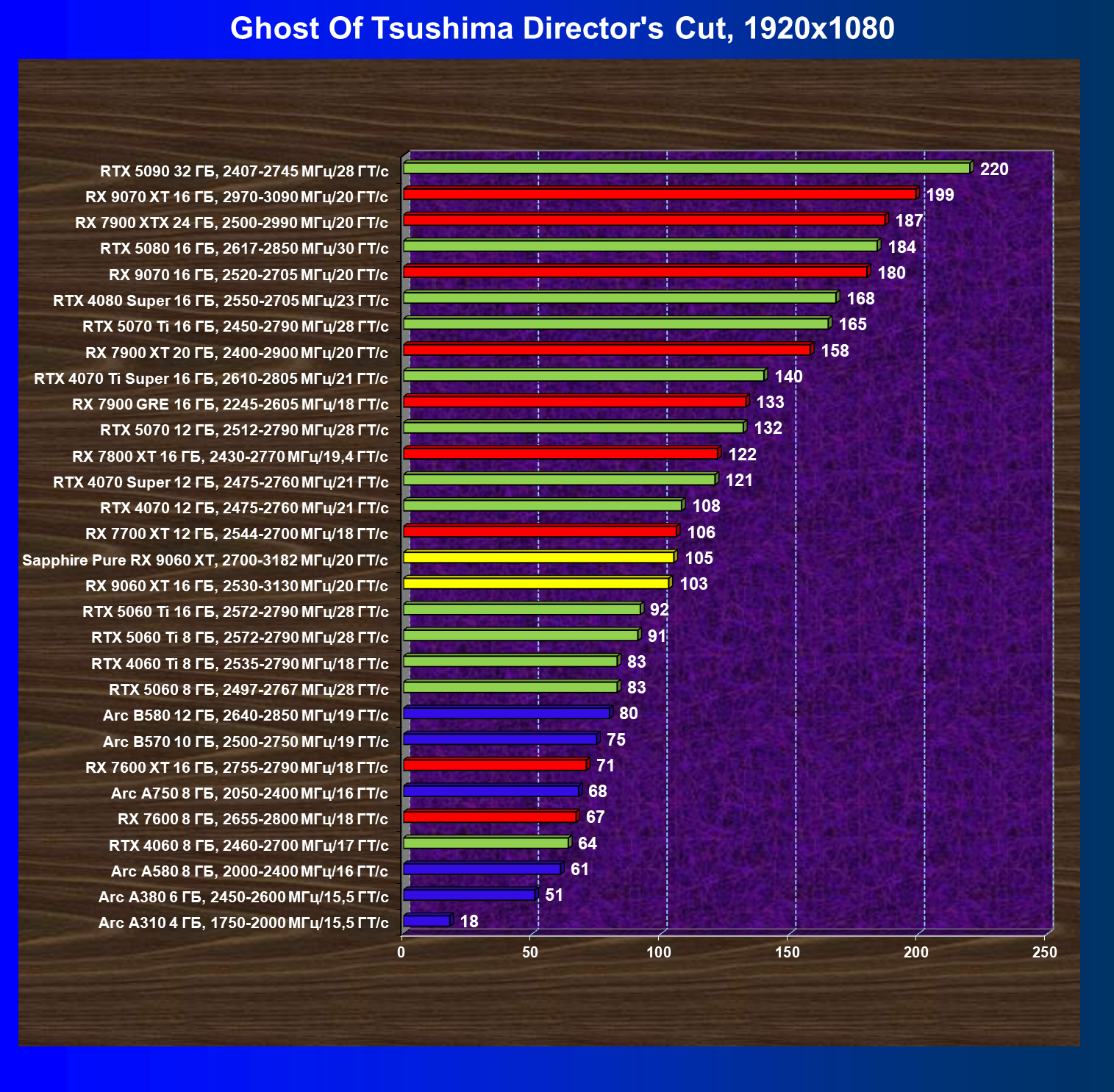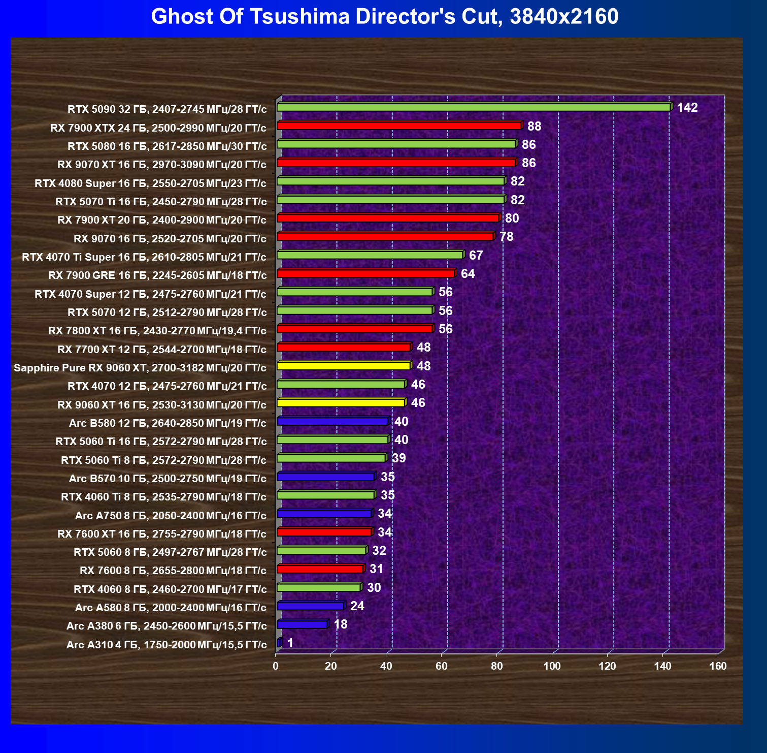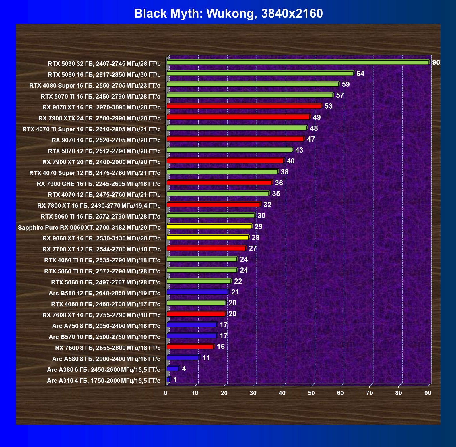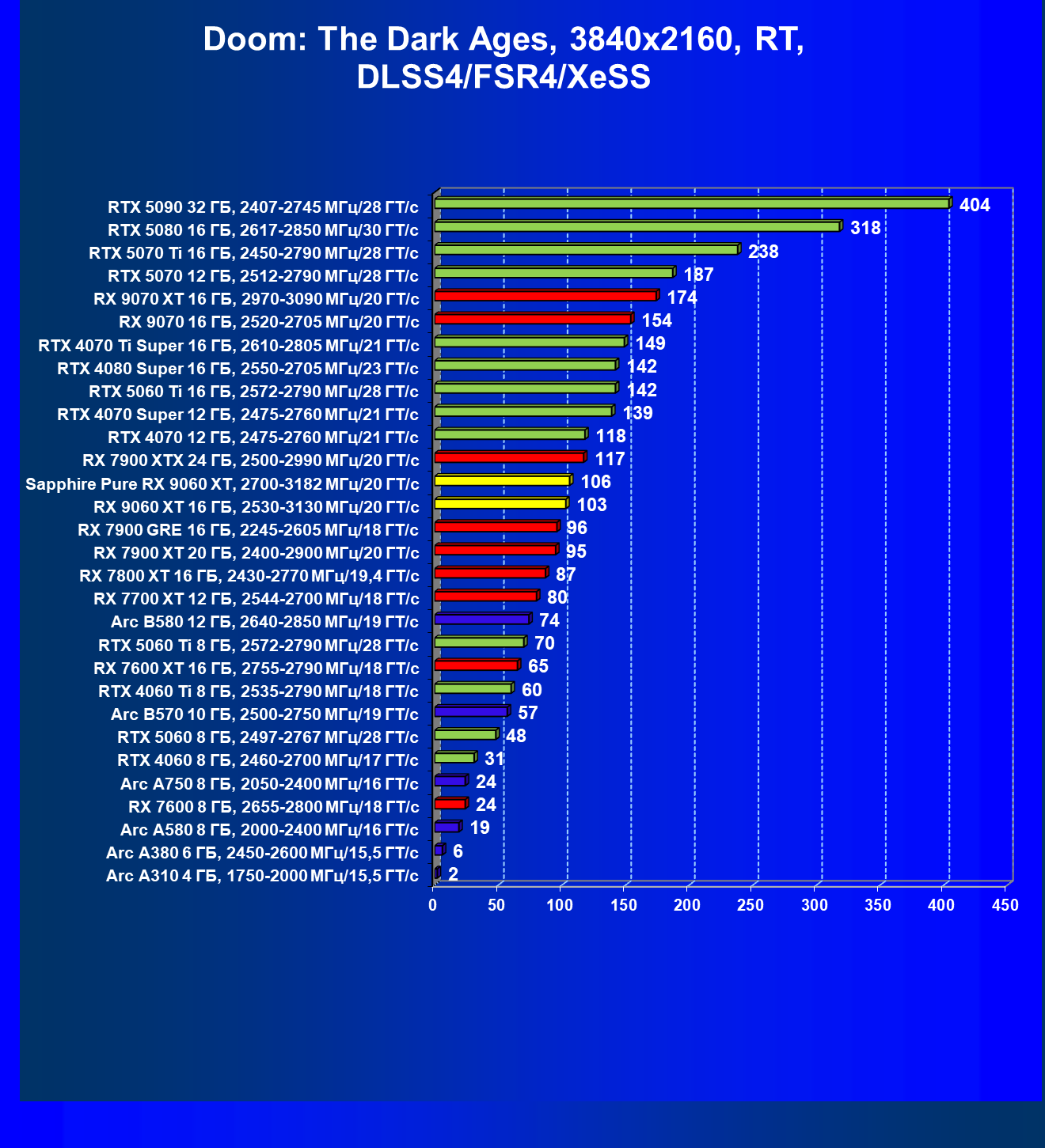 | 08 | Sapphire Pure RX 9060 XT, 2700—3182 МГц/20 ГТ/с | 312 | 1341 | 43 000 |
