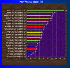 В данном случае ситуация уже несколько иная: вариант RTX 5060 Ti с 16 ГБ резко вышел вперед (понятно, что за счет поддержки и эффективного использования MFG в рамках DLSS4), и RX 9060 XT (16 ГБ) смог продемонстрировать в среднем производительность на уровне уже RTX 5060 Ti с 8 ГБ (который чуть дешевле). Остальные выводы аналогичным предыдущим.