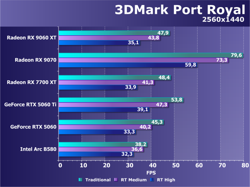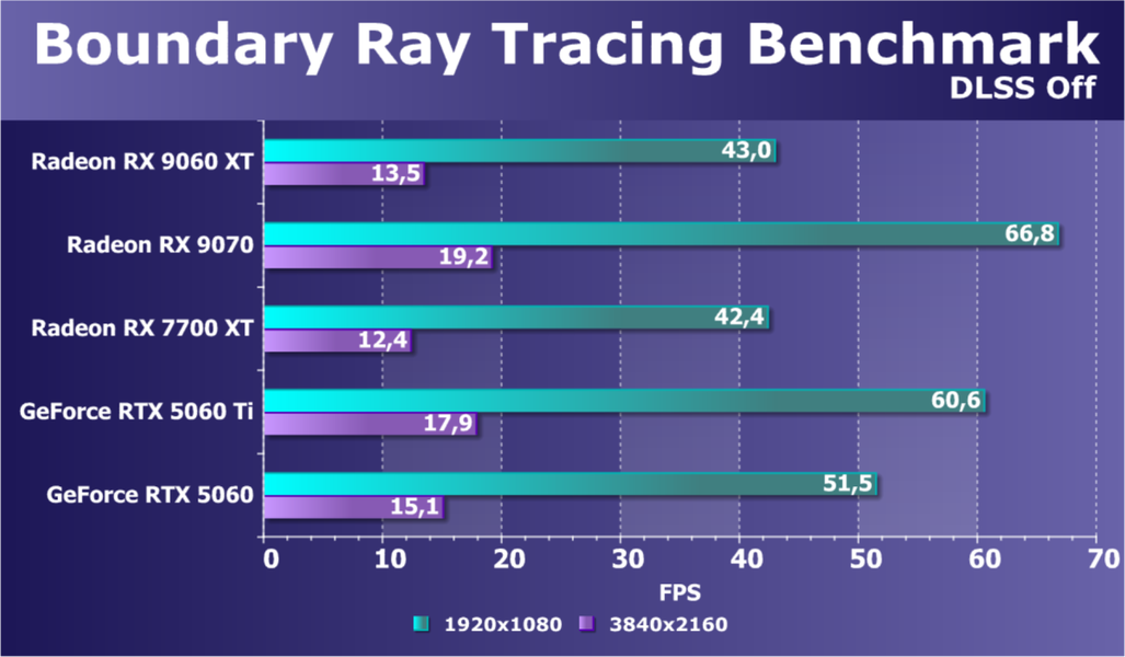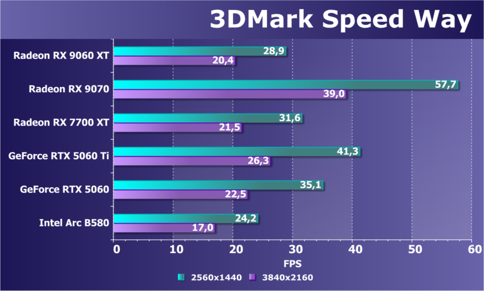 Еще раз отметим, что в классических играх производительность Radeon RX 9060 XT позволяет получить высокий уровень комфорта в играх на максимальных настройках качества в разрешении 1080p (Full HD), во многих играх можно хорошо поиграть и в разрешении 1440p (2.5K). Использование трассировки лучей надо обязательно сочетать с технологиями динамического масштабирования, и в таком случае можно получить высокую играбельность в 1080p, а в ряде случаев и в 1440p.