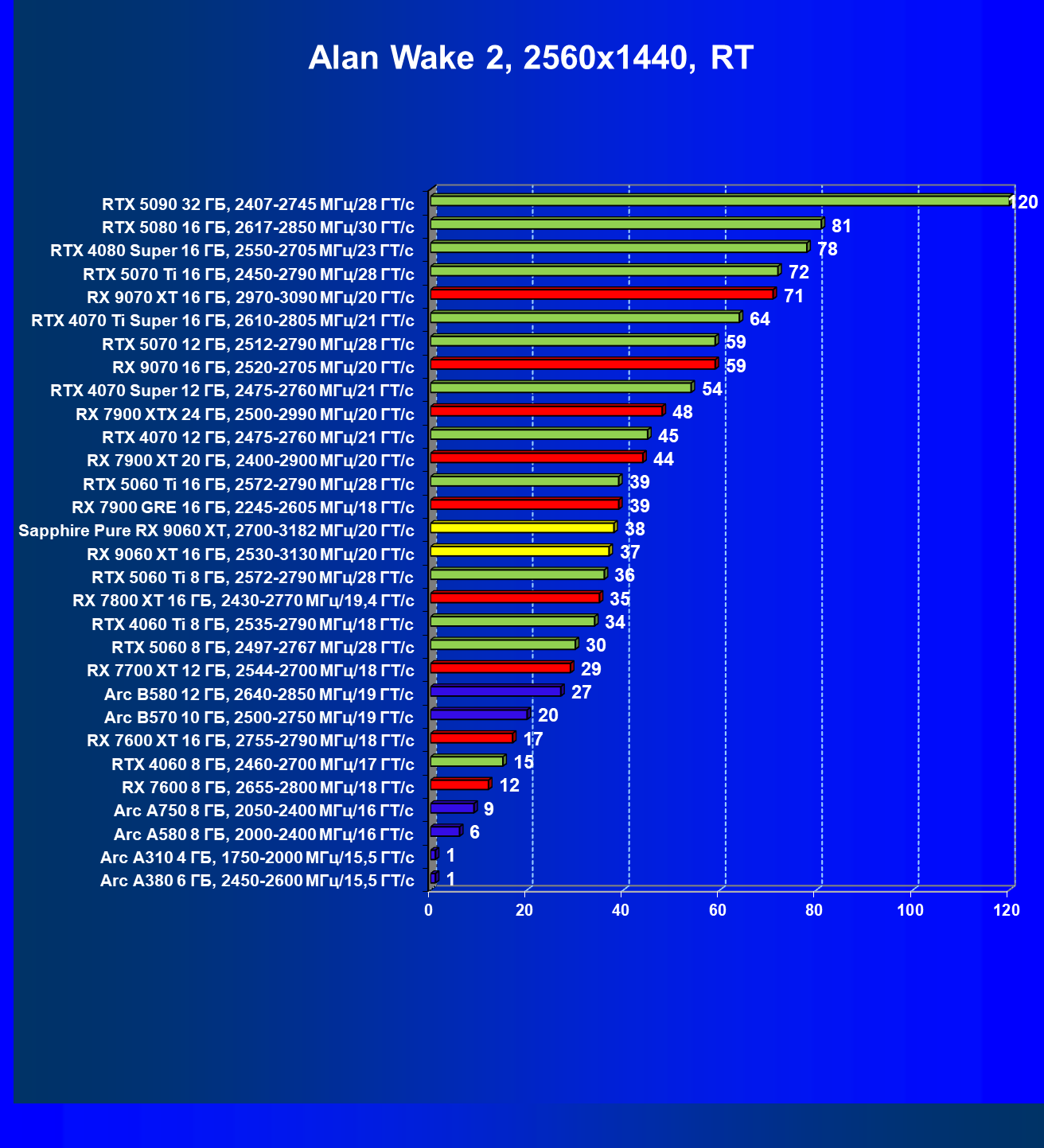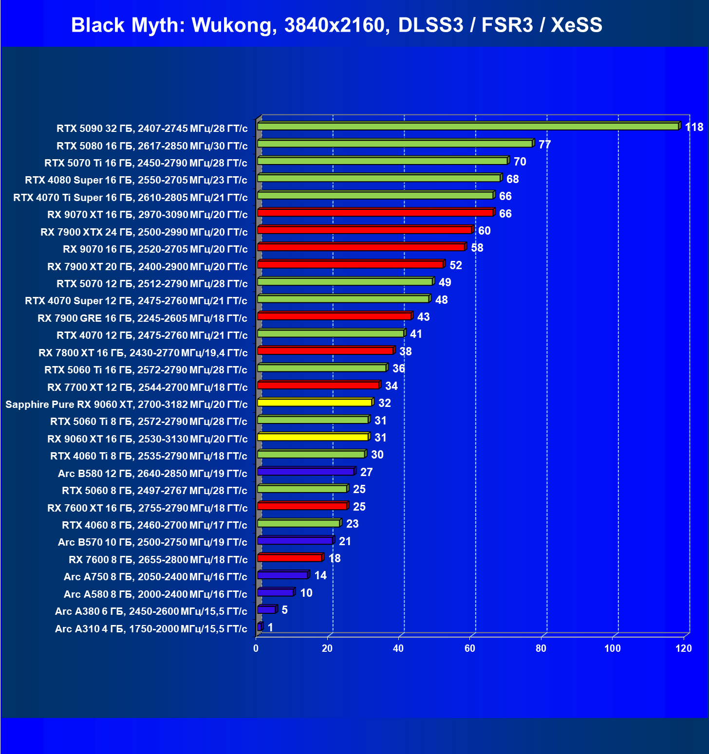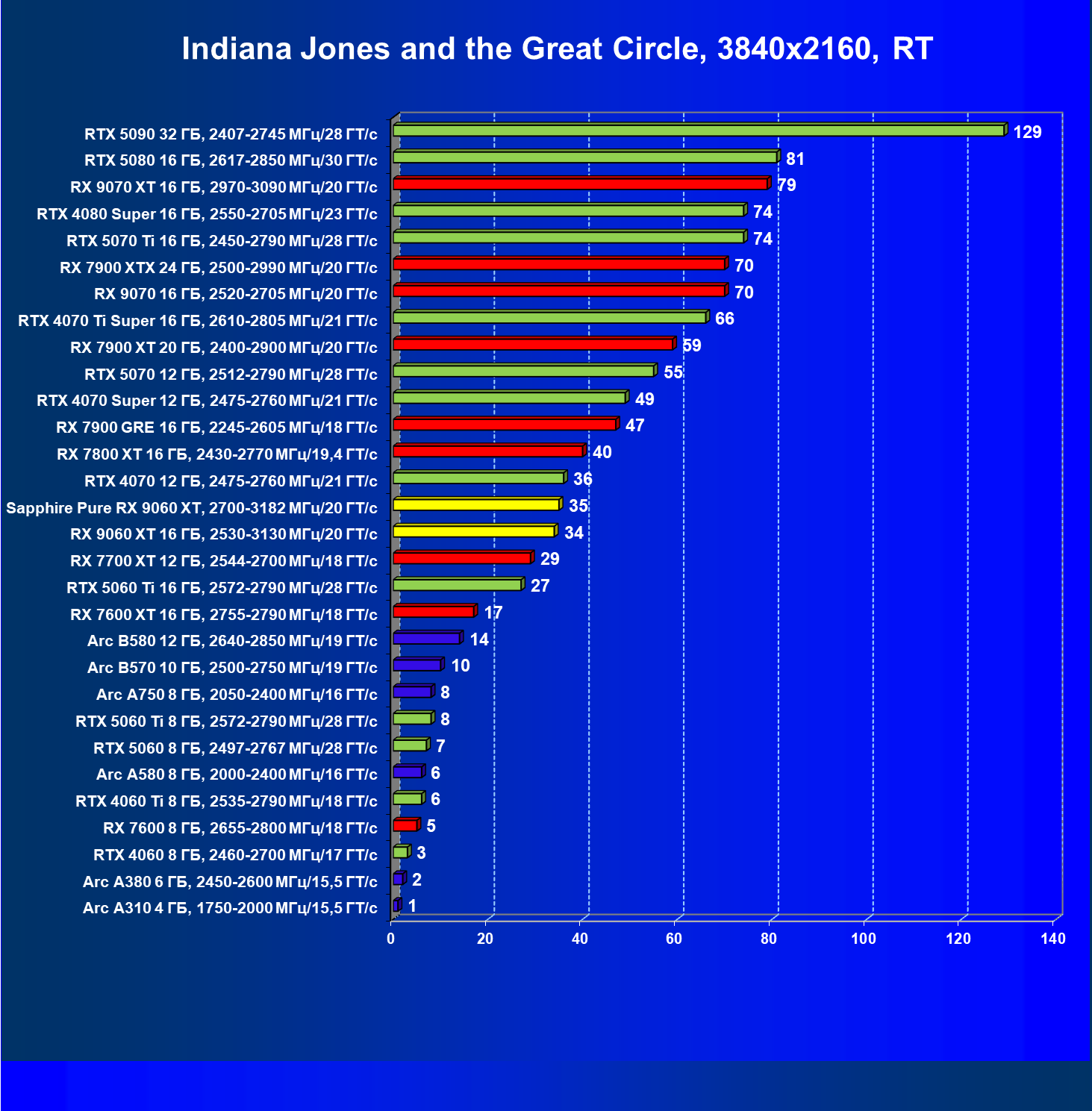 | 09 | RX 9060 XT 16 ГБ, 2530—3130 МГц/20 ГТ/с | 554 | 2328 | 42 000 |