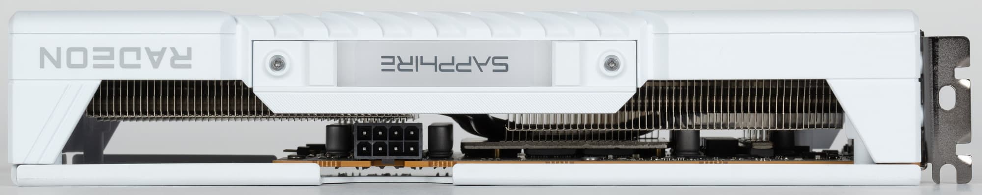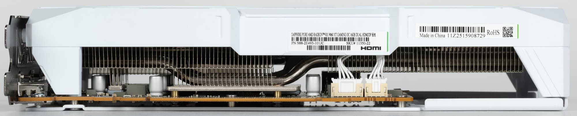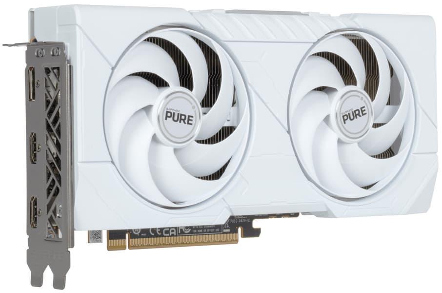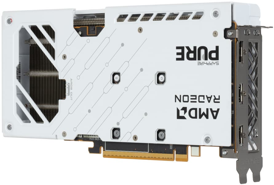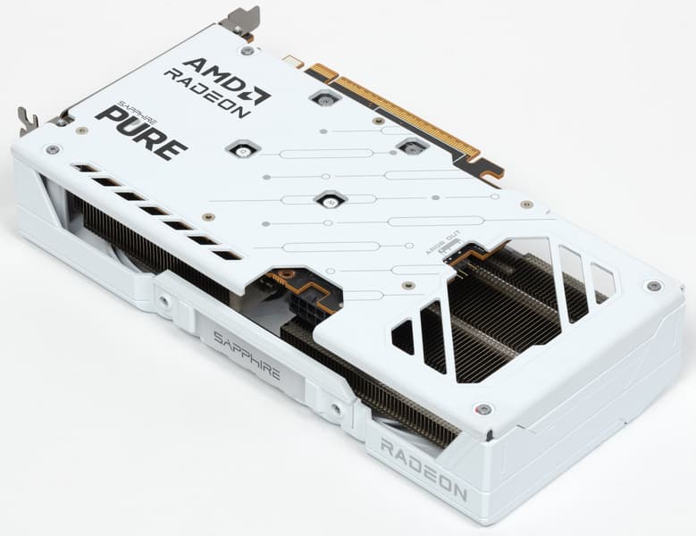Конкретная протестированная карта Sapphire Pure Radeon RX 9060 XT (16 ГБ) имеет адекватные для решений такого уровня размеры 24×13 см, но занимает 3 слота в системном блоке. Использованная СО очень тихая. Карта может потреблять до 170 Вт (официальный лимит AMD — 175 Вт) и имеет один 8-контактный разъем питания. У нее 3 видеовыхода: 2 HDMI 2.1b и 1 DisplayPort 2.1b — последний обеспечивает пропускную способность до 80 Гбит/с в режиме передачи UHBR 20 и позволяет подключить 8K-дисплей с частотой обновления 60 Гц по одному кабелю.