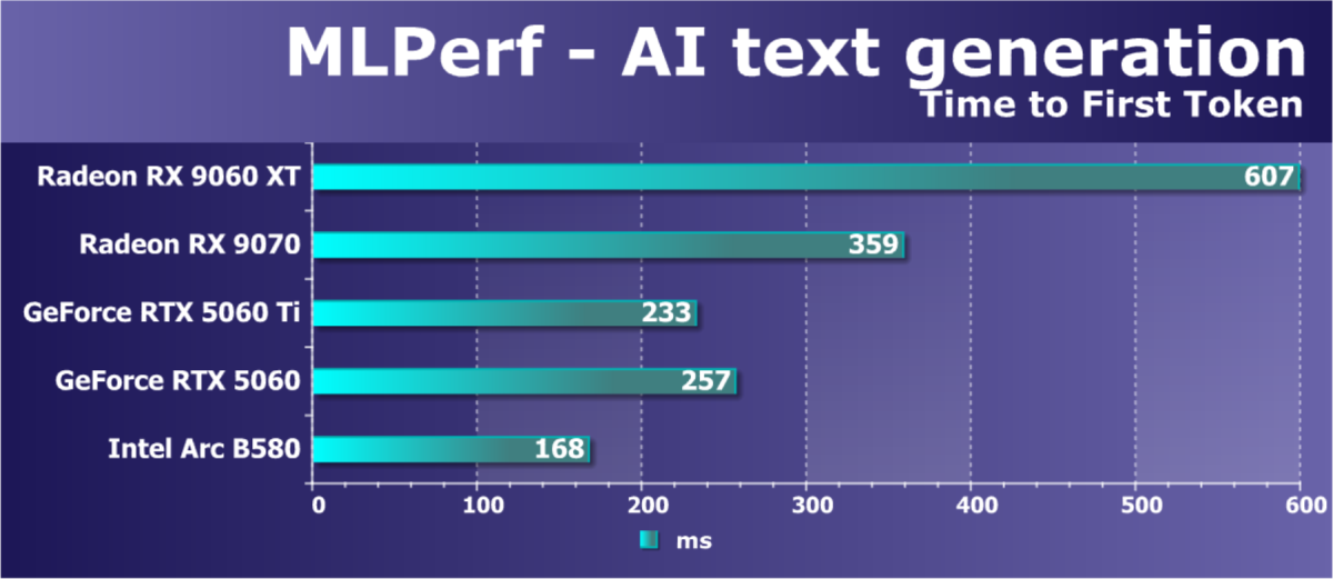 Рекомендованная цена двух конфигураций Radeon RX 9060 XT с разным объемом памяти составляет $299 и $349, что отличается от рекомендованной цены Radeon RX 7600 XT на старте — $329. Более того, хотя основным ценовым конкурентом Radeon RX 9060 XT является GeForce RTX 5060 Ti, но лишь в младшей конфигурации с 8 ГБ памяти ($379), так как старшая модель Nvidia оценена ей в $429. Но сейчас рекомендованные розничные цены не особо важны, так как реальные всегда выше, хотя в случае недорогих решений доплата не так высока. На нашем рынке превышение розницы над рекомендованными ценами у Radeon RX 9060 XT несколько выше относительно GeForce RTX 5060 Ti, и экономия по сравнению с решениями Nvidia получается не такая высокая. Попадается также в продаже и еще один конкурент — Intel Arc B580, который продается дешевле, и он всё же ближе по цене и производительности к GeForce RTX 5060, а не к RTX 5060 Ti и Radeon RX 9060 XT.