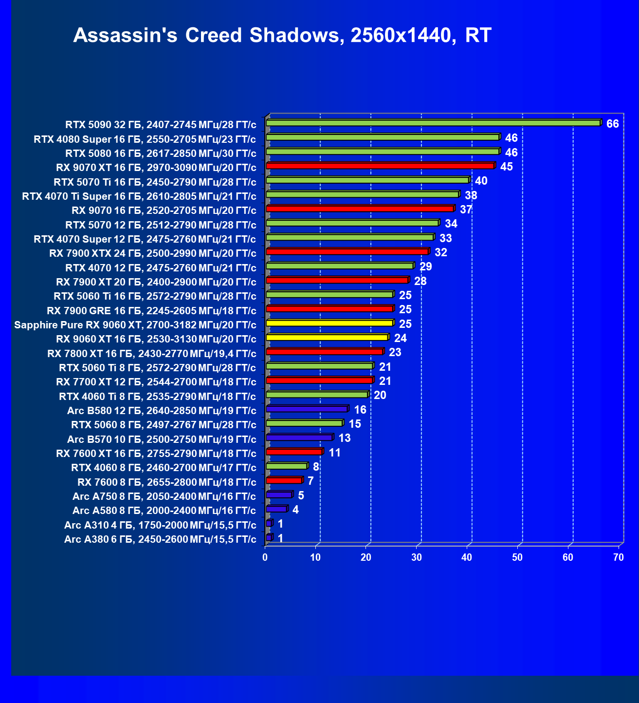 | 22 | Arc B580 12 ГБ, 2640—2850 МГц/19 ГТ/с | 1616 | 505 | 32 000 |
