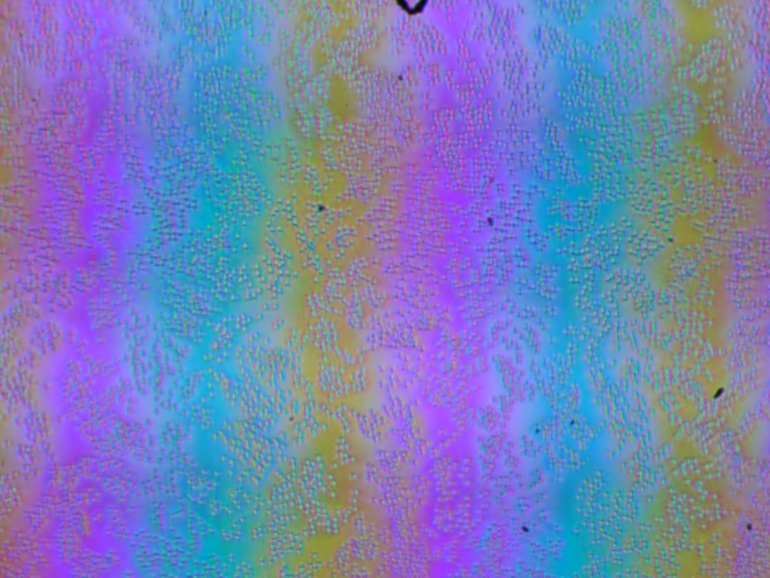 Зерно этих дефектов в несколько раз меньше размеров субпикселей, поэтому фокусировка на микродефектах и «перескок» фокуса по субпикселям при изменении угла зрения выражены слабо, из-за этого нет и «кристаллического» эффекта.