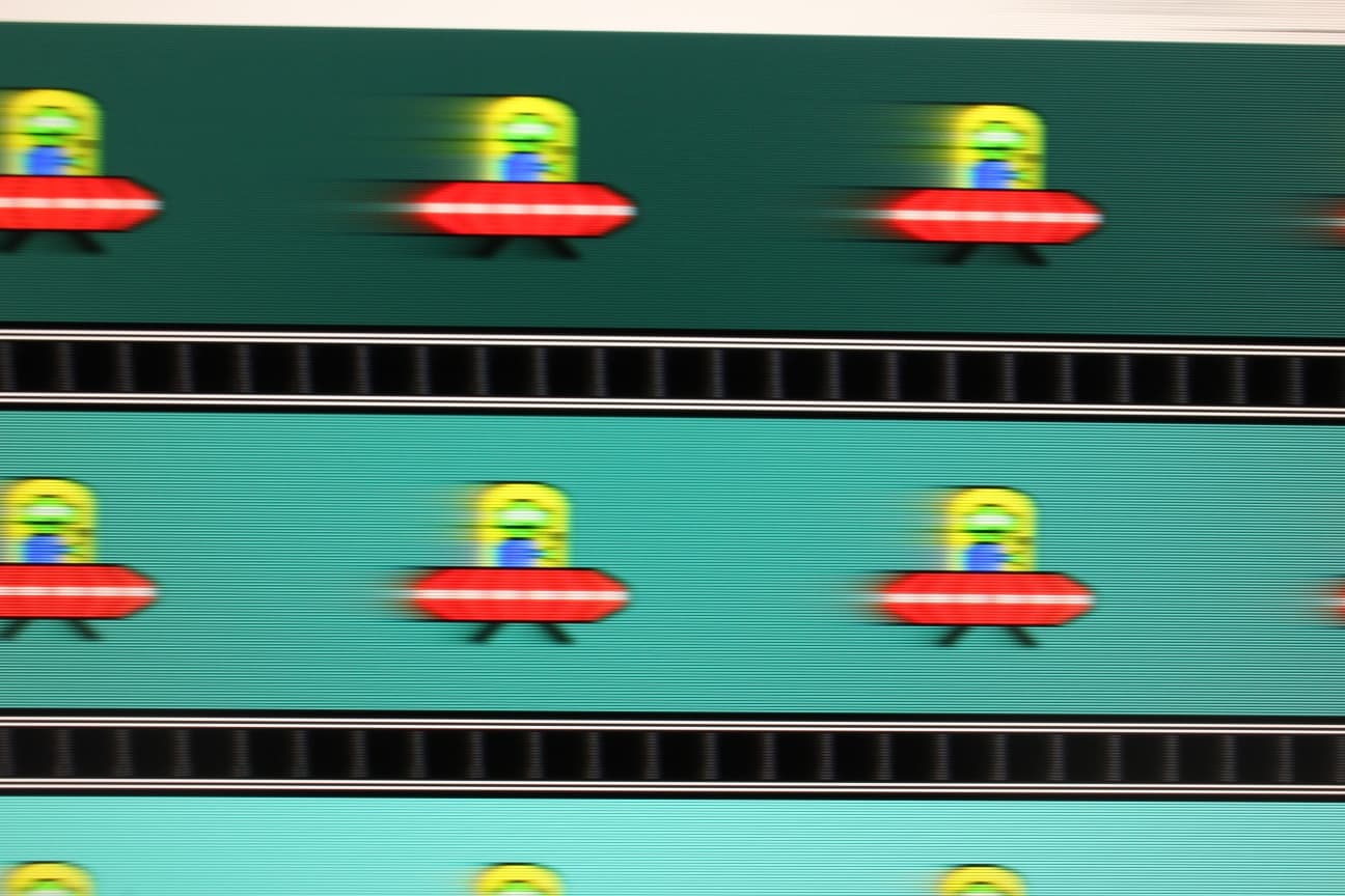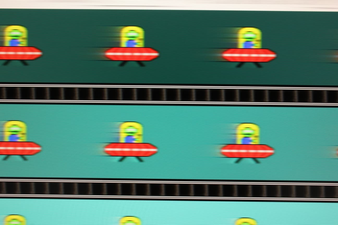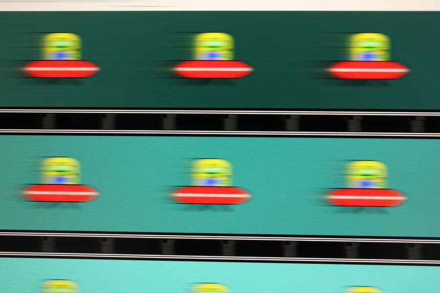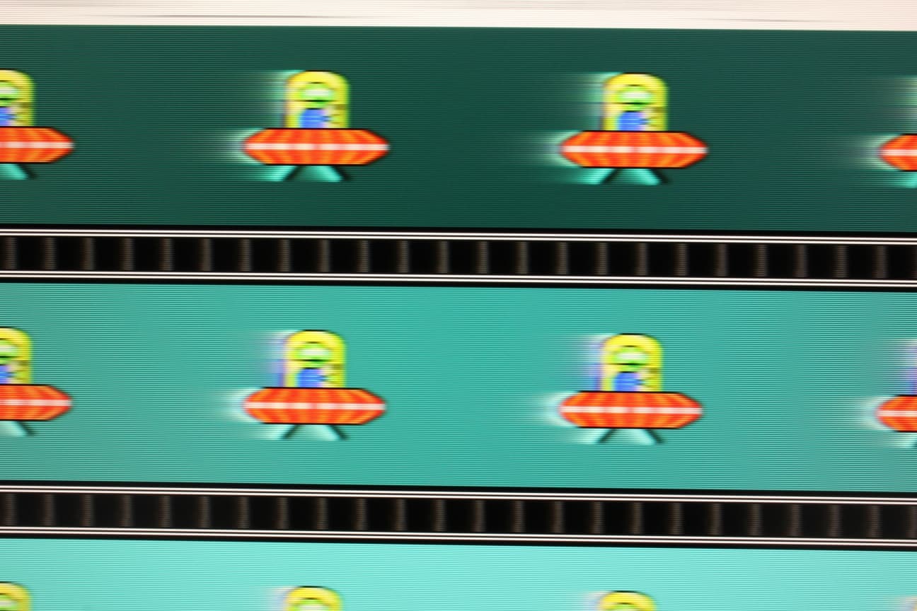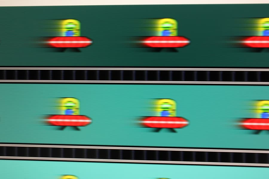 Для наглядного представления о том, что на практике означает такая скорость матрицы, приведем серию снимков, полученных с помощью движущейся камеры. Такие снимки показывают, что видит человек, если он следит глазами за двигающимся на экране объектом. Описание теста приведено тут, страница с самим тестом тут. Использовались рекомендованные установки (скорость движения 960 пиксель/с), выдержка 1/15 с, под фотографиями указаны частота обновления и значение настройки Разгон.