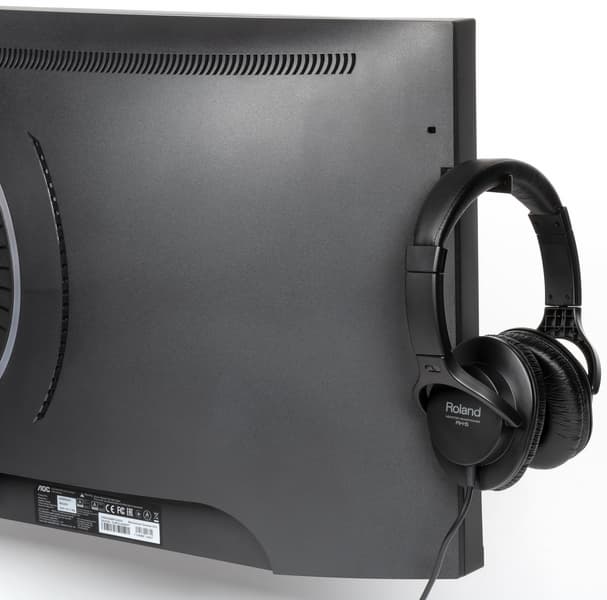 На задней панели можно обнаружить разъем для кенсингтонского замка, окошко датчика освещенности и близко к боковым торцам выдвижные крюки для наушников. Их пользователь может повесить справа или слева, так, как ему удобнее.