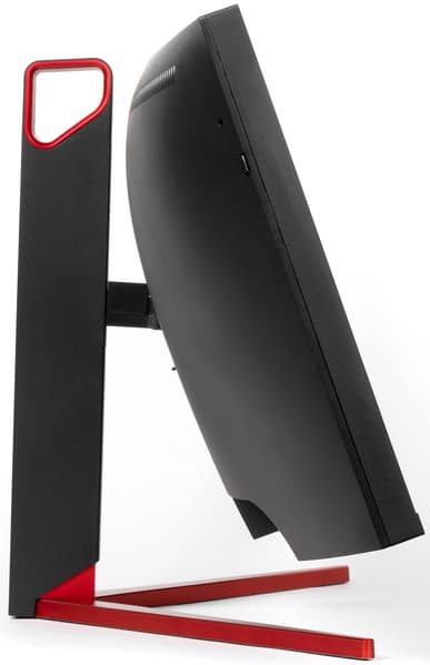 Монитор имеет сдержанно игровой дизайн. Панели блока экрана изготовлены из черного пластика в основном с матовой поверхностью. Внешняя поверхность матрицы черная, полуматовая (зеркальность хорошо выражена), внешний слой матрицы жесткий.