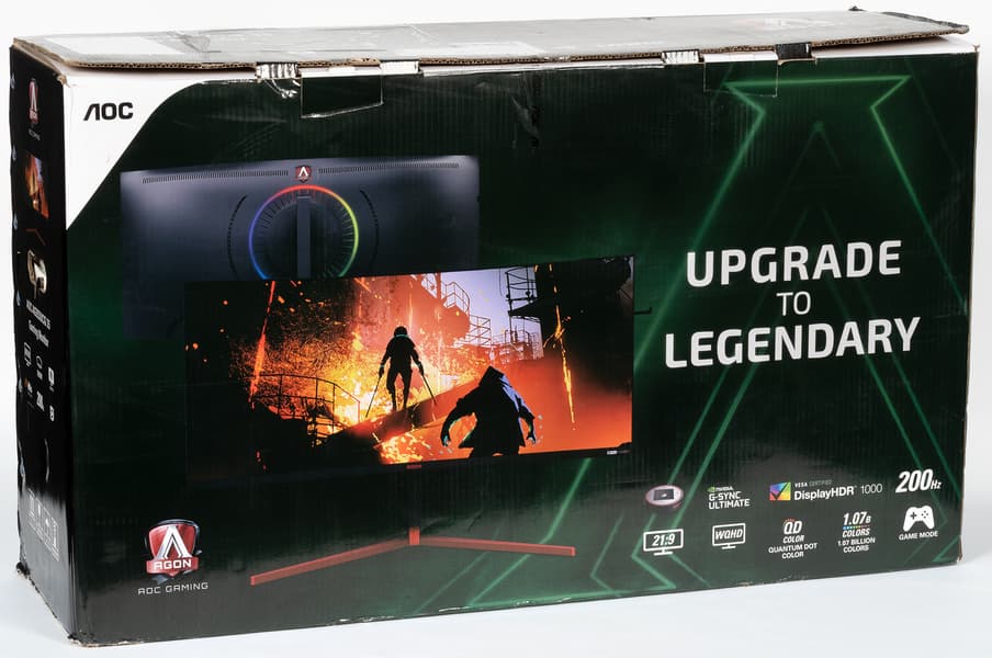 AOC Agon AG353UCG — это игровой монитор высшего класса. Он отличается большим изогнутым сверхширокоформатным экраном высокого разрешения и сдержанно игровым дизайном. Монитор украшает декоративная многоцветная и многозонная настраиваемая подсветка. Есть поддержка частоты обновления до 200 Гц включительно, Nvidia G-Sync Ultimate по входу DisplayPort и G-Sync Compatible по HDMI, а также отличная реализация HDR с высокой пиковой яркостью, зональным управлением яркостью и широким цветовым охватом. Отметим, что монитор получился узкоспециализированным игровым, так как постоянно работающий вентилятор и особенности цветопередачи могут быть значимыми недостатками в других случаях. Далее списками: