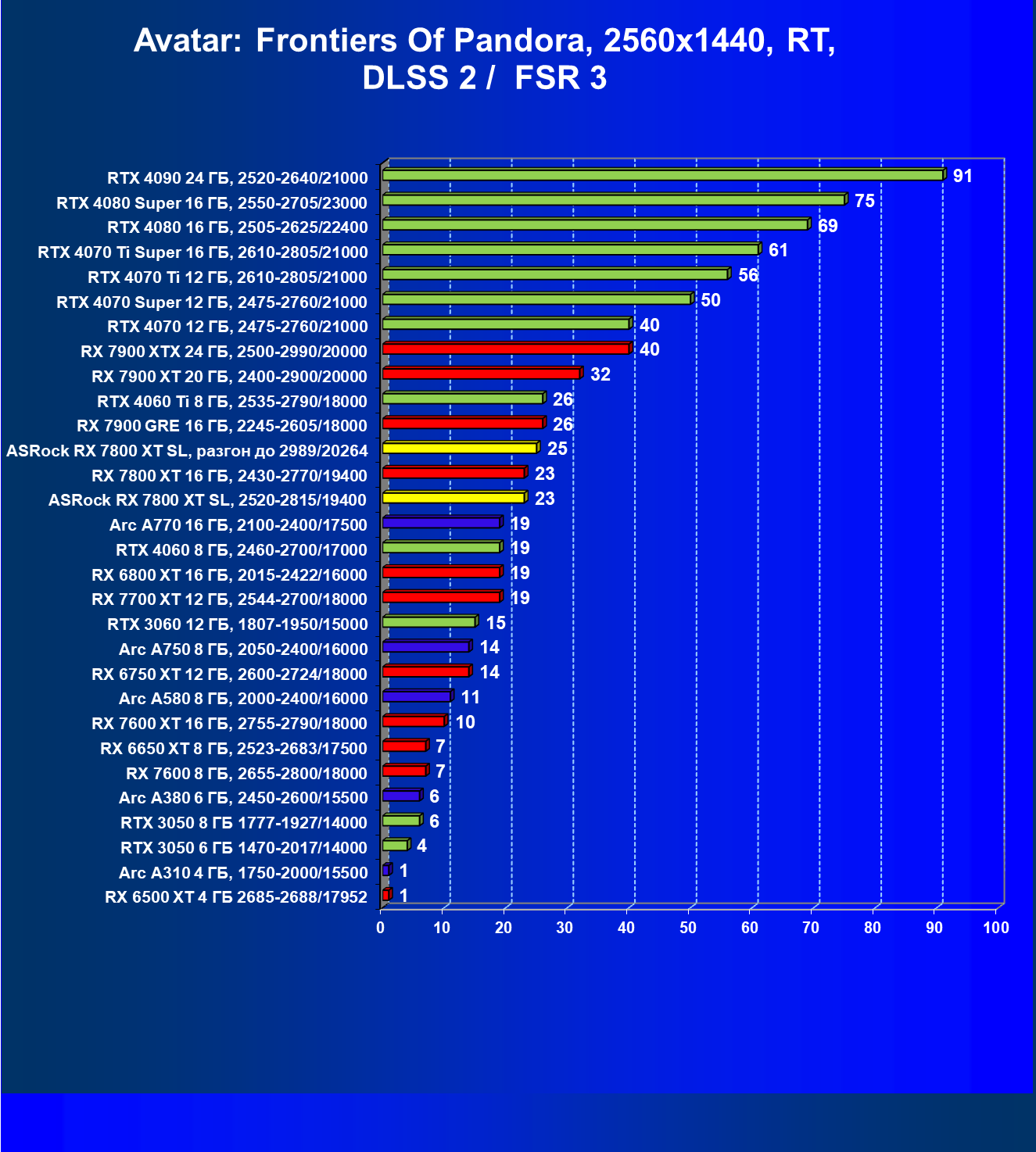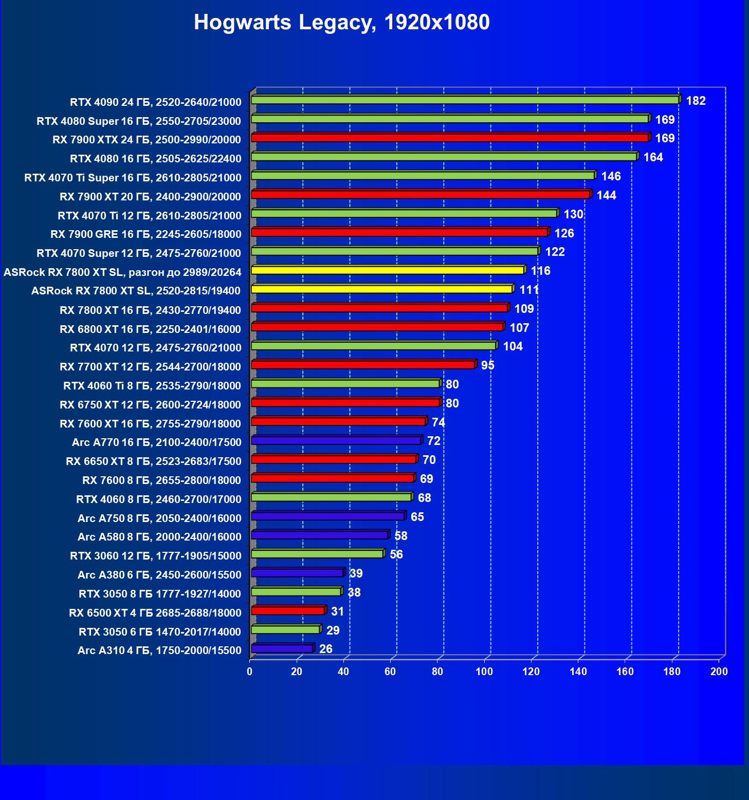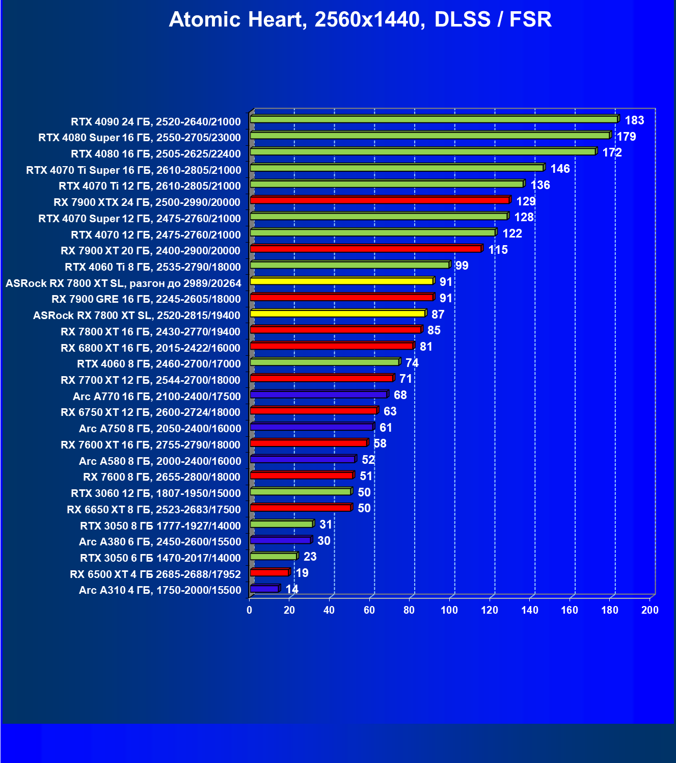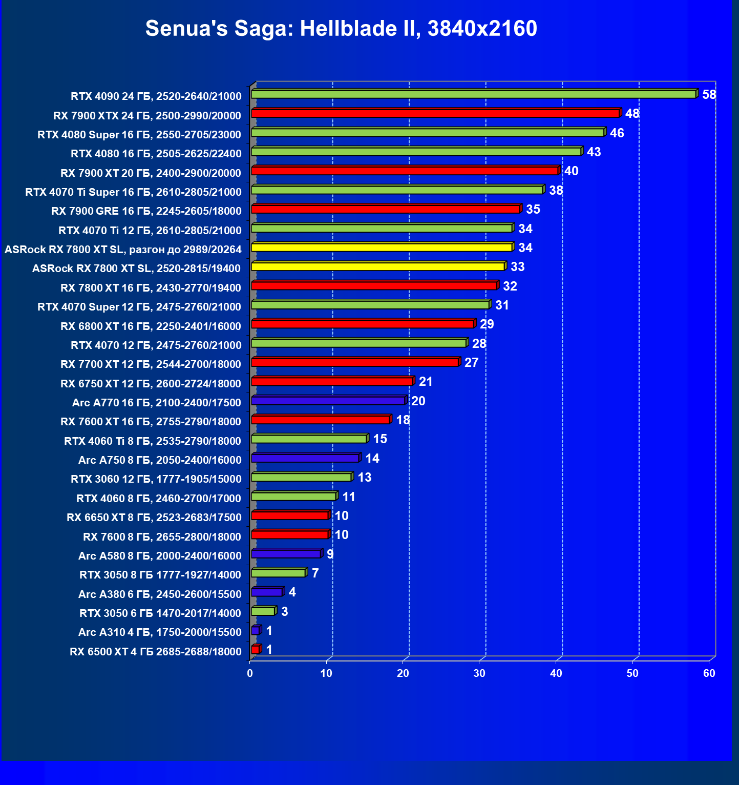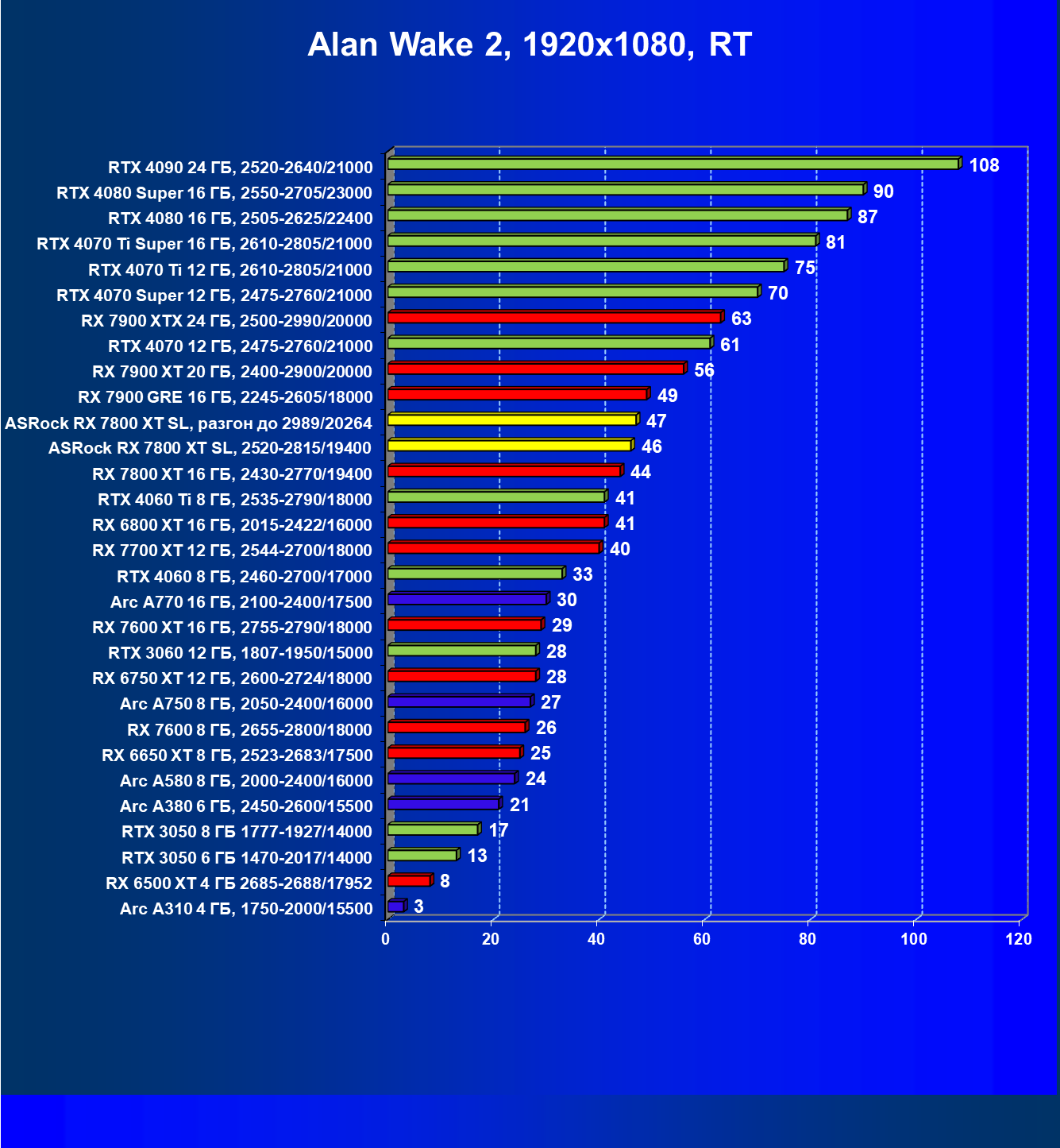 | 05 | RX 7800 XT 16 ГБ, 2430—2770/19400 | 201 | 1103 | 55 000 |