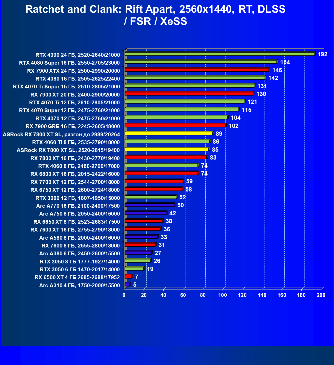 - Вариант рейтинга iXBT.com с включением RT/DLSS/FSR/XeSS