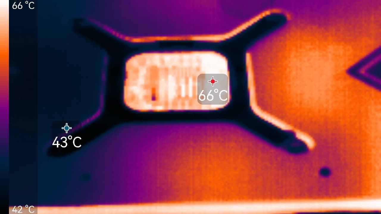 Максимальный нагрев наблюдался в центральной части PCB.