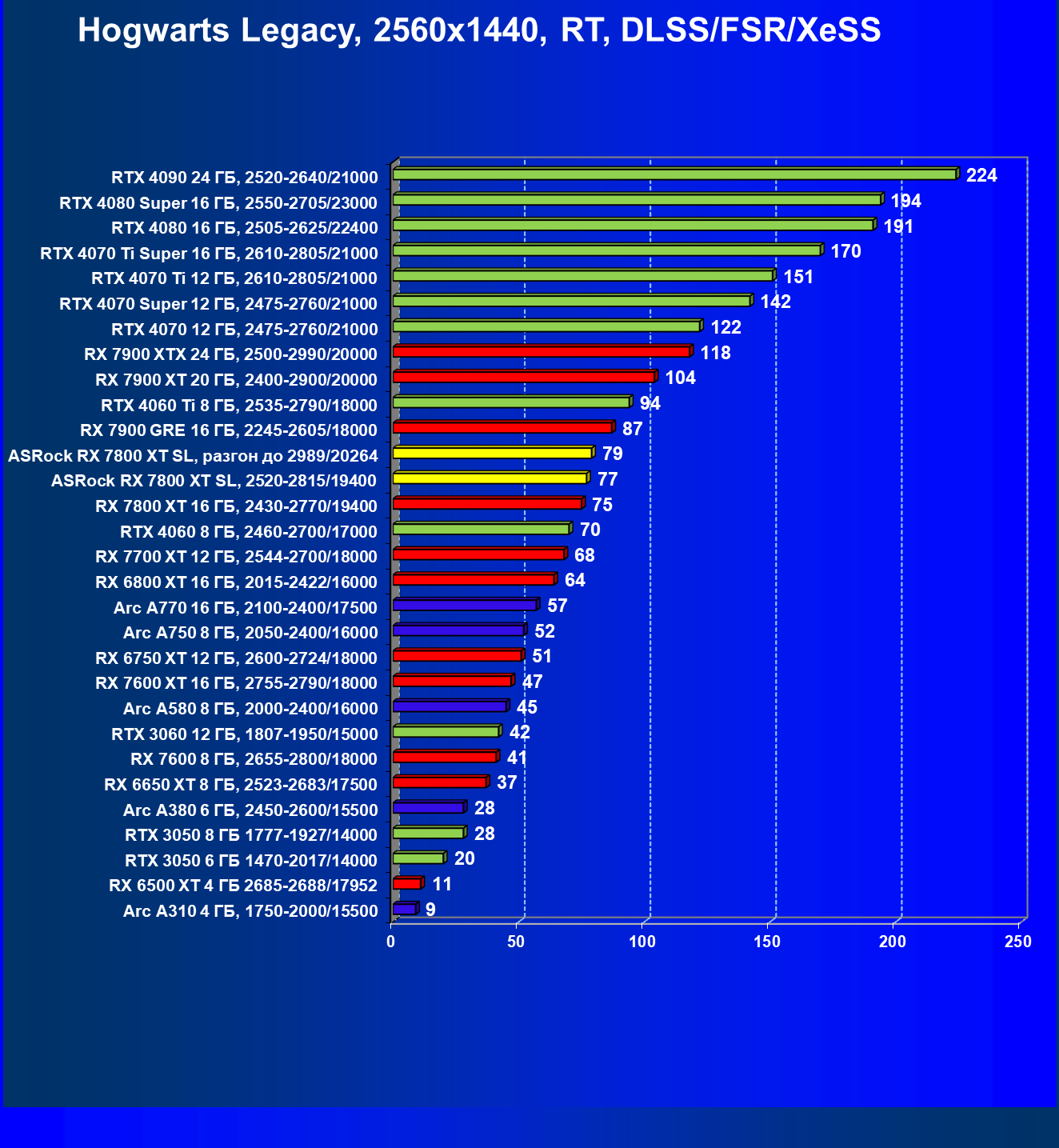 | 09 | ASRock RX 7800 XT SL, разгон до 2989/20264 | 1160 | 211 | 55 000 |