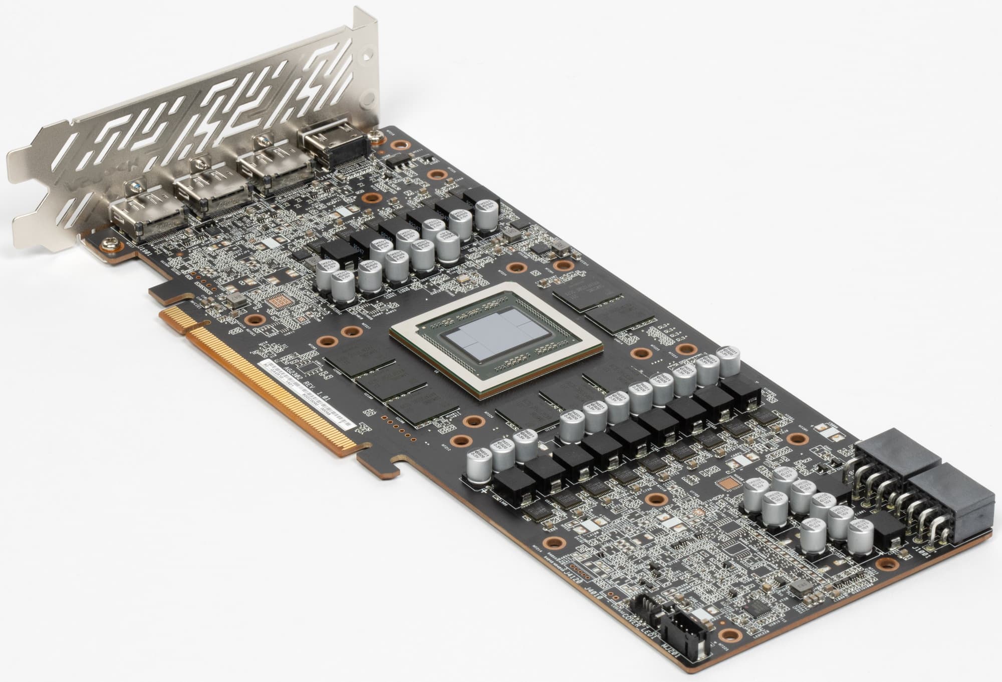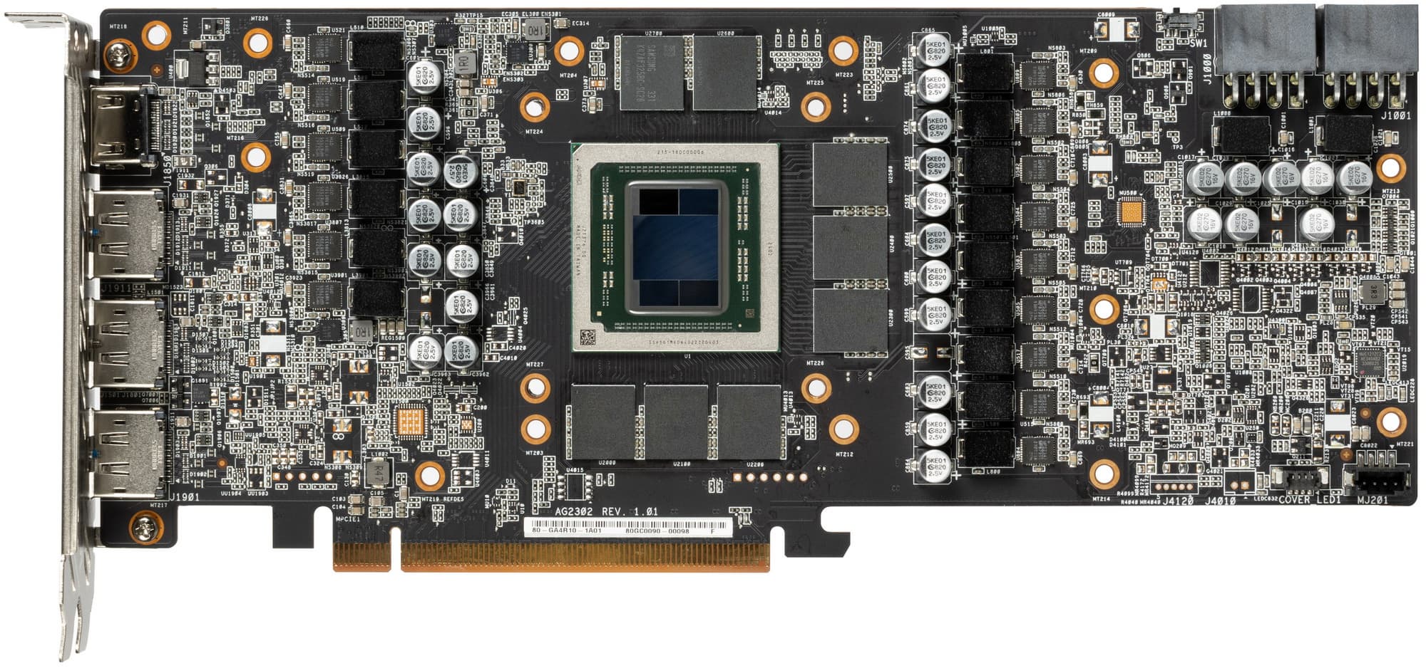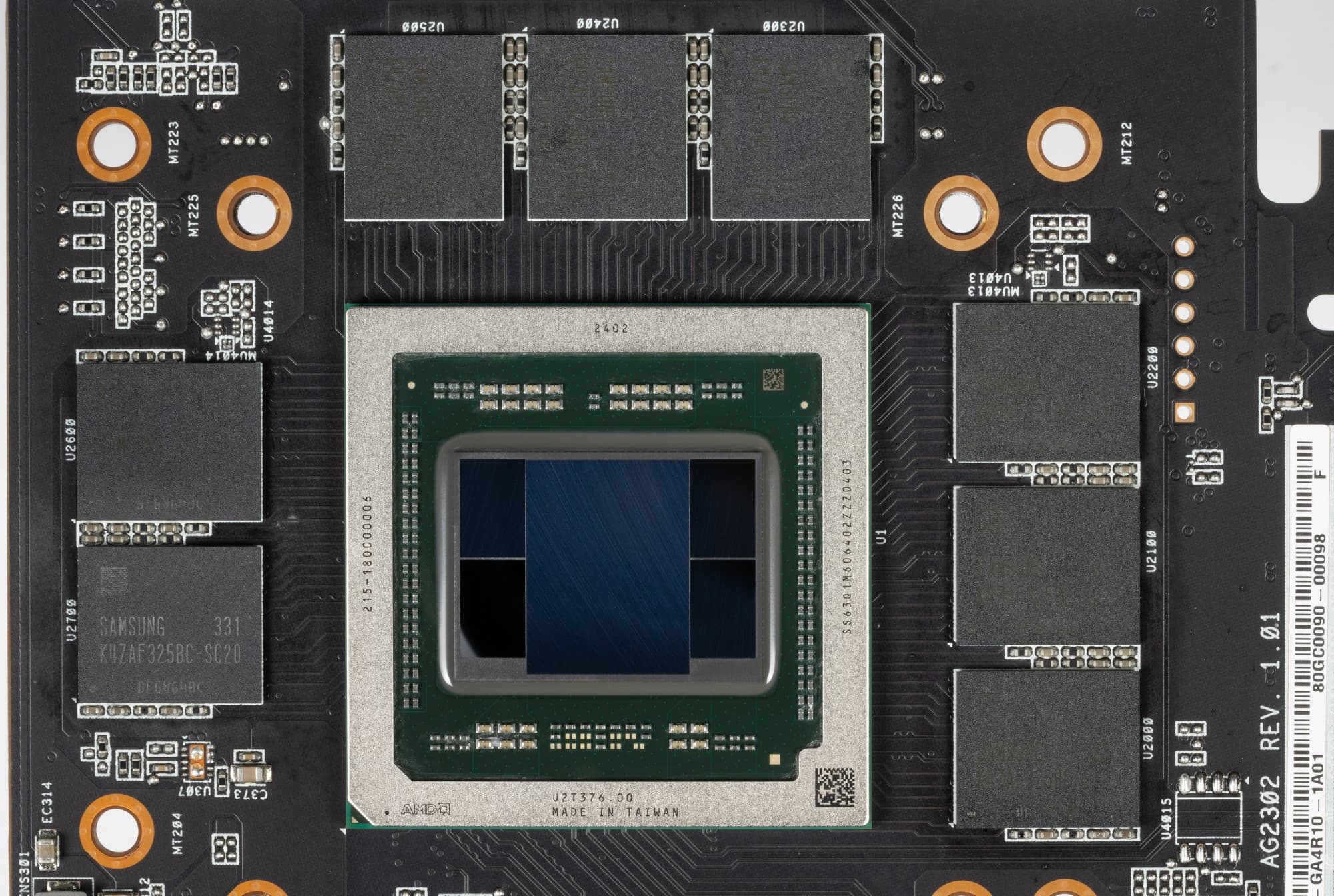Карта имеет 16 ГБ памяти GDDR6 SDRAM, размещенной в 8 микросхемах по 16 Гбит на лицевой стороне PCB. Микросхемы памяти Samsung (K4ZAF325BC-SC20) рассчитаны на номинальную частоту работы в 2500 (20000) МГц.
