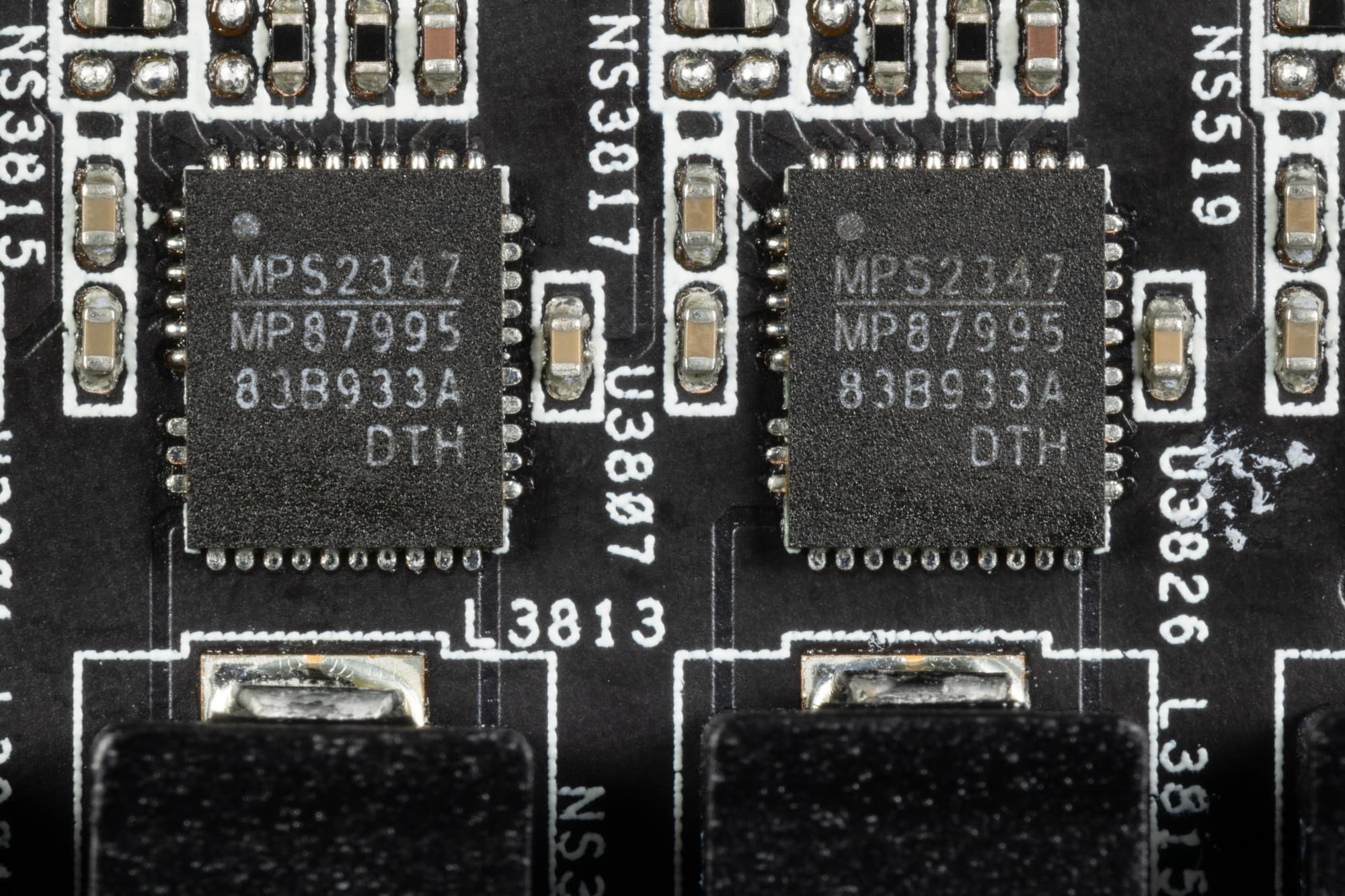 В преобразователе питания ядра используются транзисторные сборки DrMOS — в данном случае MP87995 (Monolith Power Systems), рассчитанные максимум на 50 А.