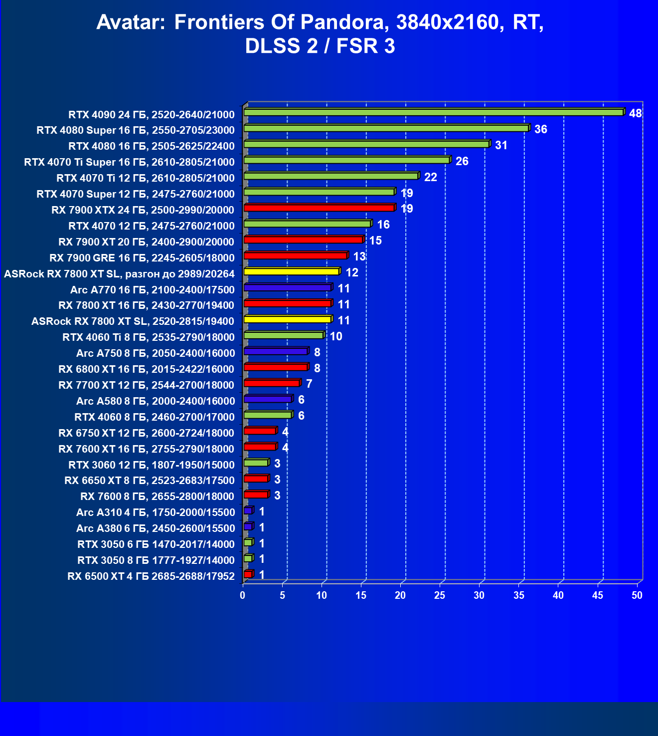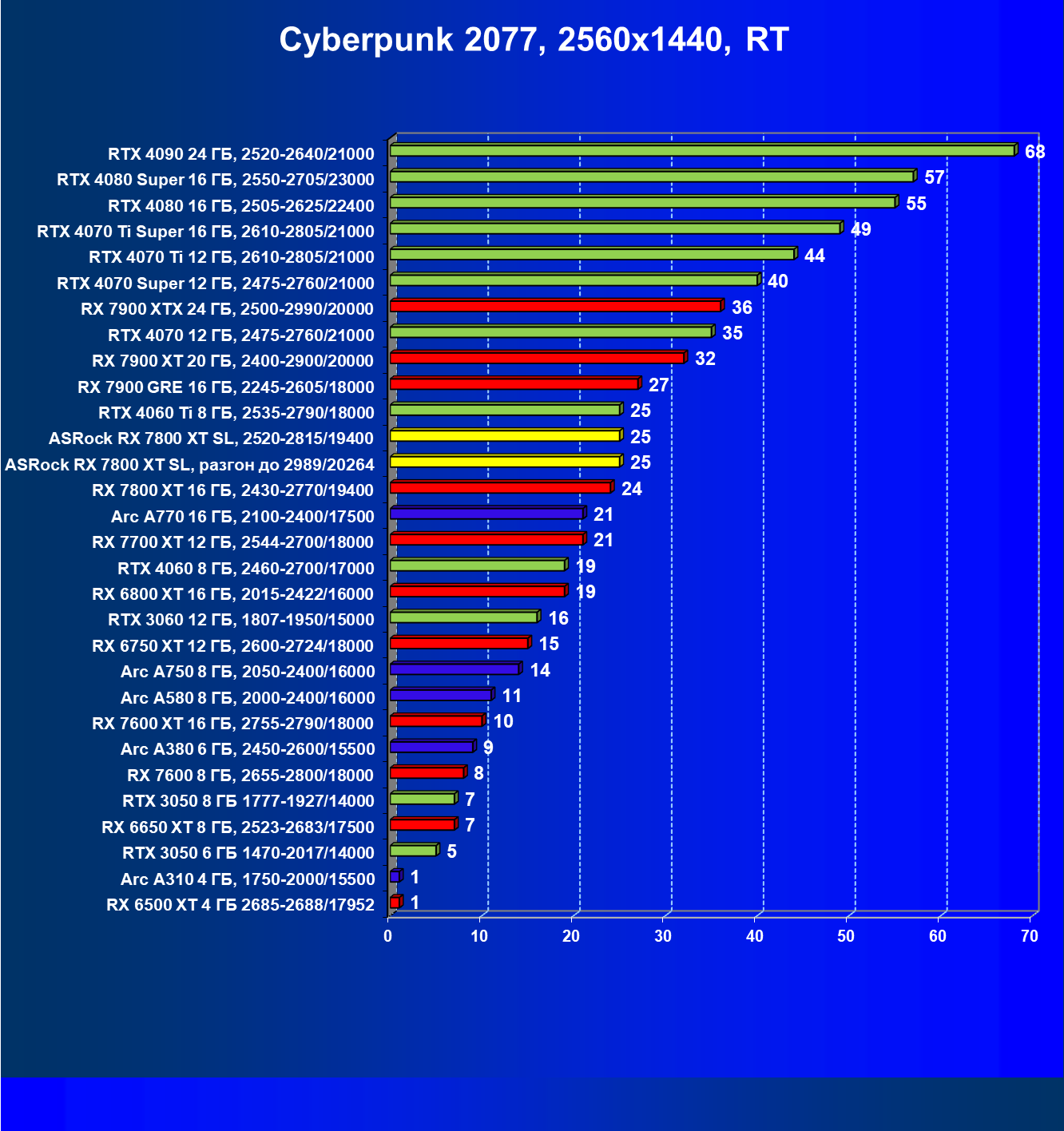 | 11 | ASRock RX 7800 XT SL, разгон до 2989/20264 | 1762 | 320 | 55 000 |