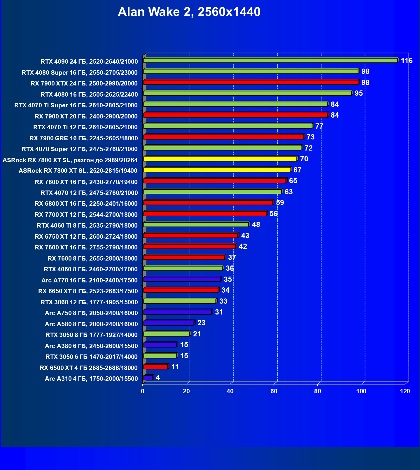 | 12 | ASRock RX 7800 XT SL, разгон до 2989/20264 | 320 | 1762 | 55 000 |