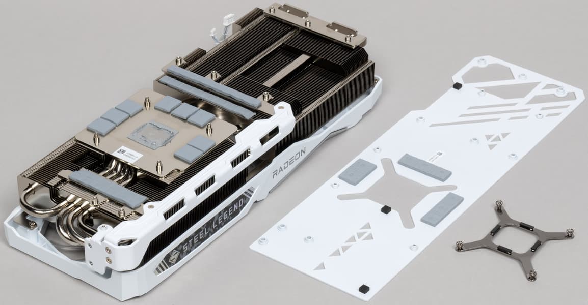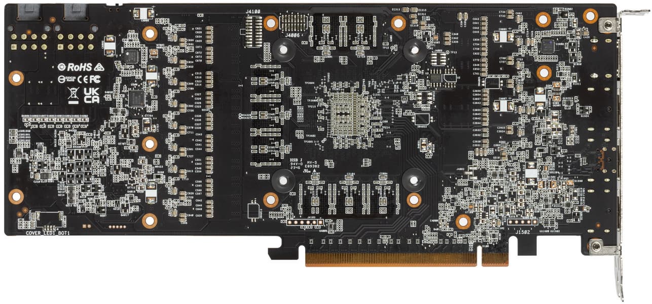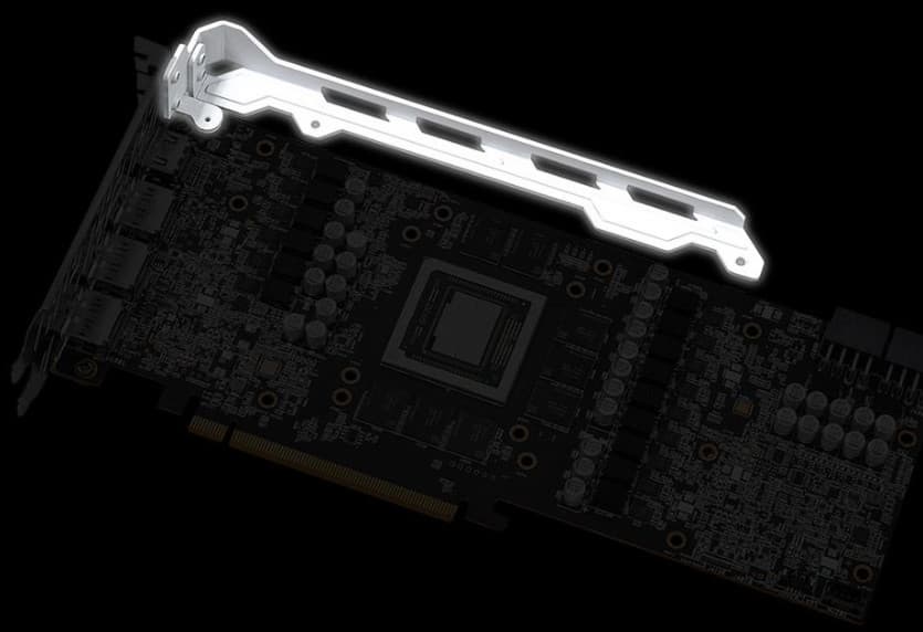 Задняя пластина не только служит элементом защиты PCB, но и принимает участие в охлаждении оборотной стороны карты через термопрокладки (в области микросхем памяти).