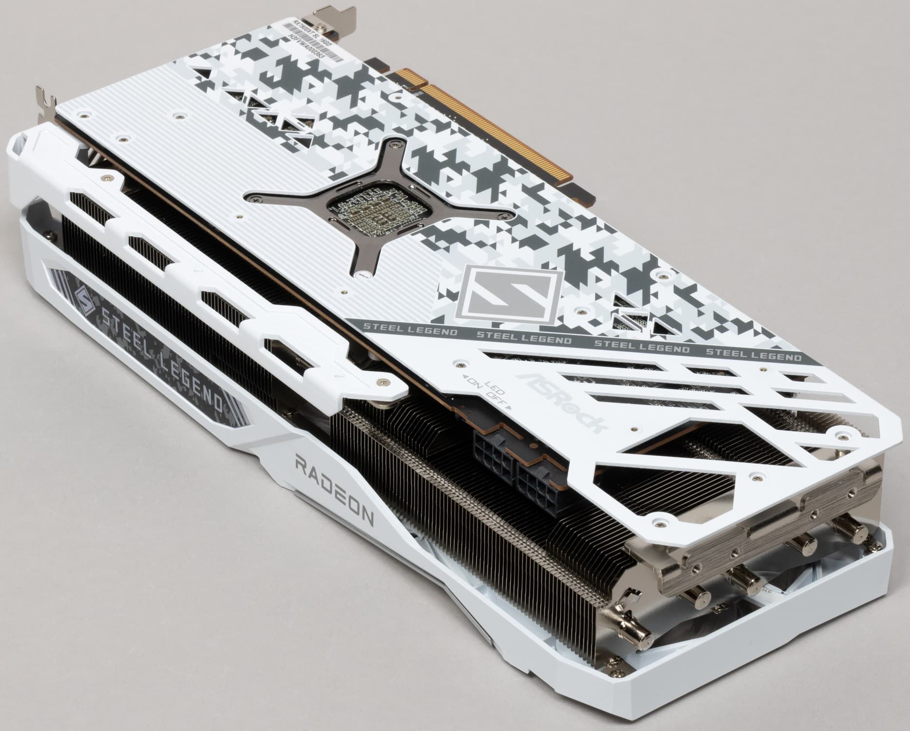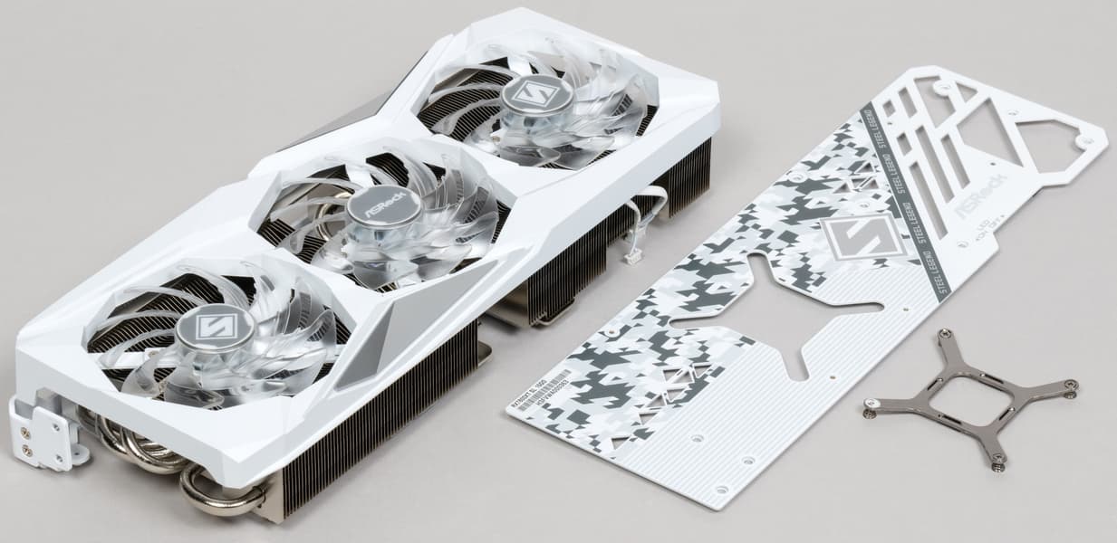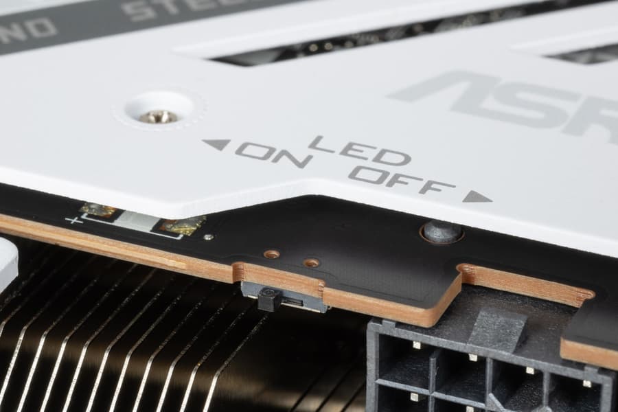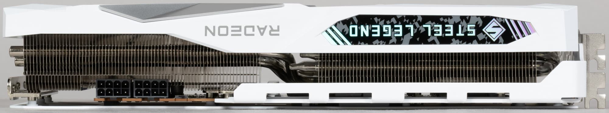 Серия Steel Legend предлагает эффективную, но негромоздкую систему охлаждения, ее вентиляторы имеют прозрачные лопасти с ARGB-подсветкой. Подсветку можно отключить с помощью физического переключателя на торце видеокарты.