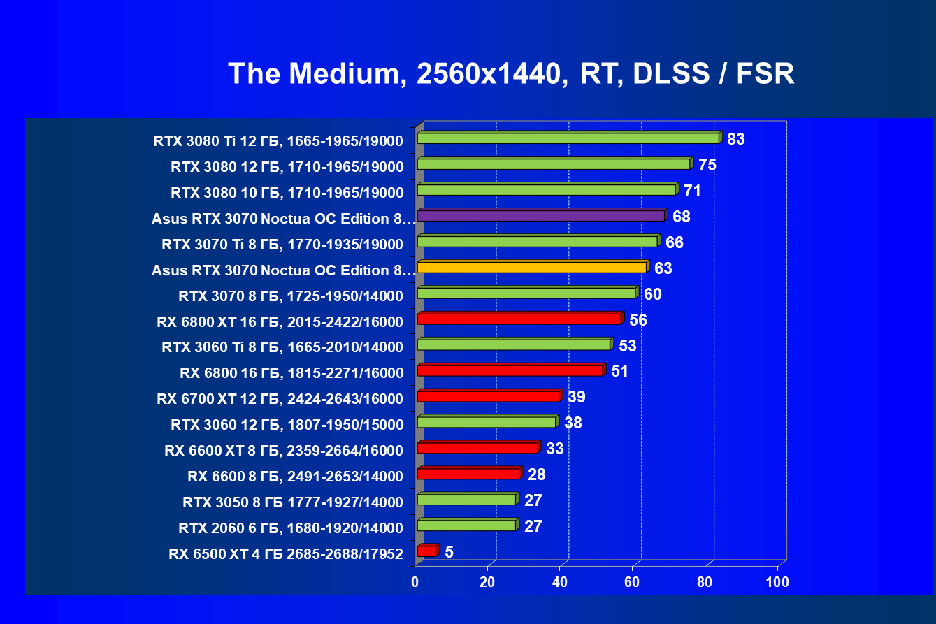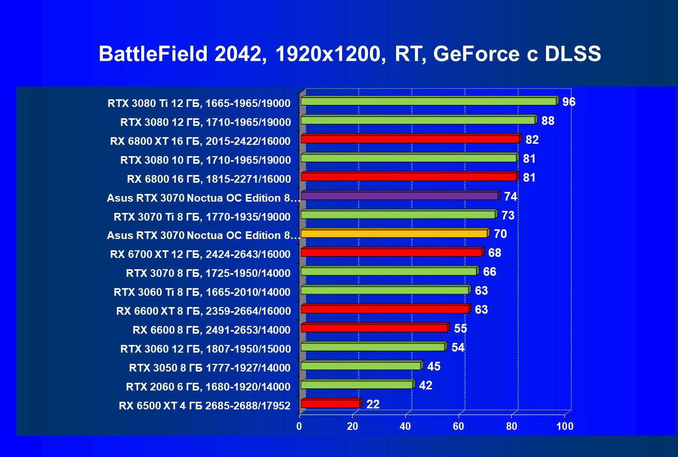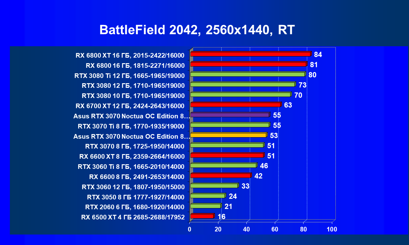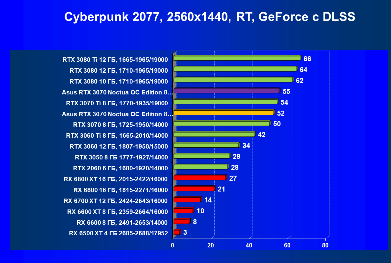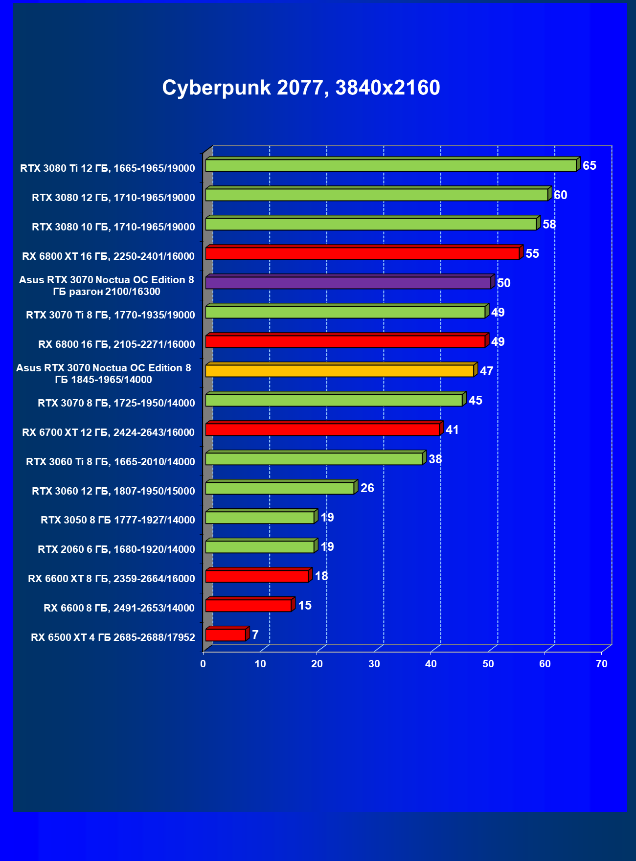 | 07 | Asus RTX 3070 Noctua 8 ГБ, разгон до 2100/16300 | 620 |